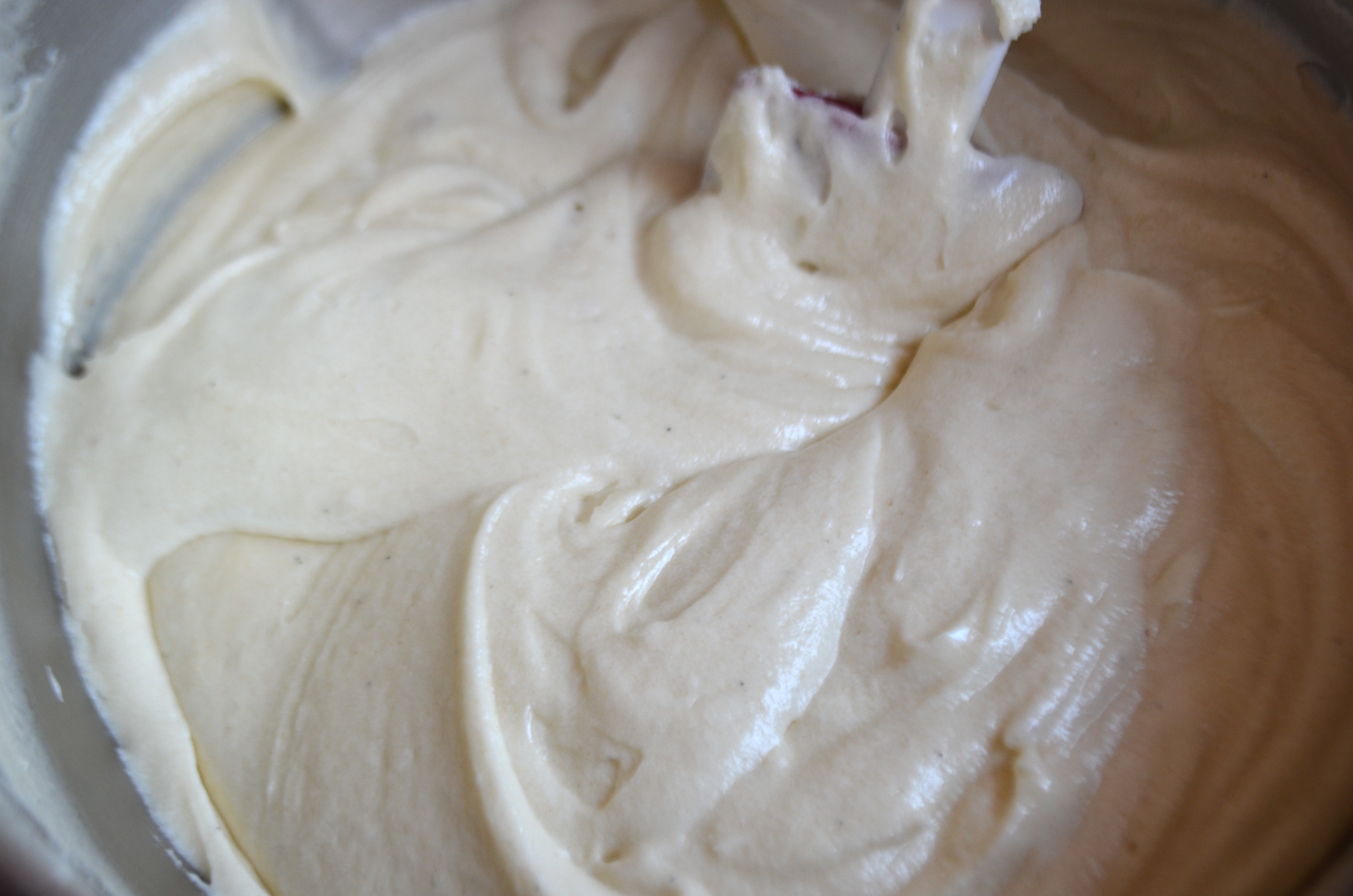 Add dry ingredients in 3 parts, alternating with milk and vanilla, beating well until incorporated, but careful not to over-mix.