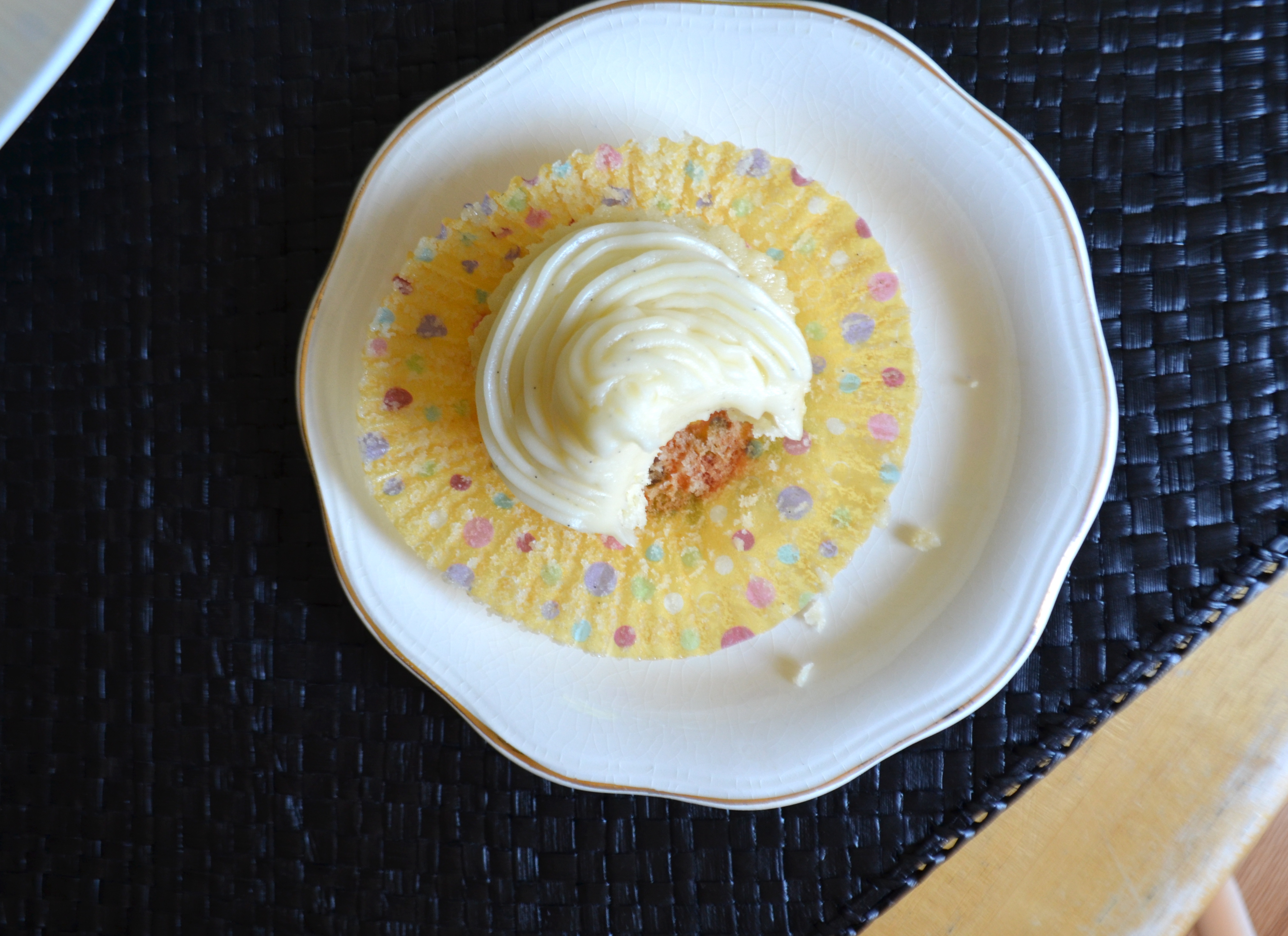 Click here for my Vanilla Bean Frosting recipe. I found this recipe from Magnolia bakery on Sweetapolita’s website.