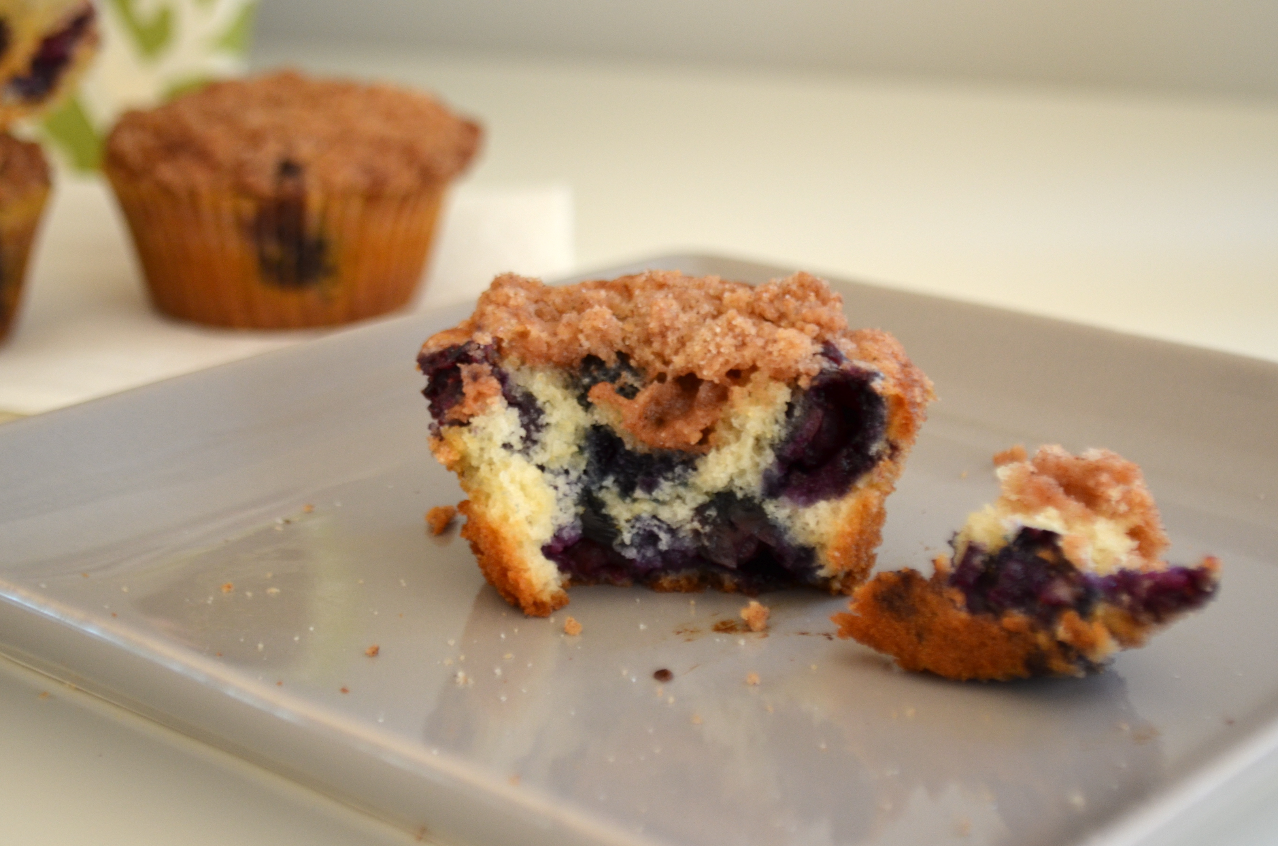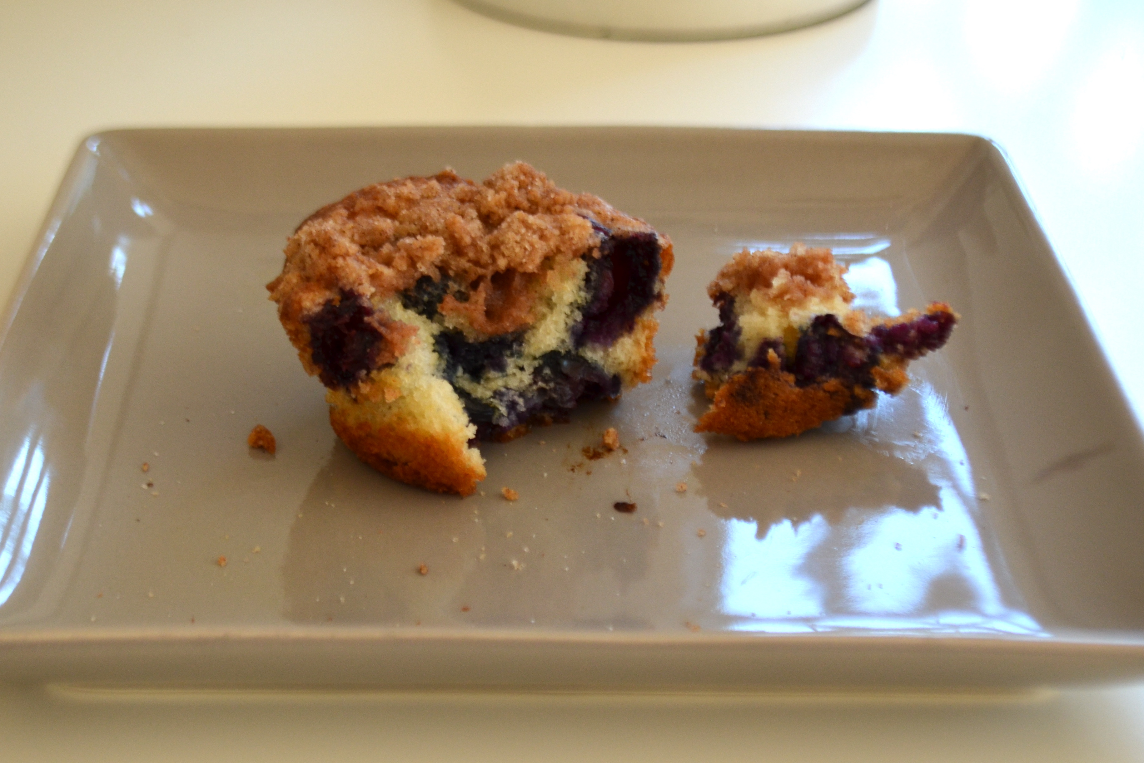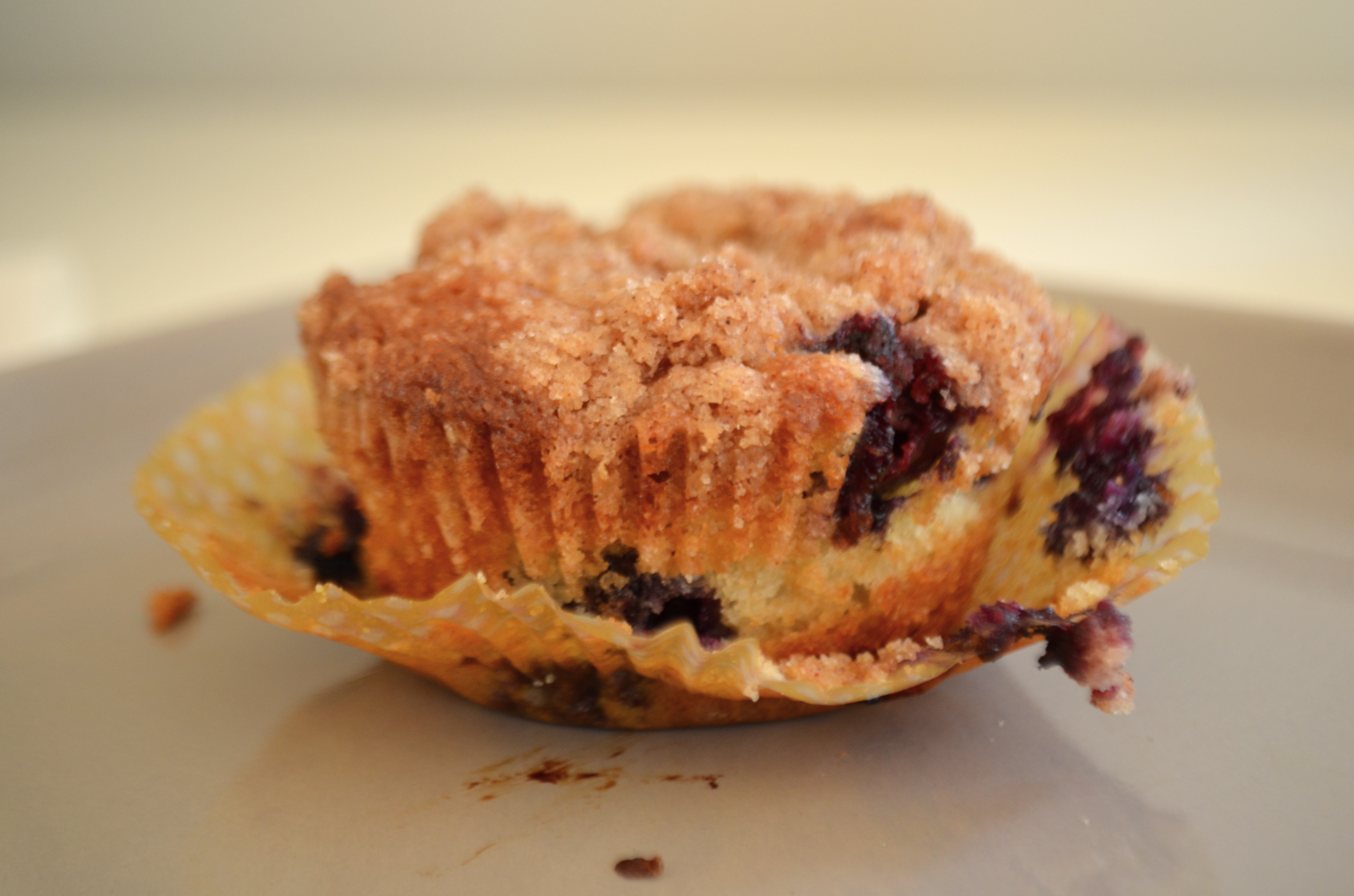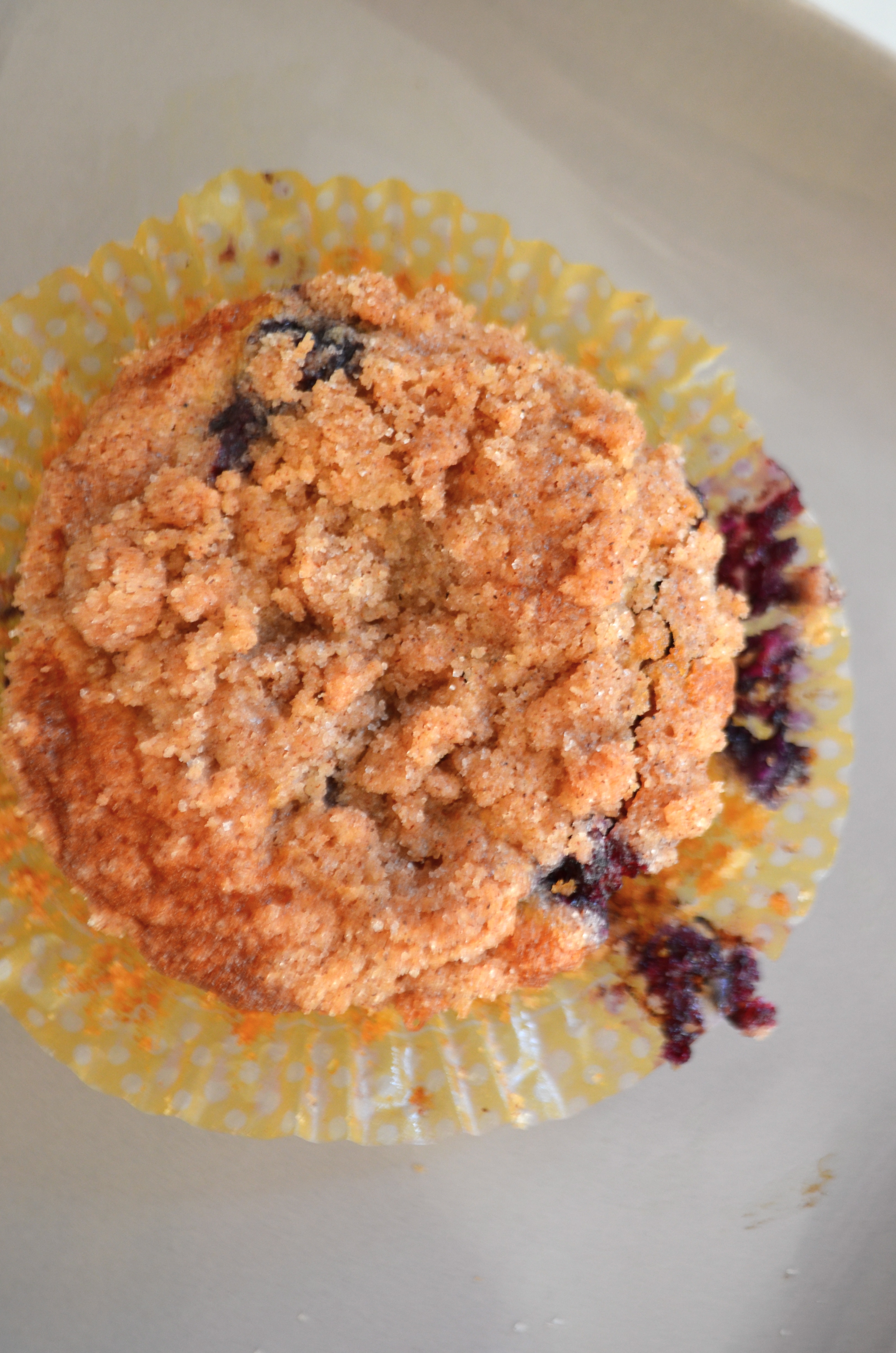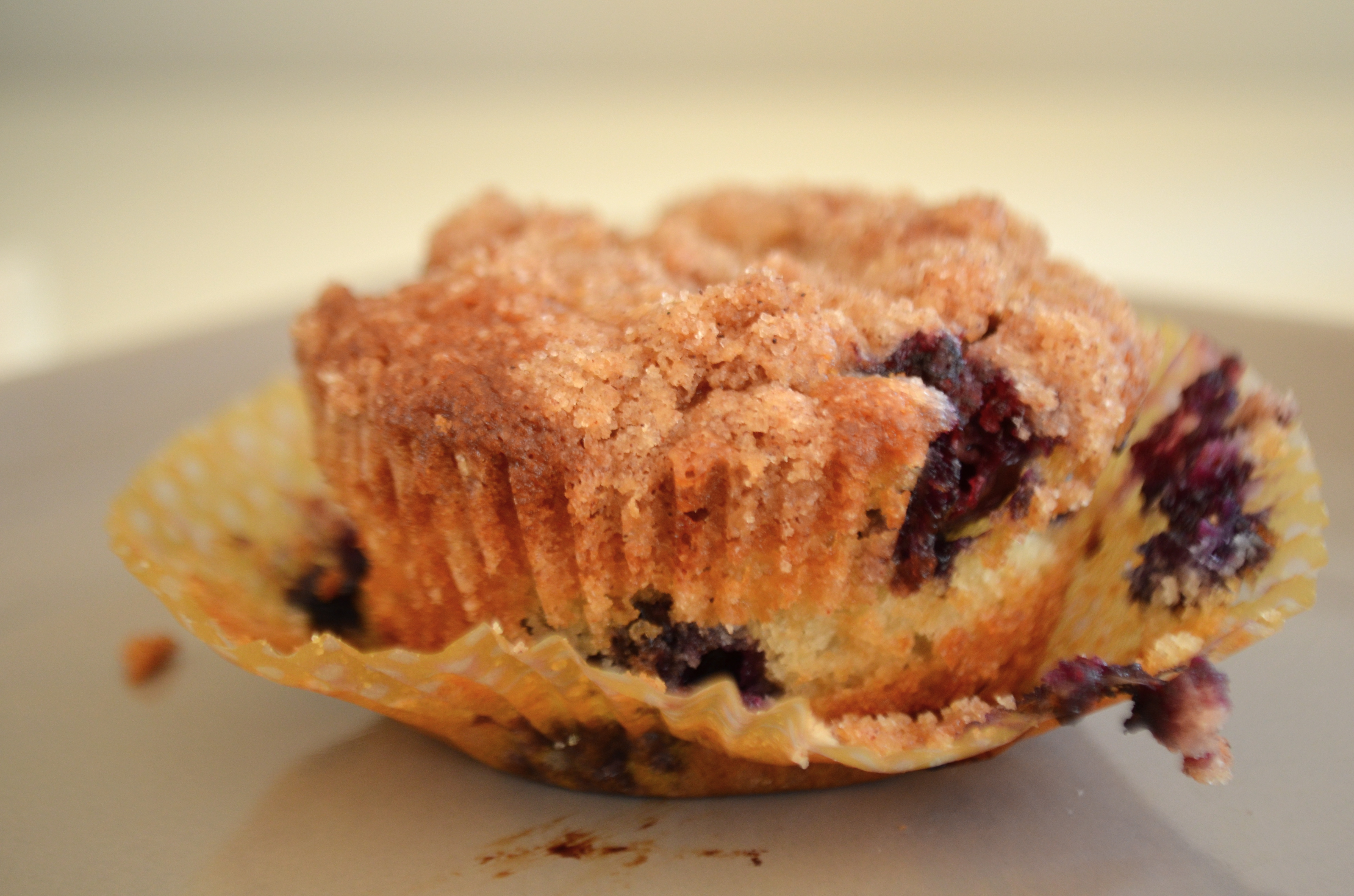 Mix egg mixture into the flour mixture and stir to combine. Stir in blueberries and fill muffin cups about 2/3 full.