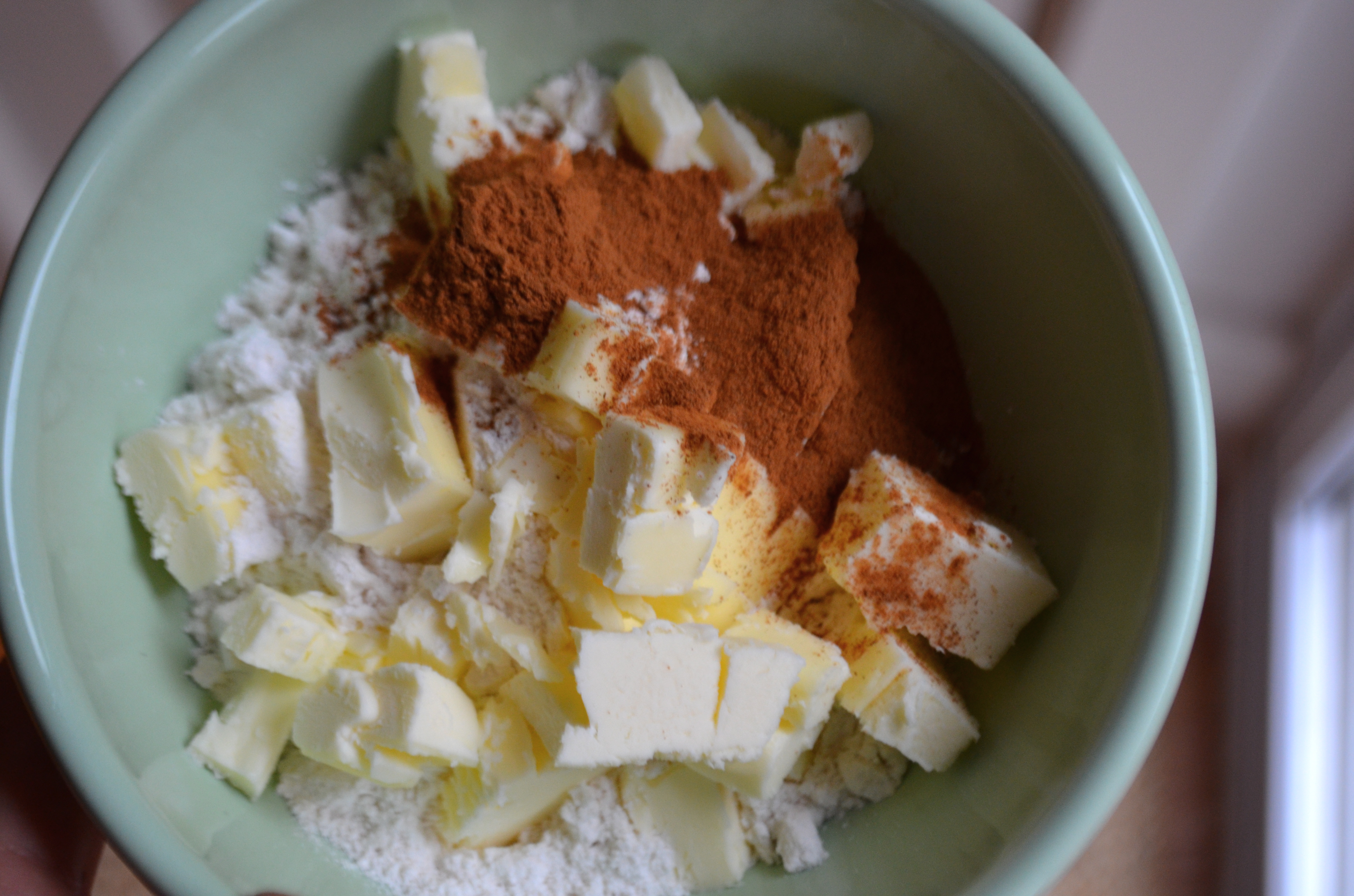 (combine all streusel ingredients together in a bowl with a fork and sprinkle over batter)