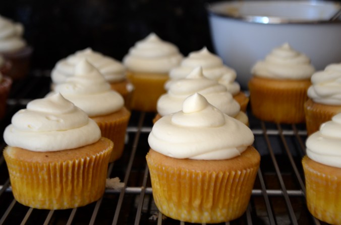 Finally the frosting.  Cream together the cream cheese and powdered sugar.  Then add the vanilla and beat well.  Finish by slowly pouring in cream and let whip until it reaches stiff peaks.
