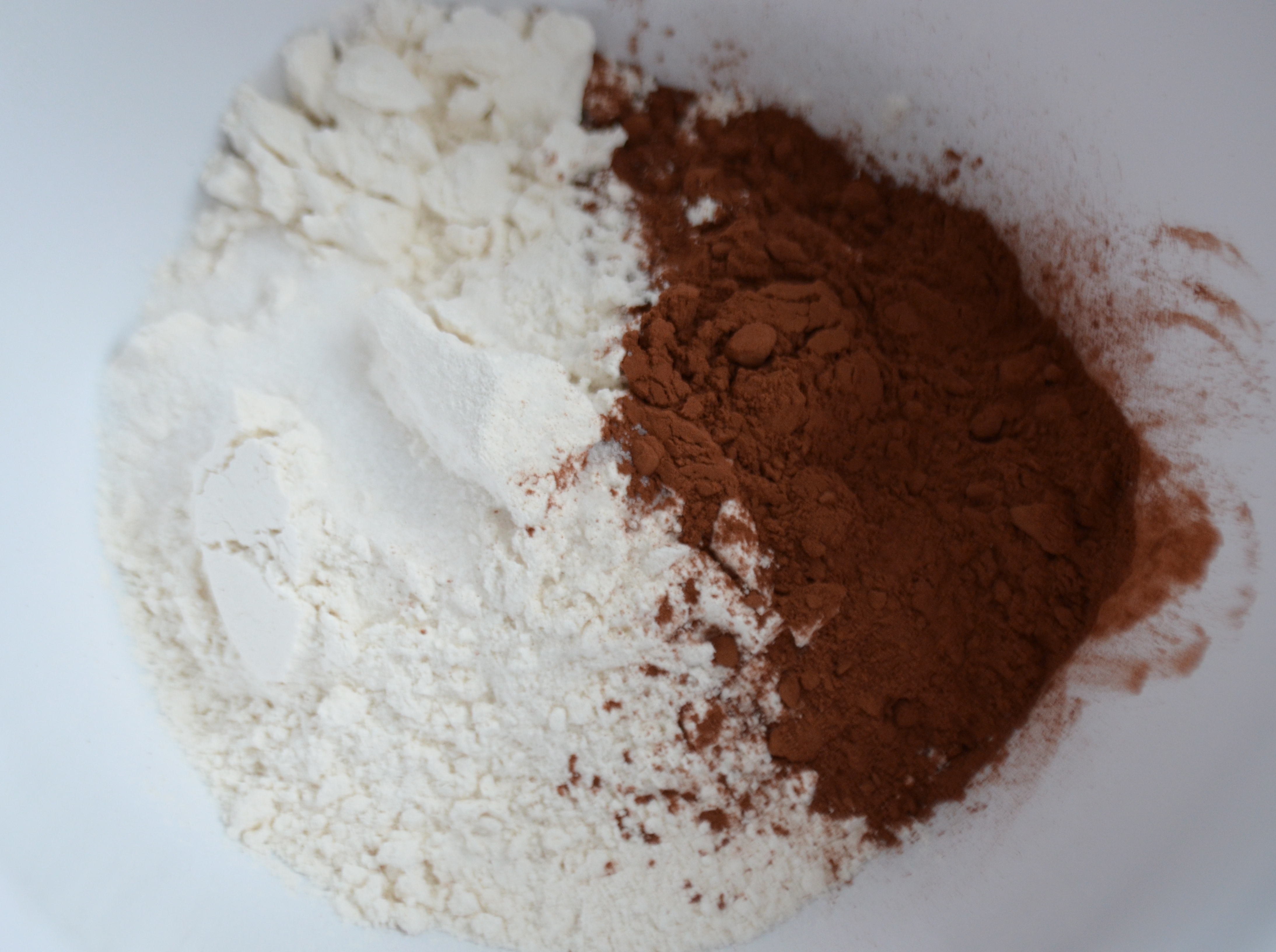 In a medium bowl, whisk together flour, cocoa powder and salt, set aside.