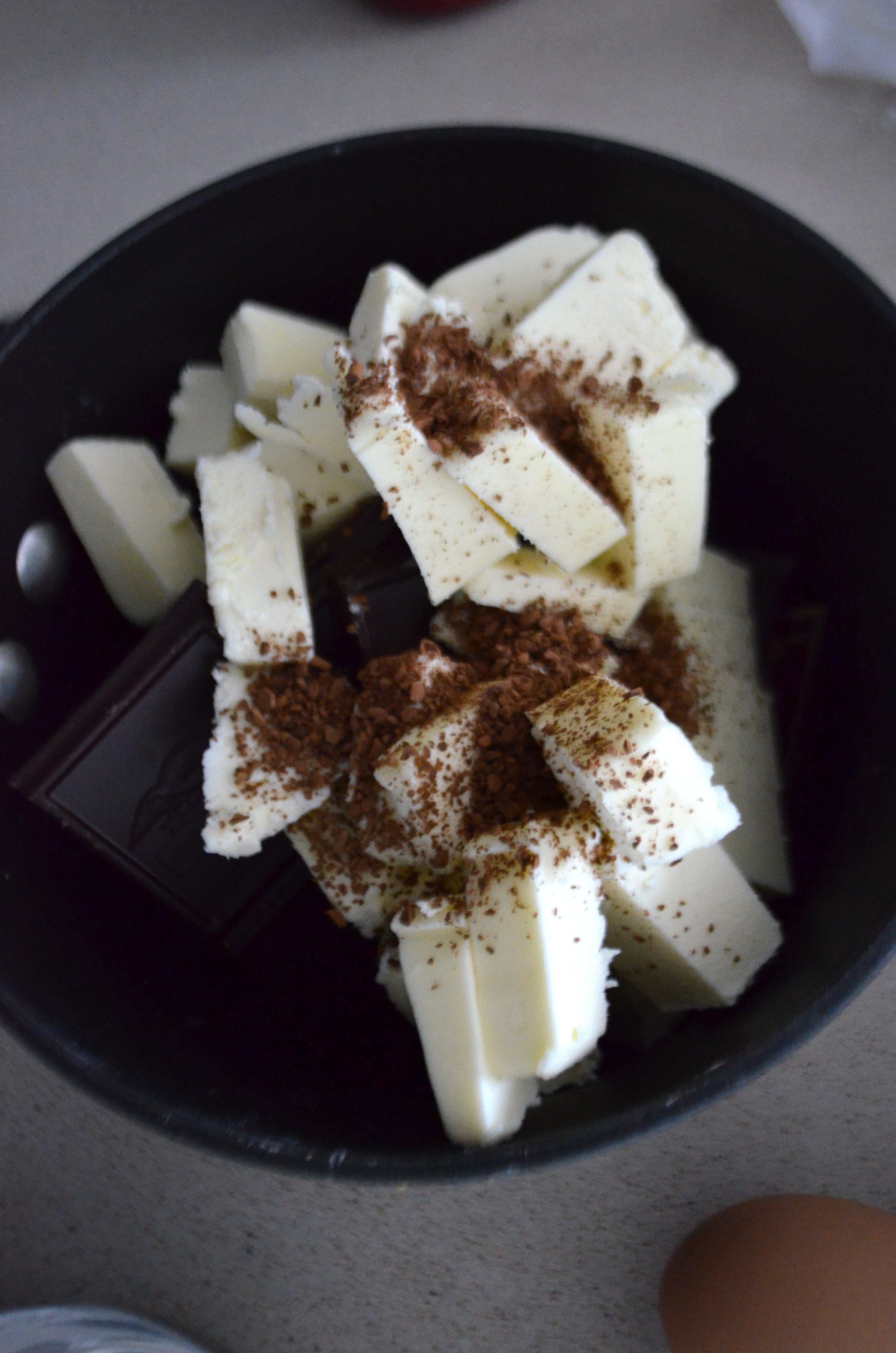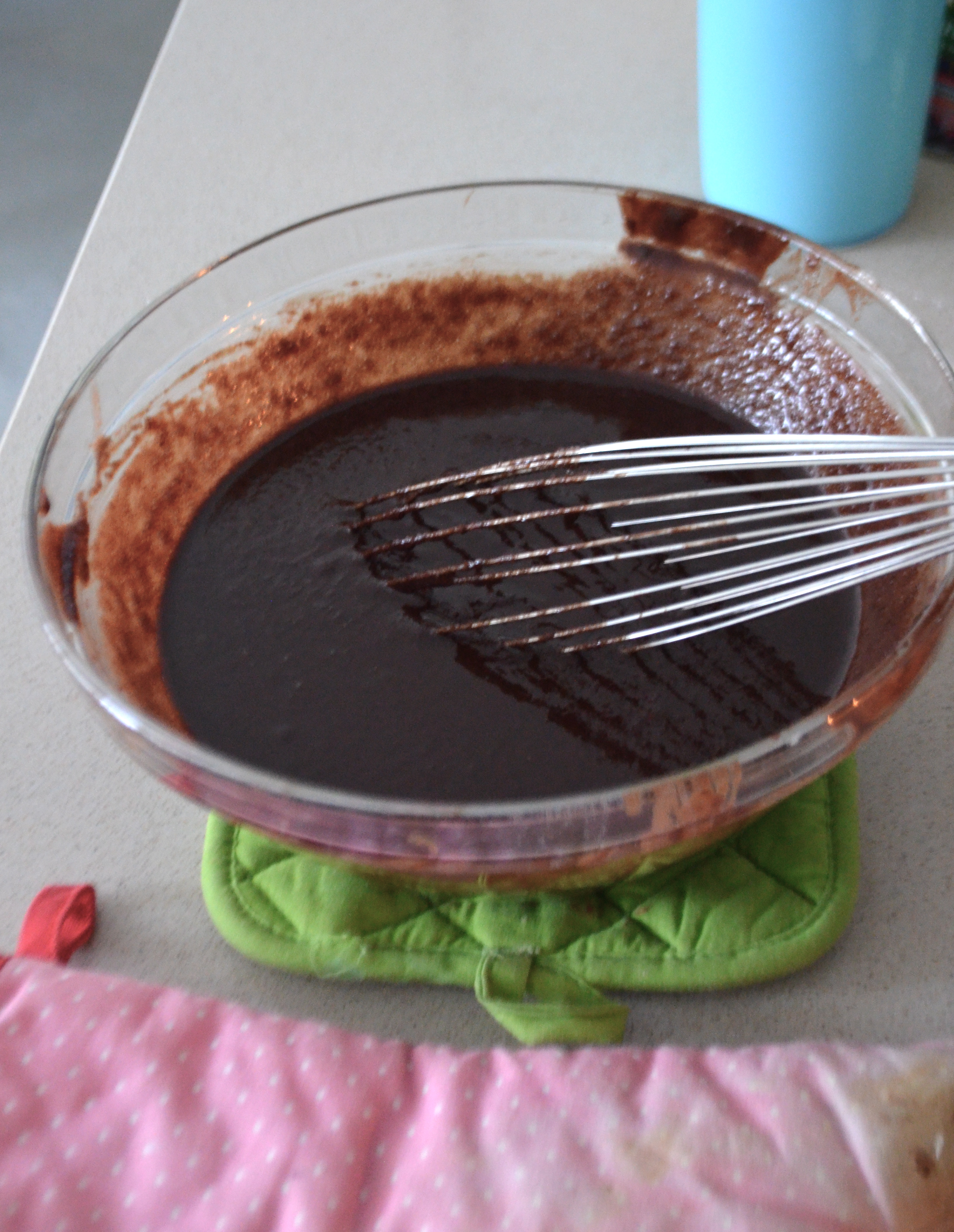 I did some searching and found this dark chocolate brownie recipe. It has almost 4 dark chocolate bars melted down into the batter…I figured with those ingredients I couldn’t go wrong!