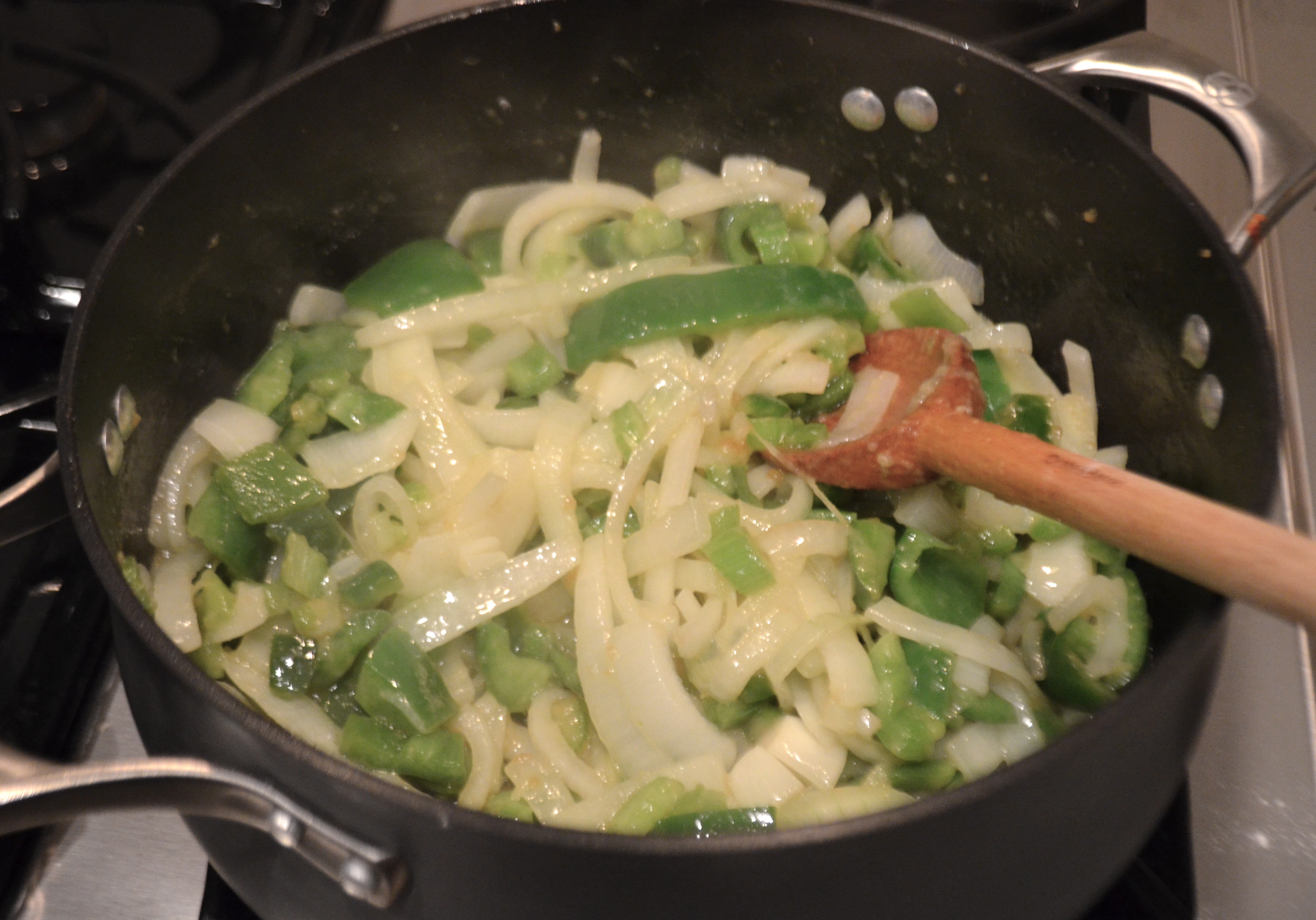 Add pepper, onion and celery and cook until softened, about 7 minutes.