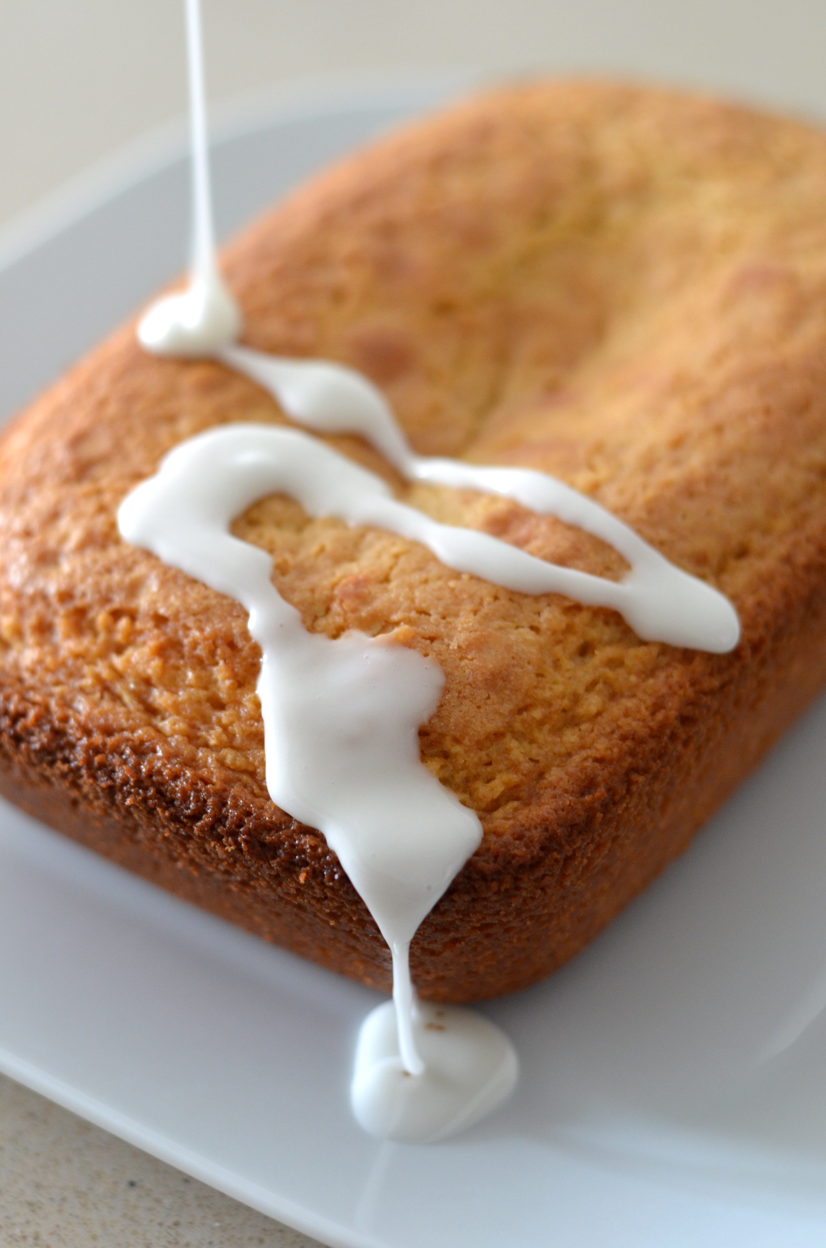Once cooled, combine all glaze ingredients and gently pour over loaf to glaze. Let glaze harden a bit before serving.