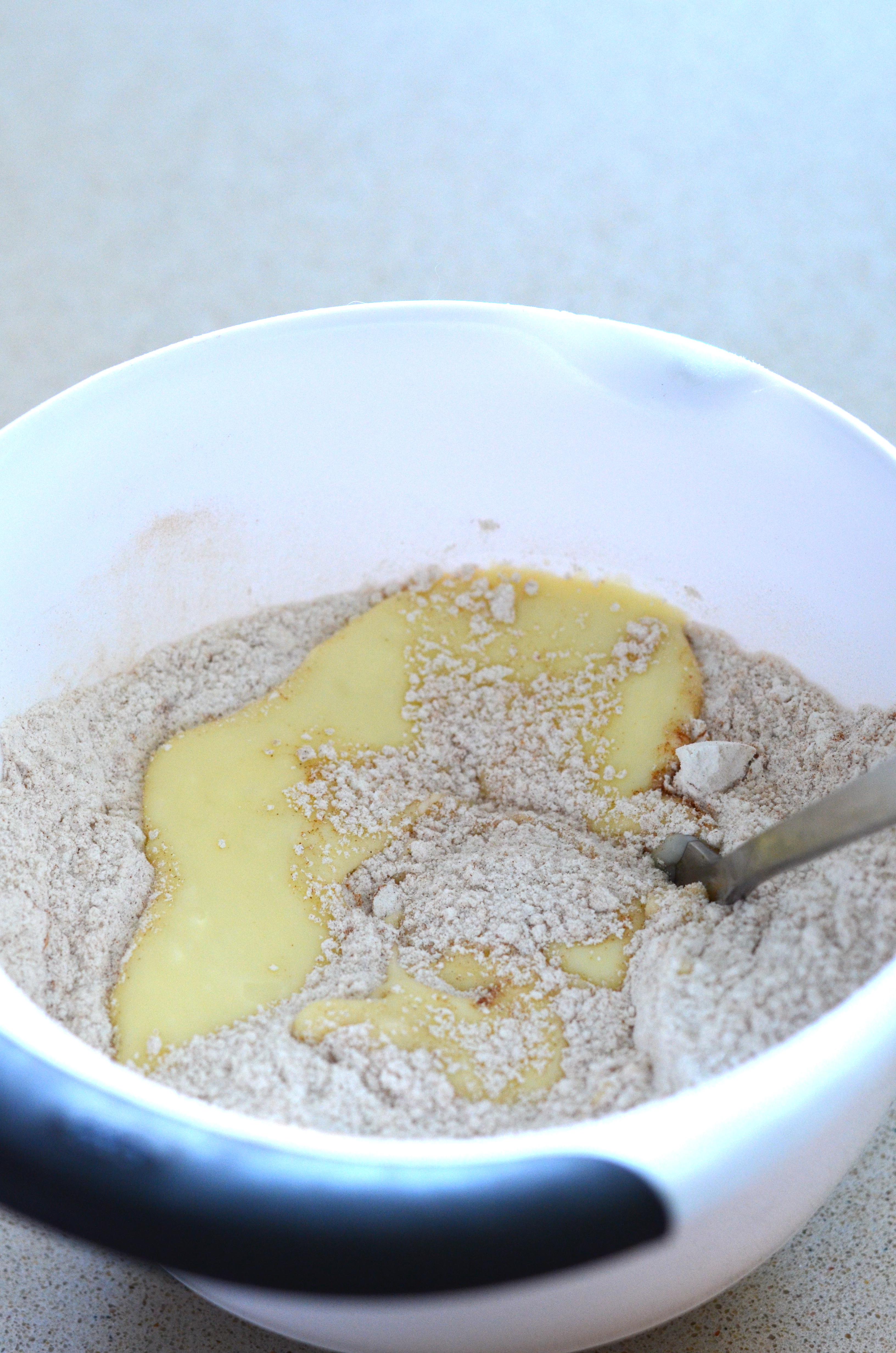 Combine the streusel ingredients as well, mixing until butter is mostly combined and a streusel like consistency is formed. Set aside.