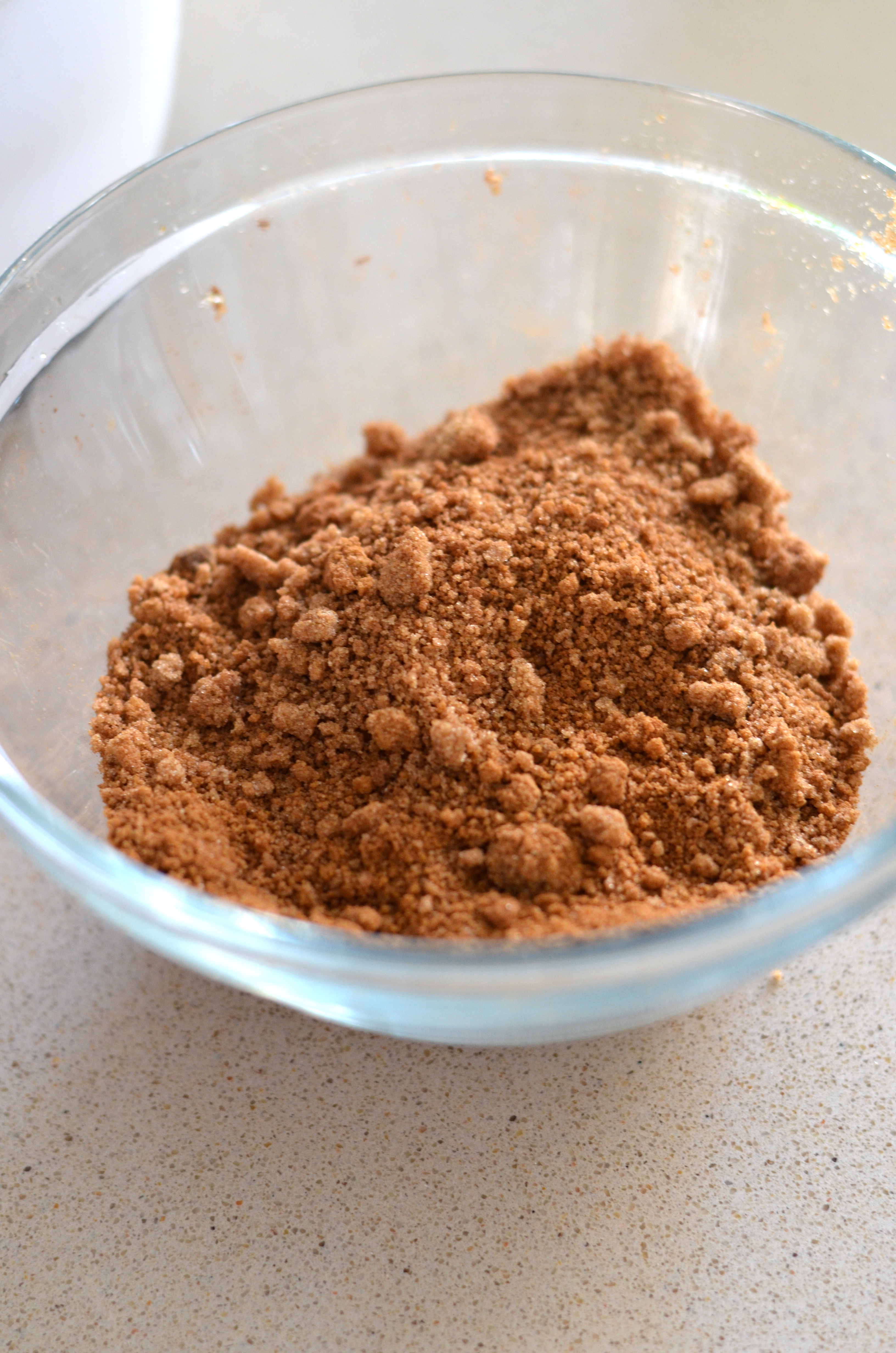Combine the filling ingredients by mixing the brown sugar, cinnamon and cocoa powder and set aside.