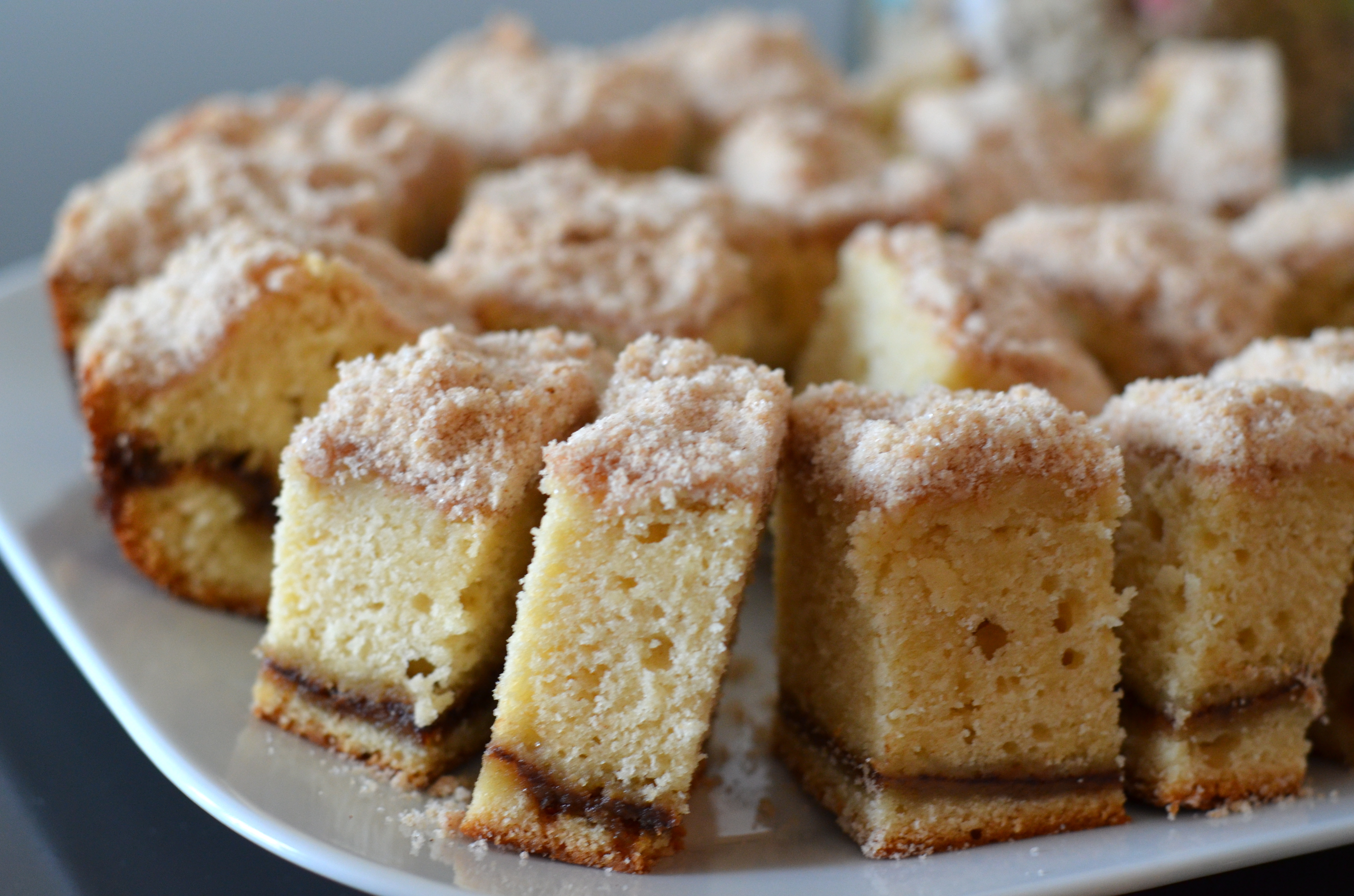 This is a sweet coffee cake that you could use as a breakfast food or as a dessert! It is super versatile and a sure crowd pleaser!