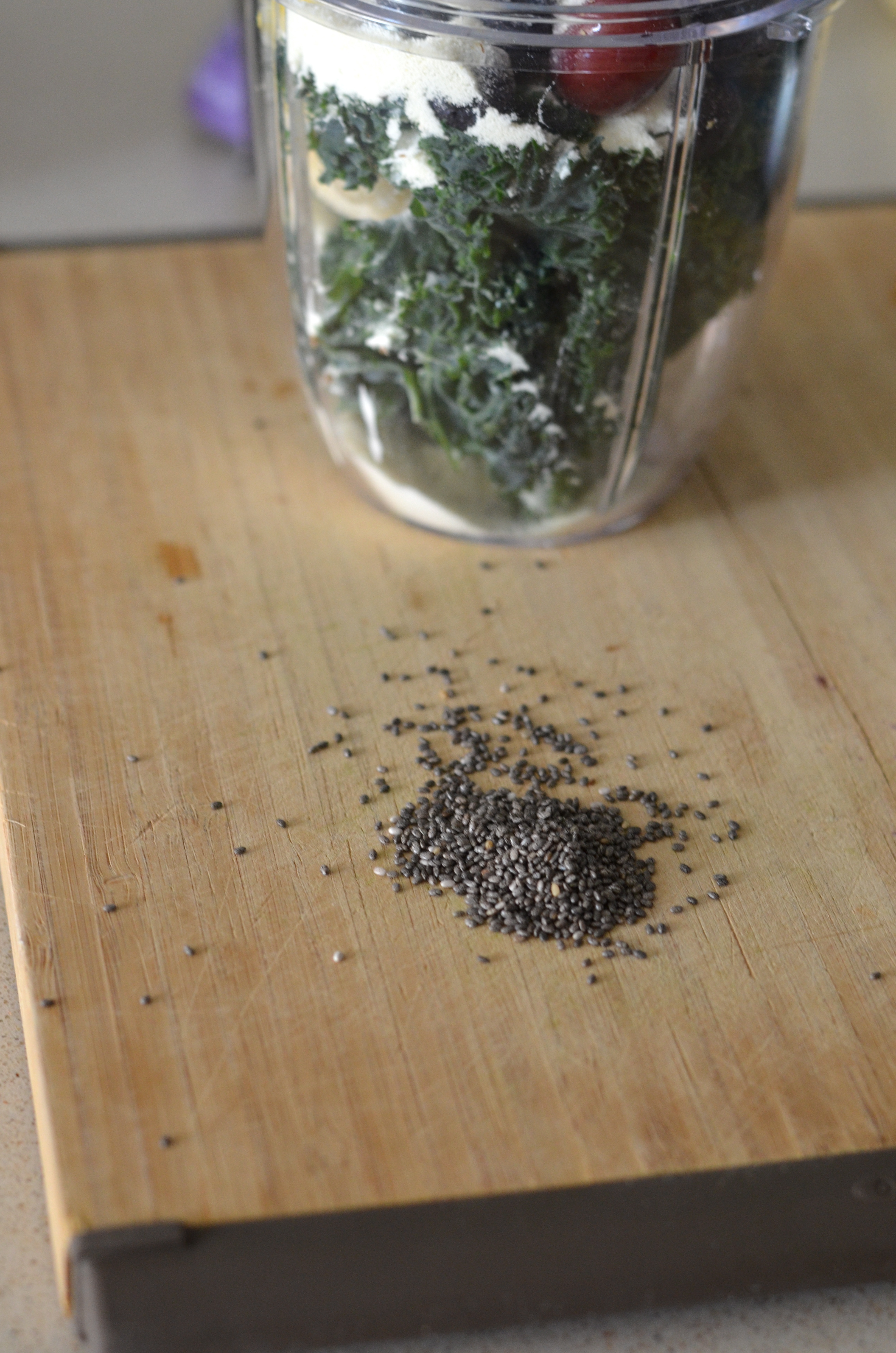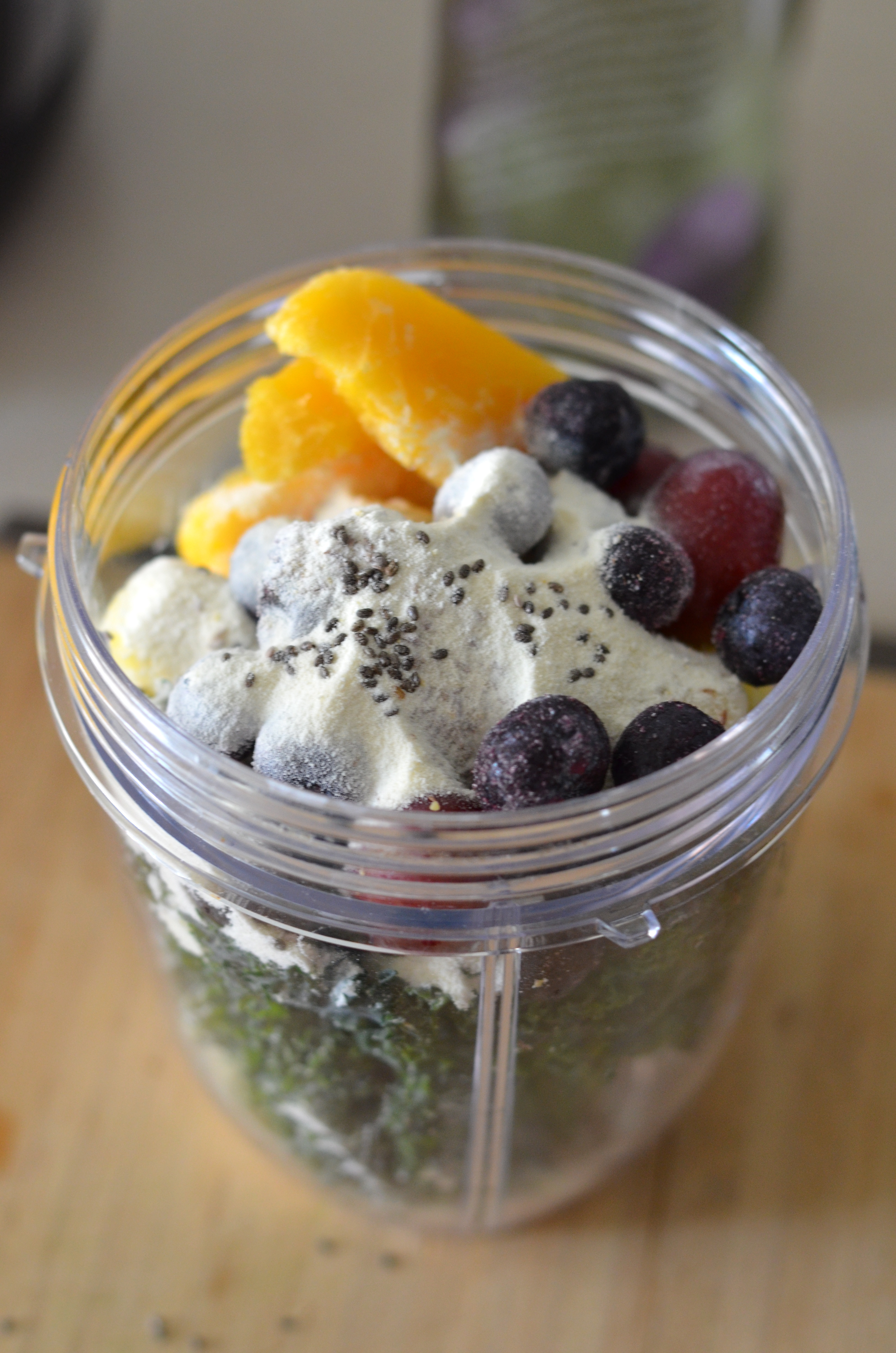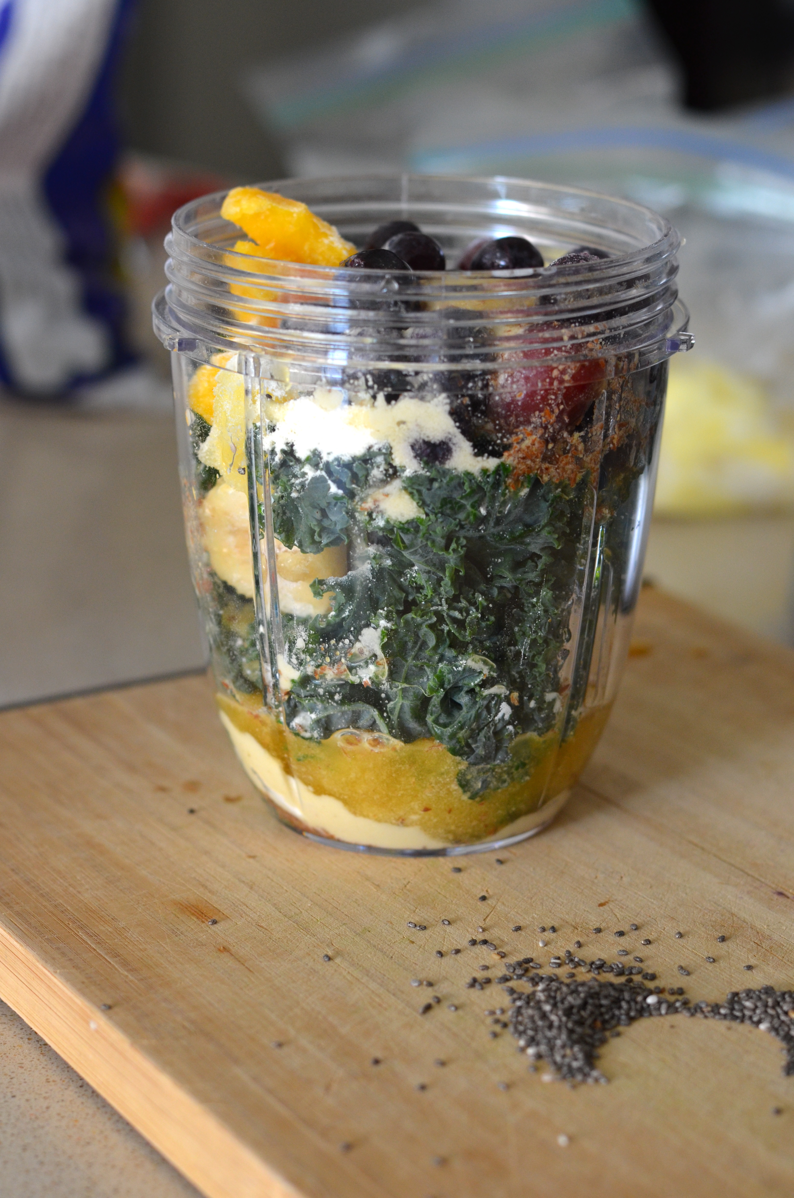 Finally, I add anything from chia seeds, flax seed, protein powder, peanut butter, oats, yogurt, cinnamon, cayenne pepper, orange juice, almond milk, coconut milk…the list goes on!