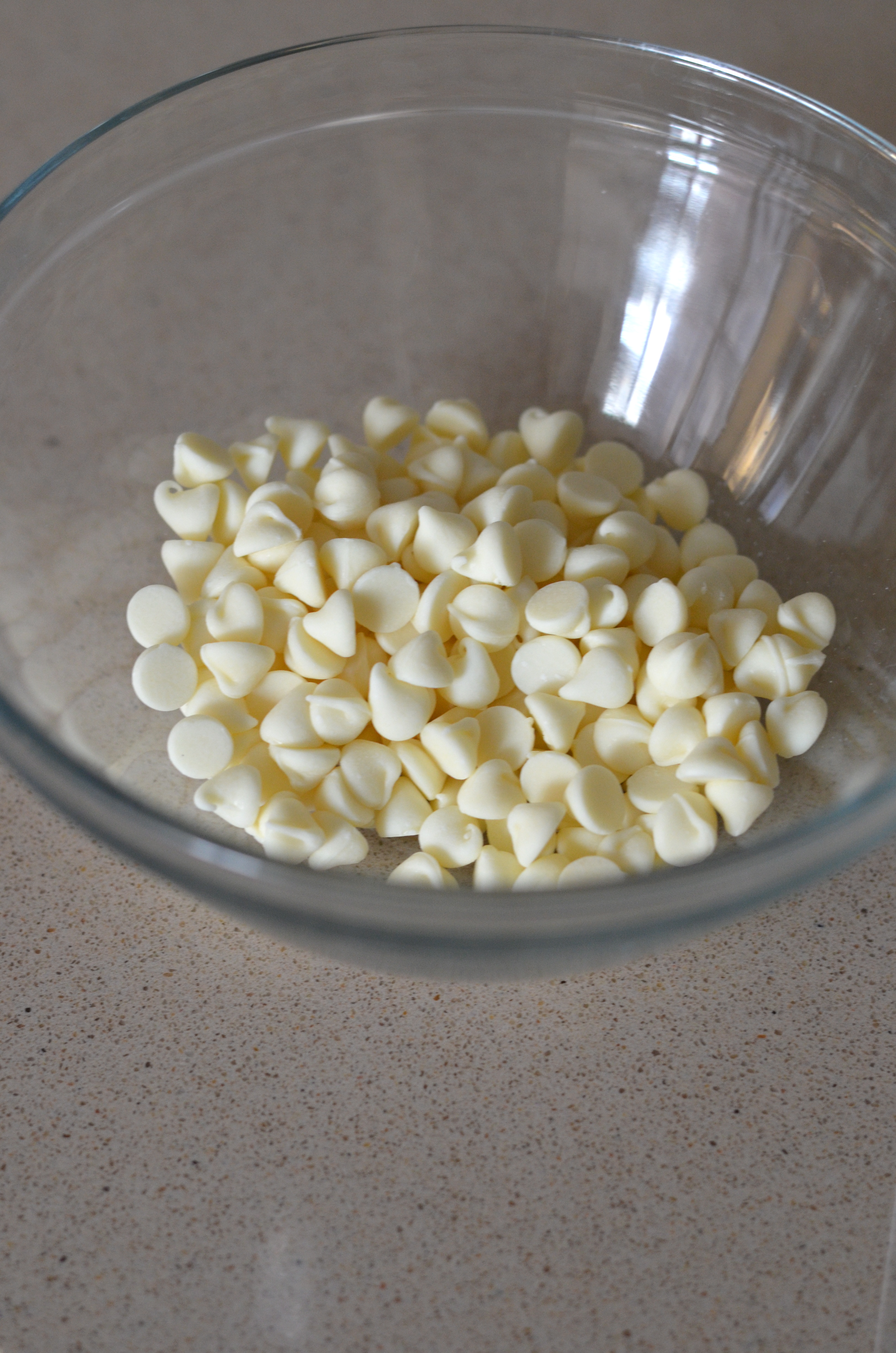 Place chocolate chips in a microwave safe bowl and microwave until melted in intervals of 20 seconds.