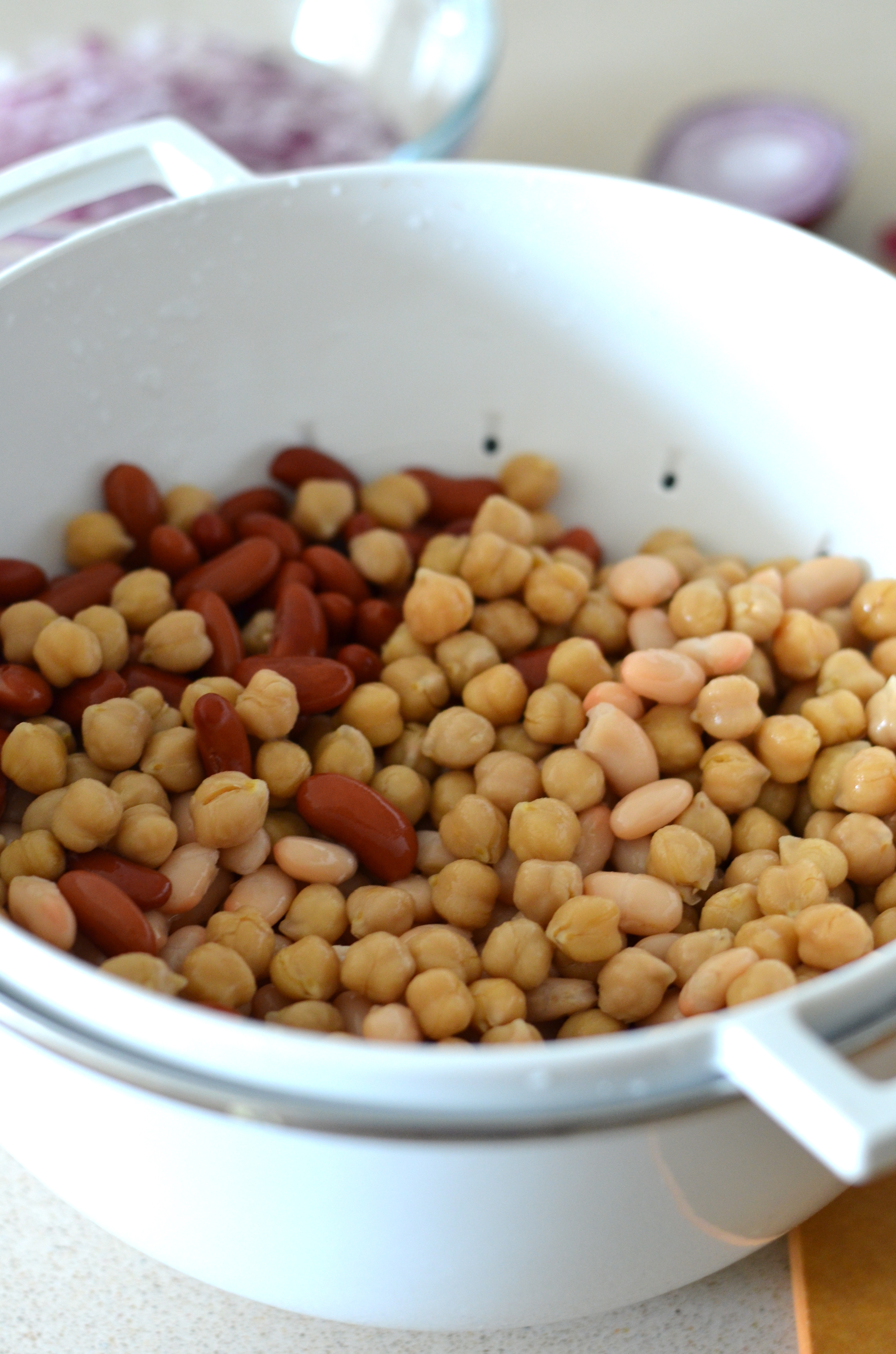I used Kidney, Garbanzo and Cannellini but you could use any bean you like or have on hand!