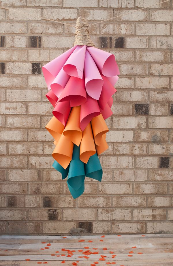 I love this big, colorful and whimsey paper cone centerpiece. It would be so fun for any event and super cheap to make! I’m trying to figure out how I can incorporate one of these cone decorations in my everyday life…housewarming party?
