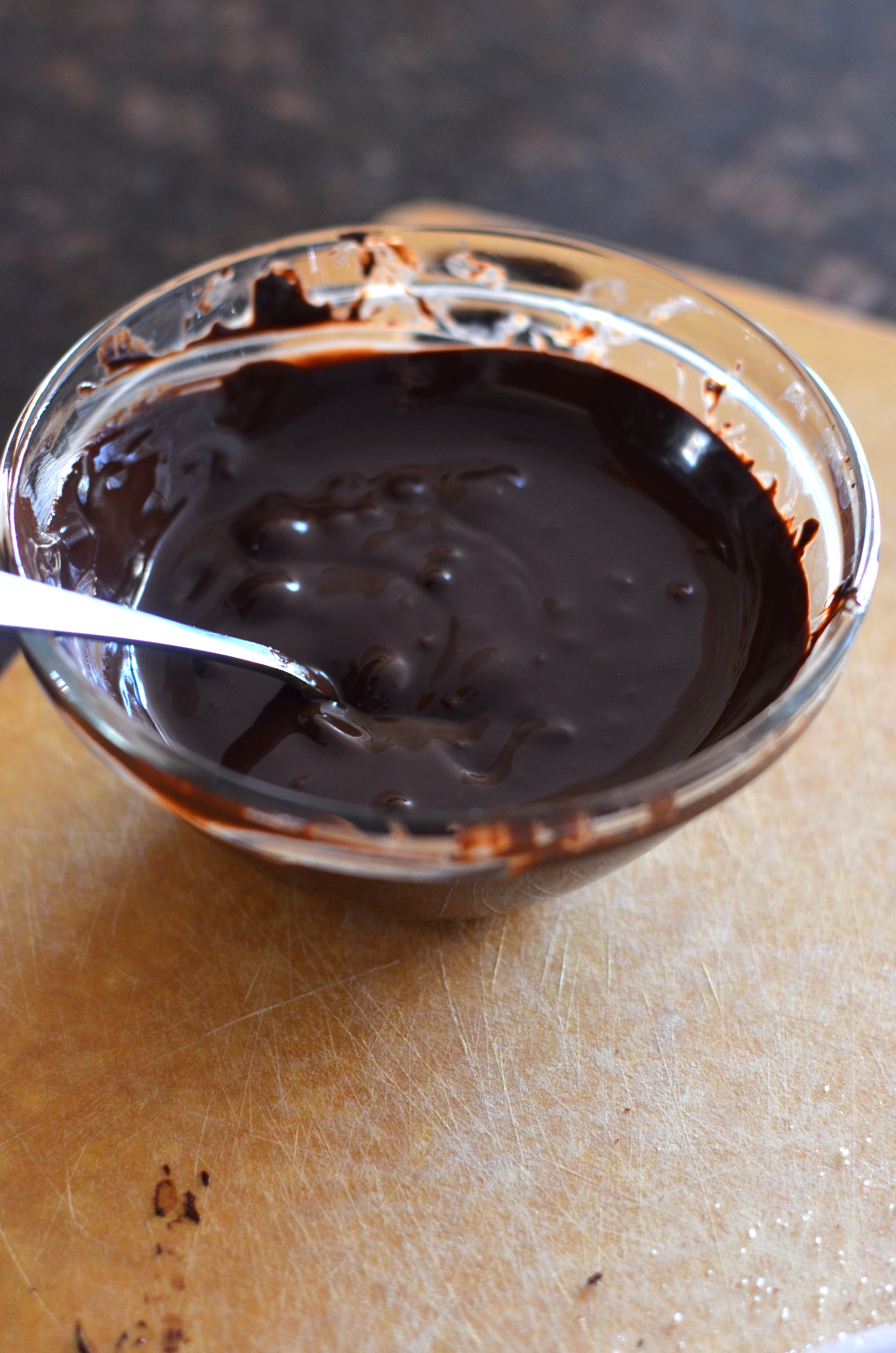 In a small microwave bowl, microwave unsweetened chocolate for 1 to 2 minuted, stirring well every 30 seconds. Cool slightly.