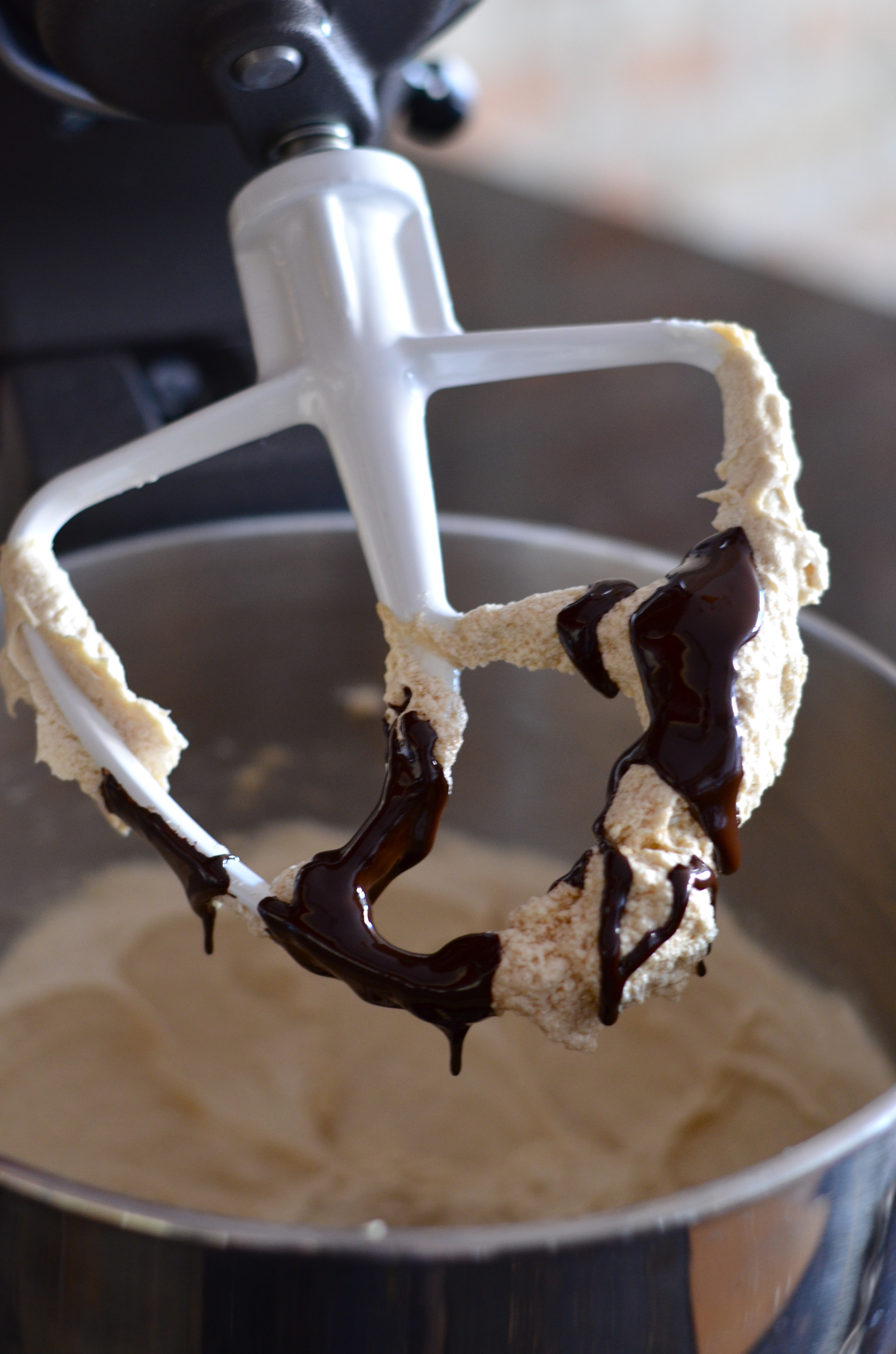 In the bowl of an electric mixer, beat butter for 30 seconds and then add sugars. Once combined, add sugars. Beat until combined, scraping sides of bowl.