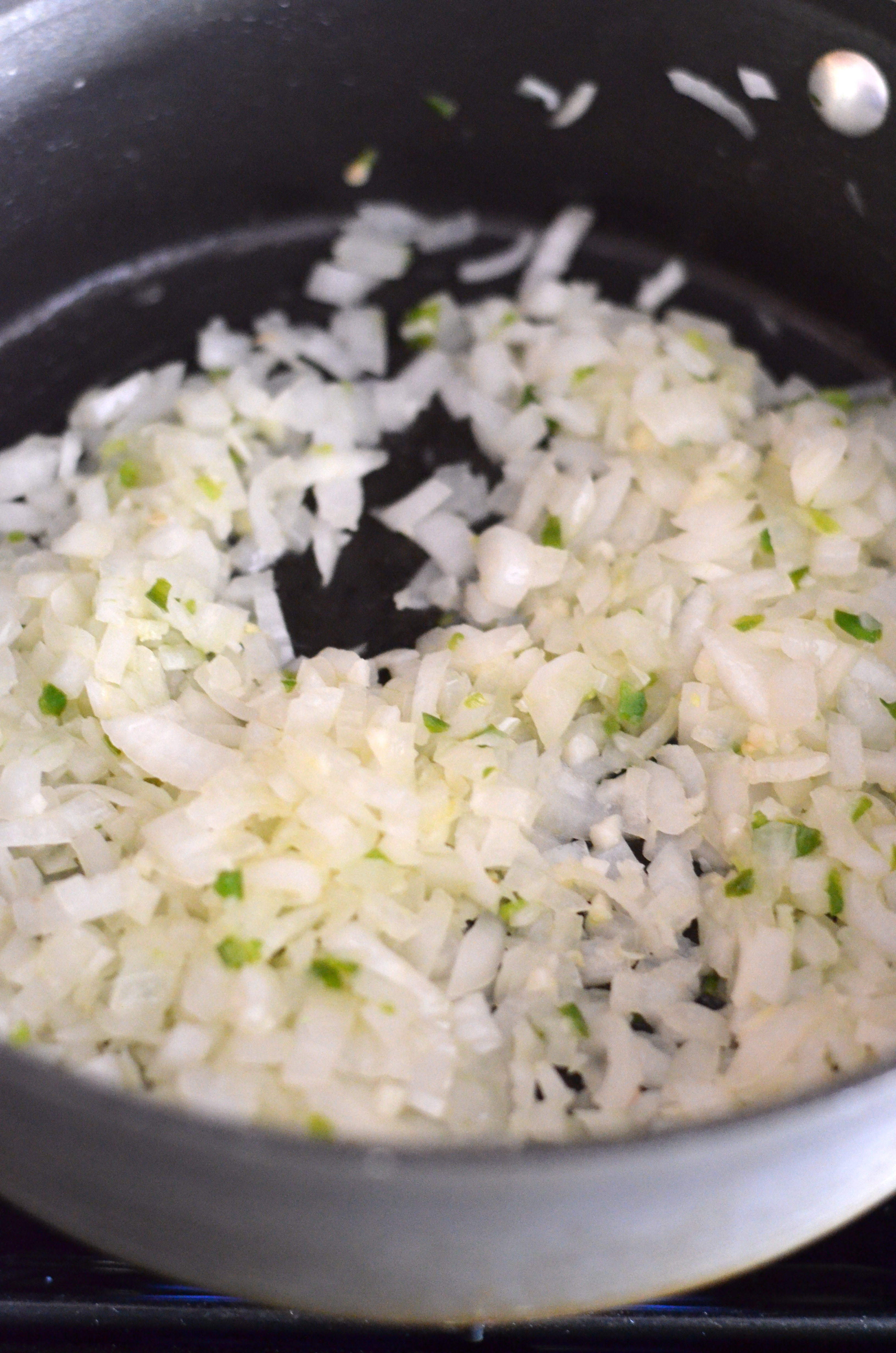 Saute onion, peppers and garlic for 3-5 minutes until onion has softened.