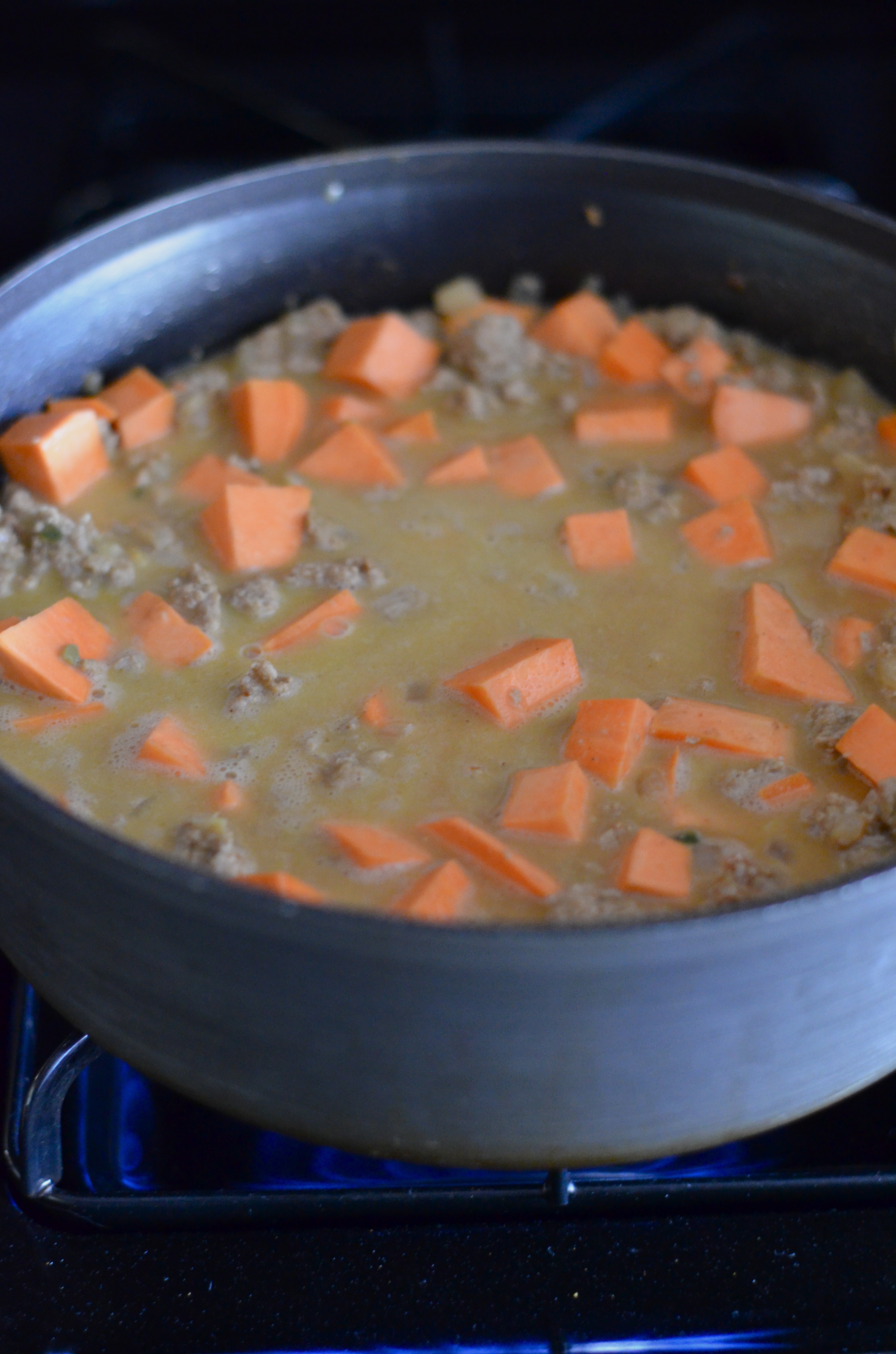 You could add or subtract any of the veggies here as well as the ground turkey. Just as long as you let everything simmer in the coconut milk mixture until it is cooked through.
