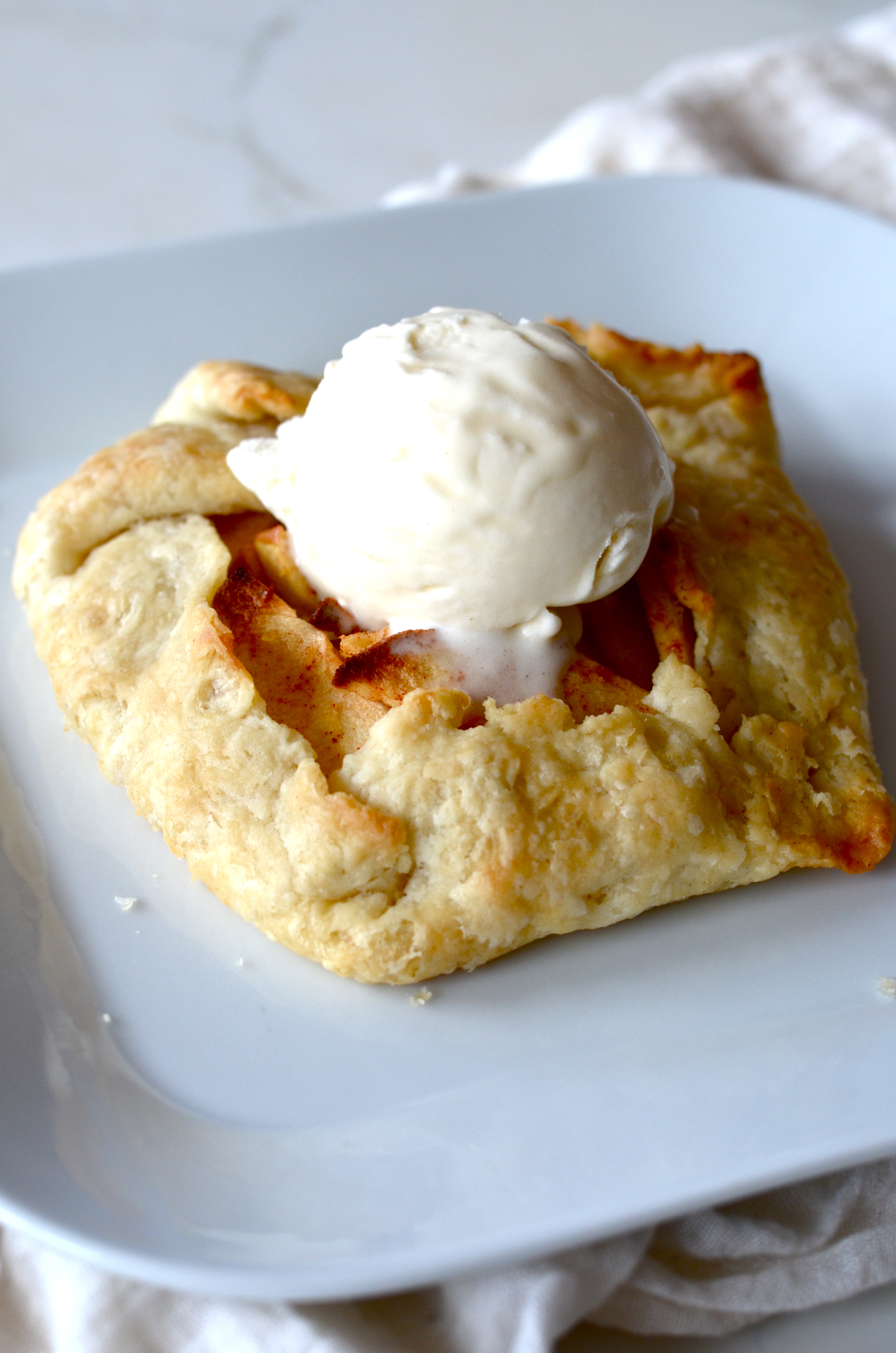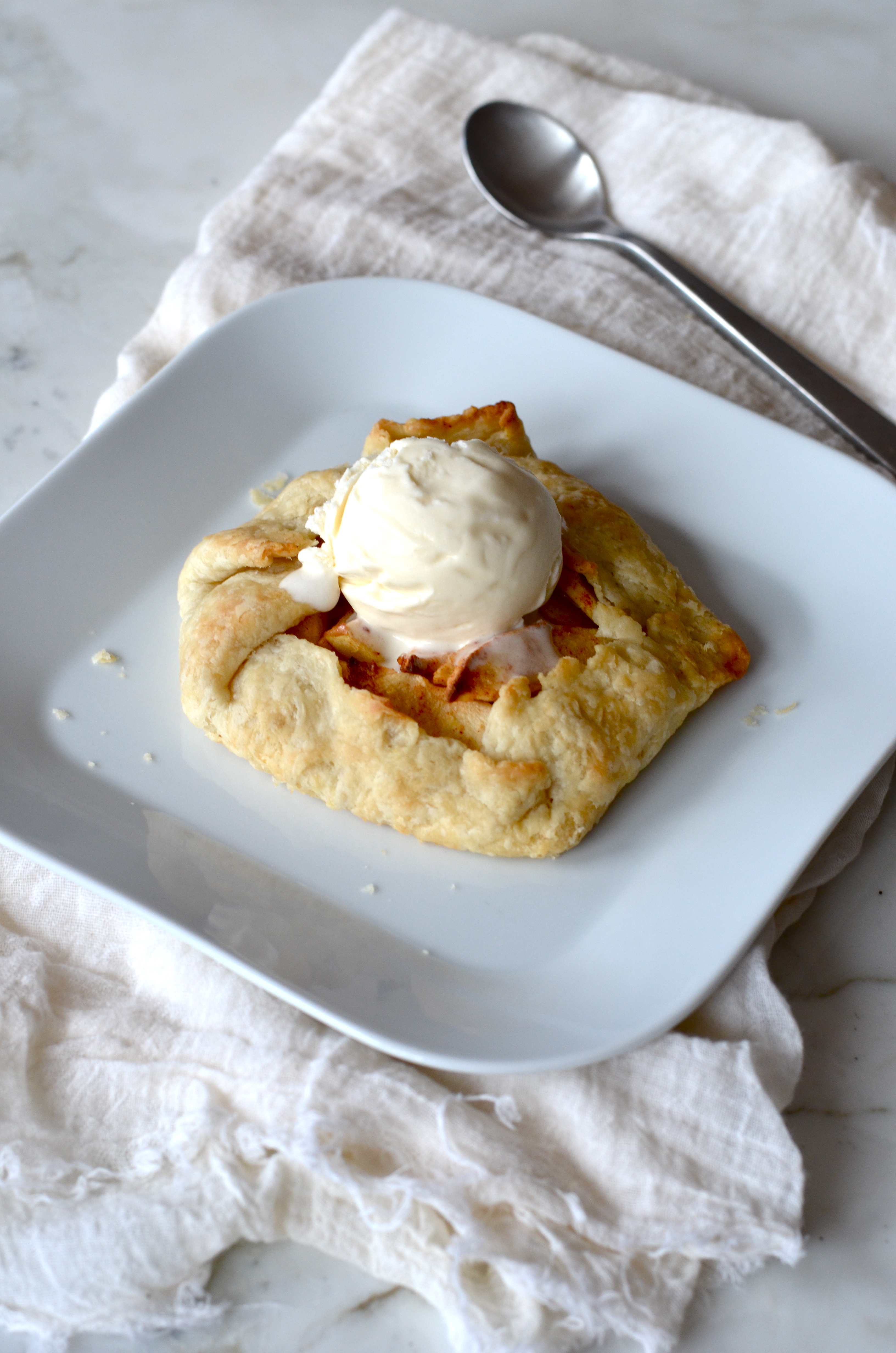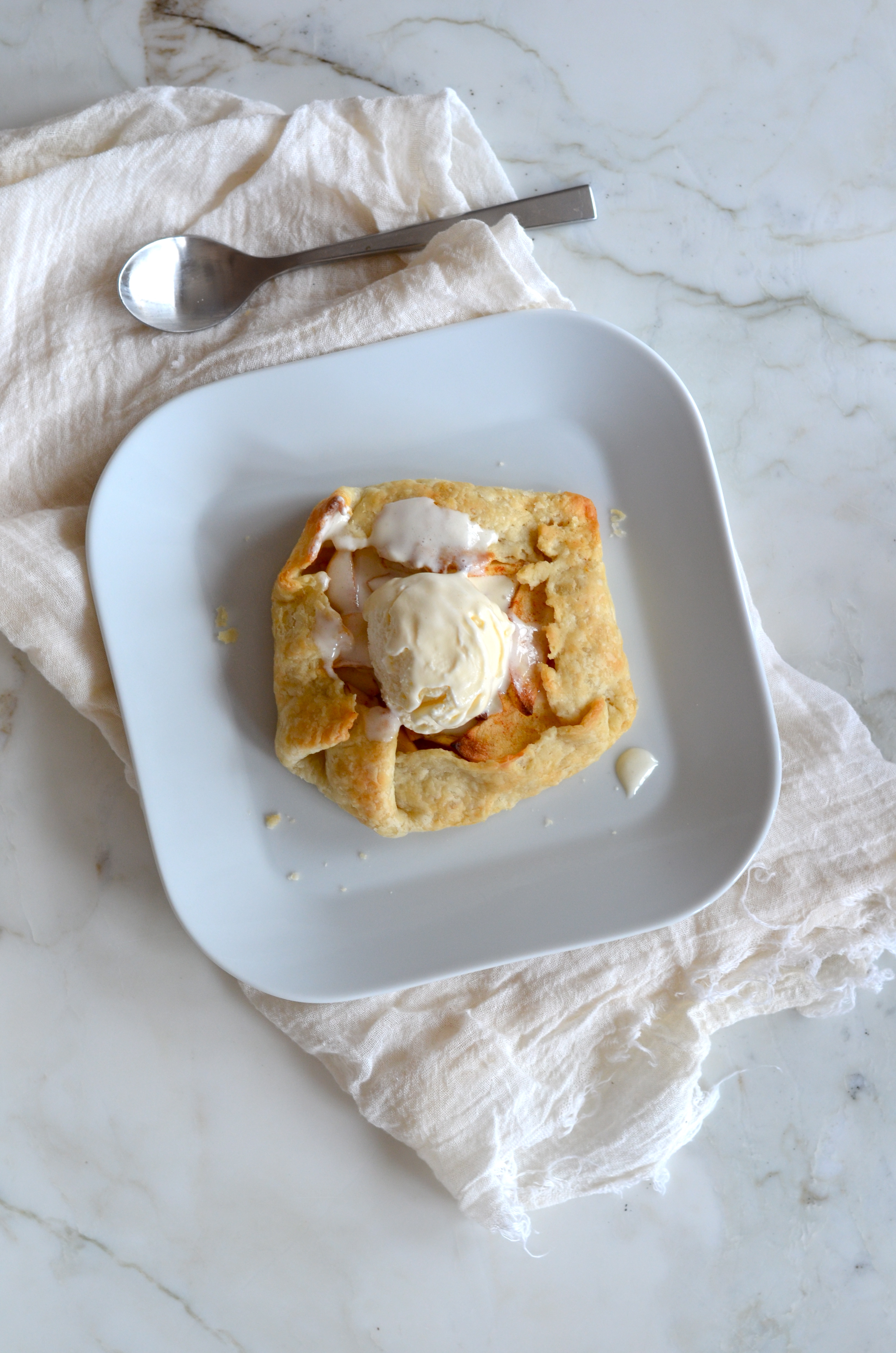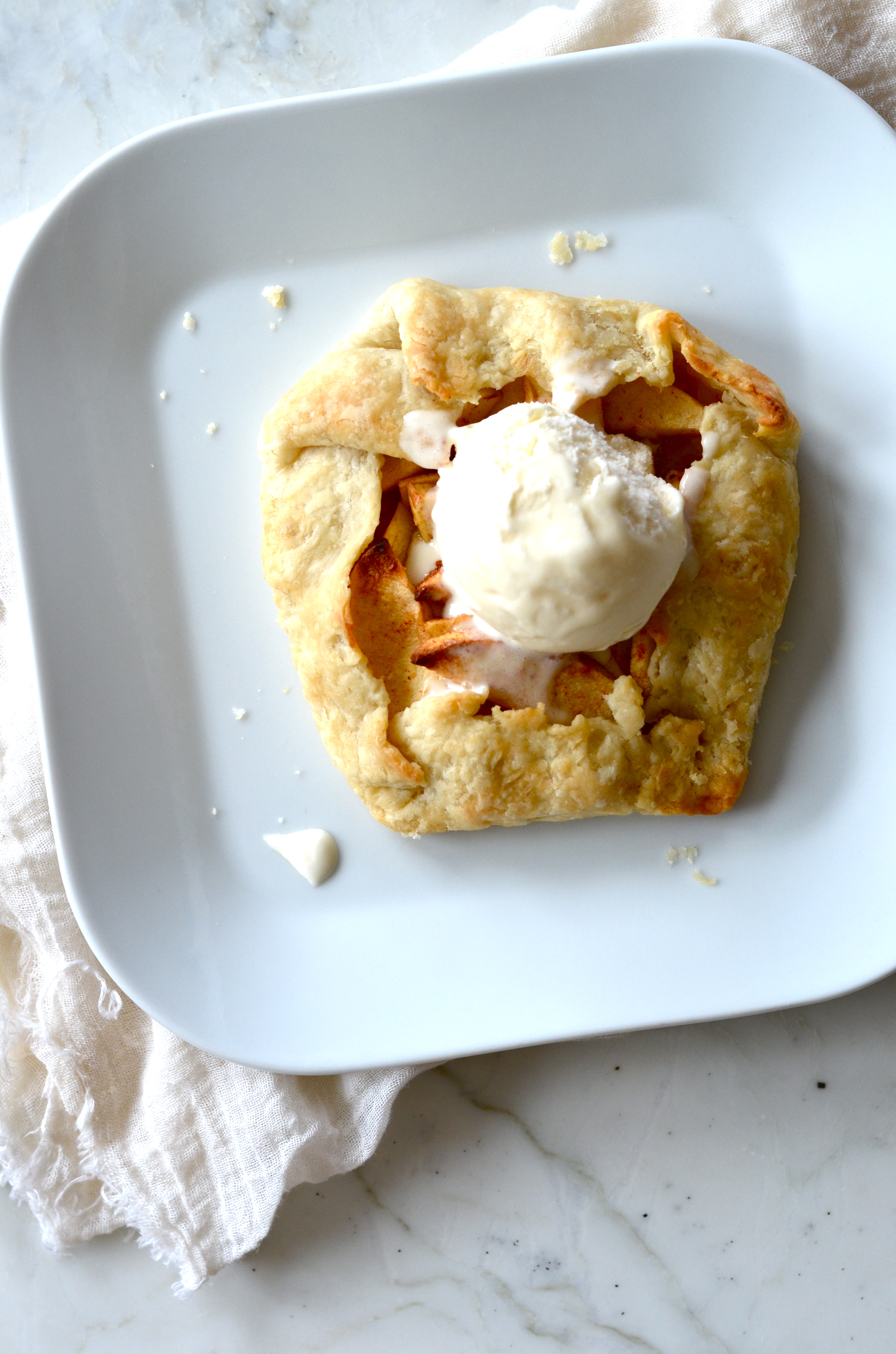 Serve warm with a scoop of ice cream and a sprinkle of caramel sauce (I attempted to make some but burned my sugar and called it a day).