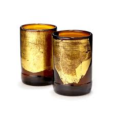 Look how beautiful these Tumbler glasses are. They are upcycled beer bottles with gold leaf…so cool!