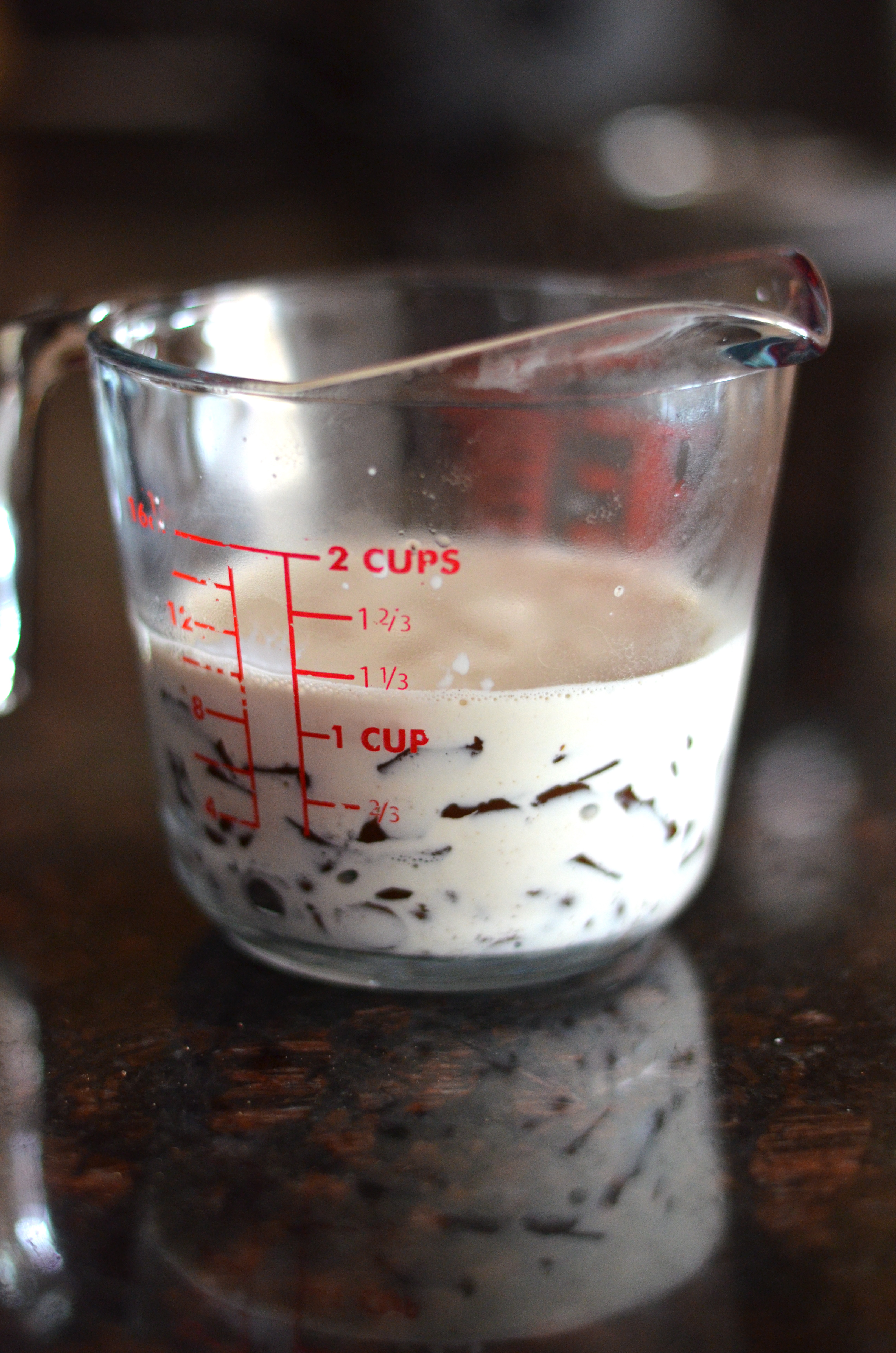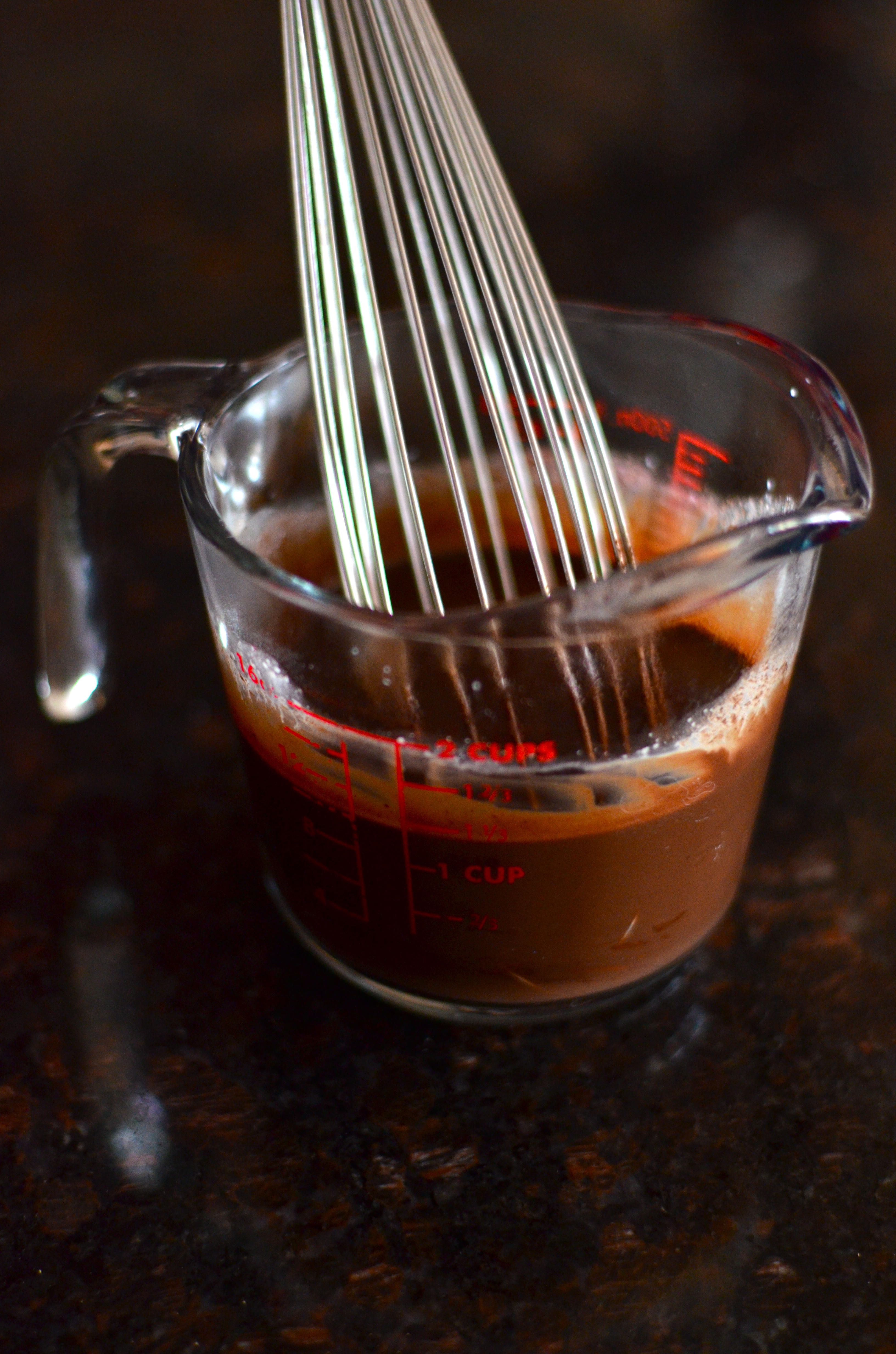 For the Ganache you will place chocolate chunks in a glass bowl and heat the cream over the stove until it just reaches a boil. Pour the heated cream over the chocolate and let sit one minute. Whisk milk into chocolate until fully incorporated and let cool and thicken slightly.