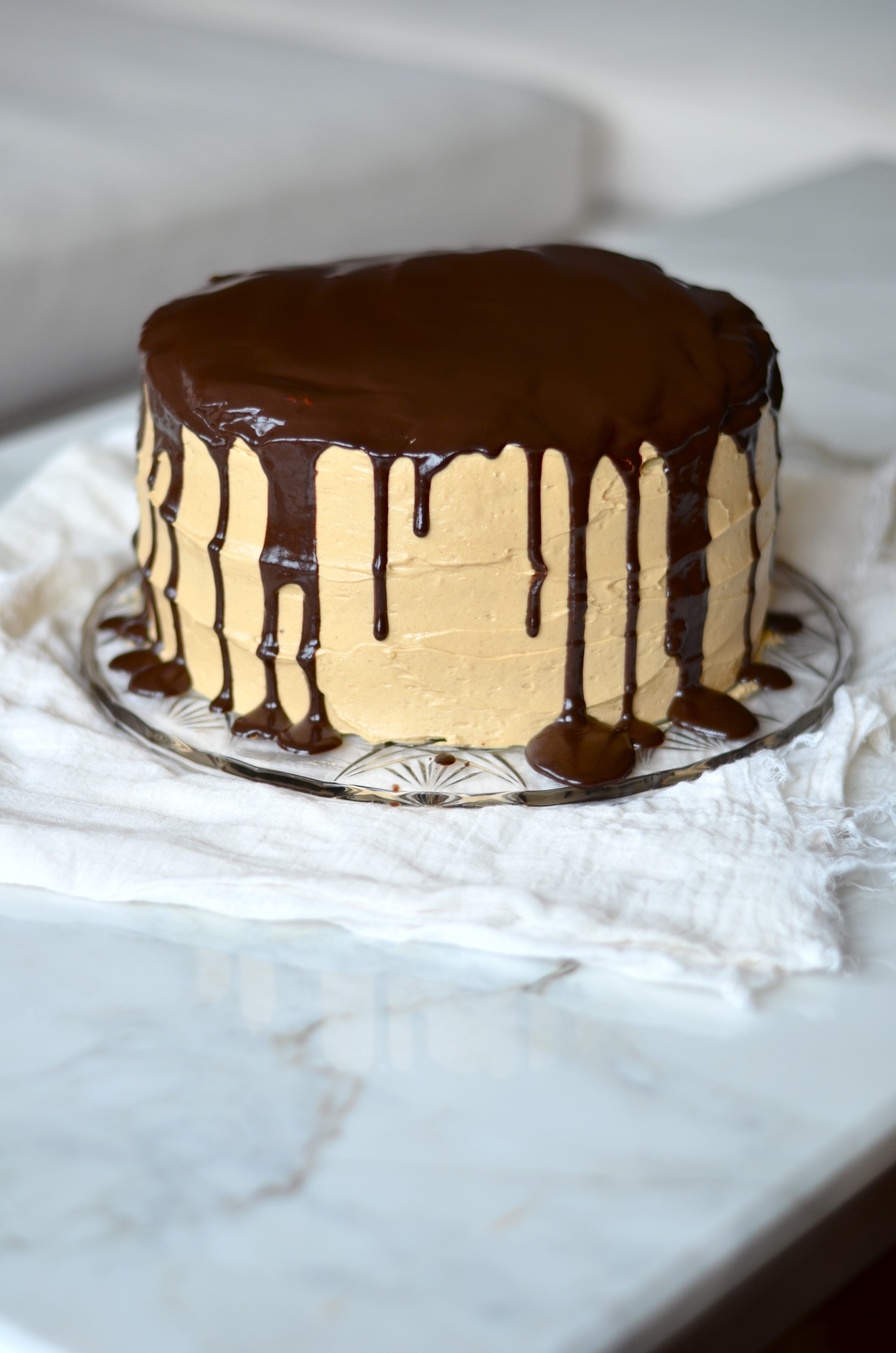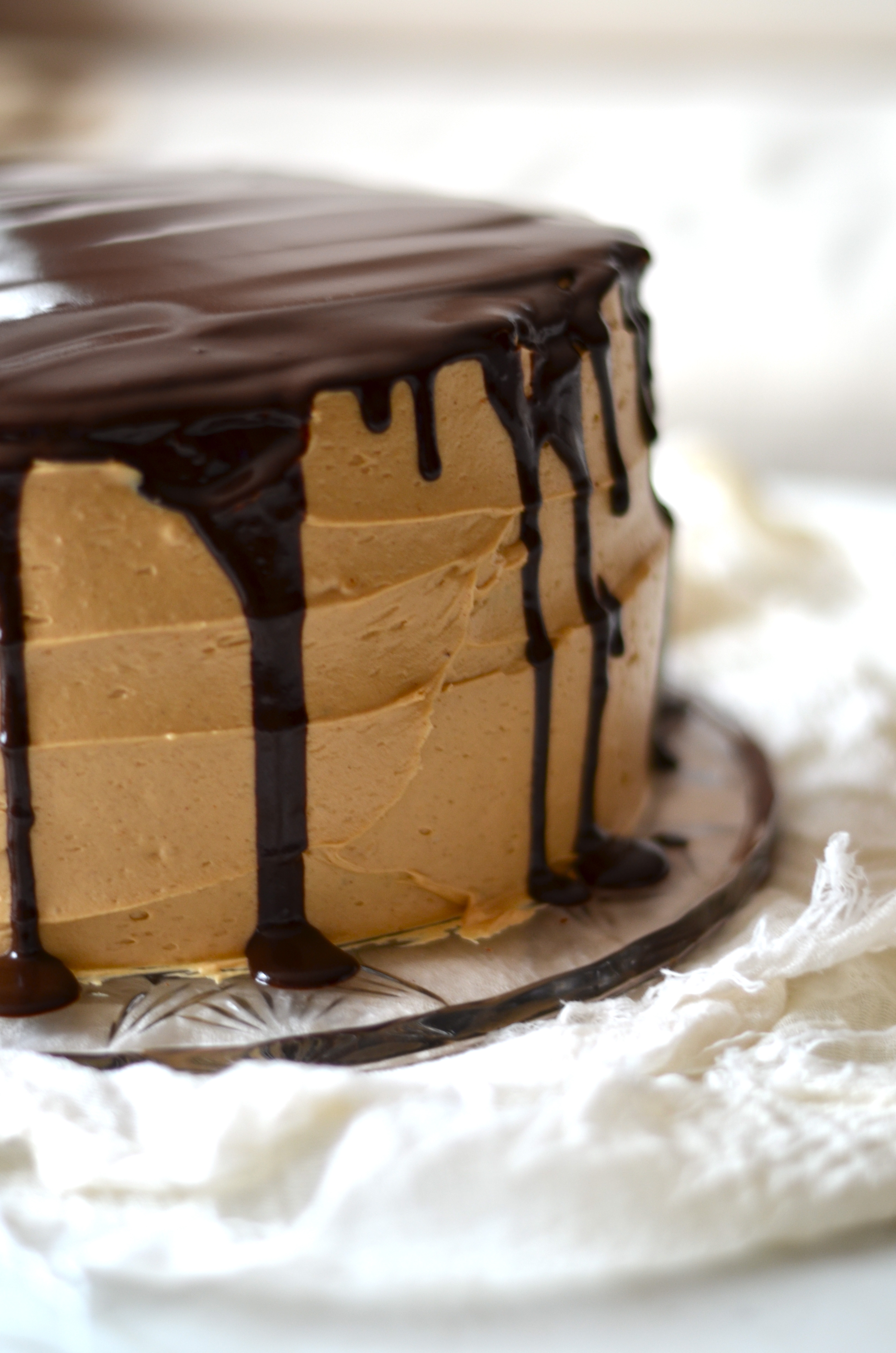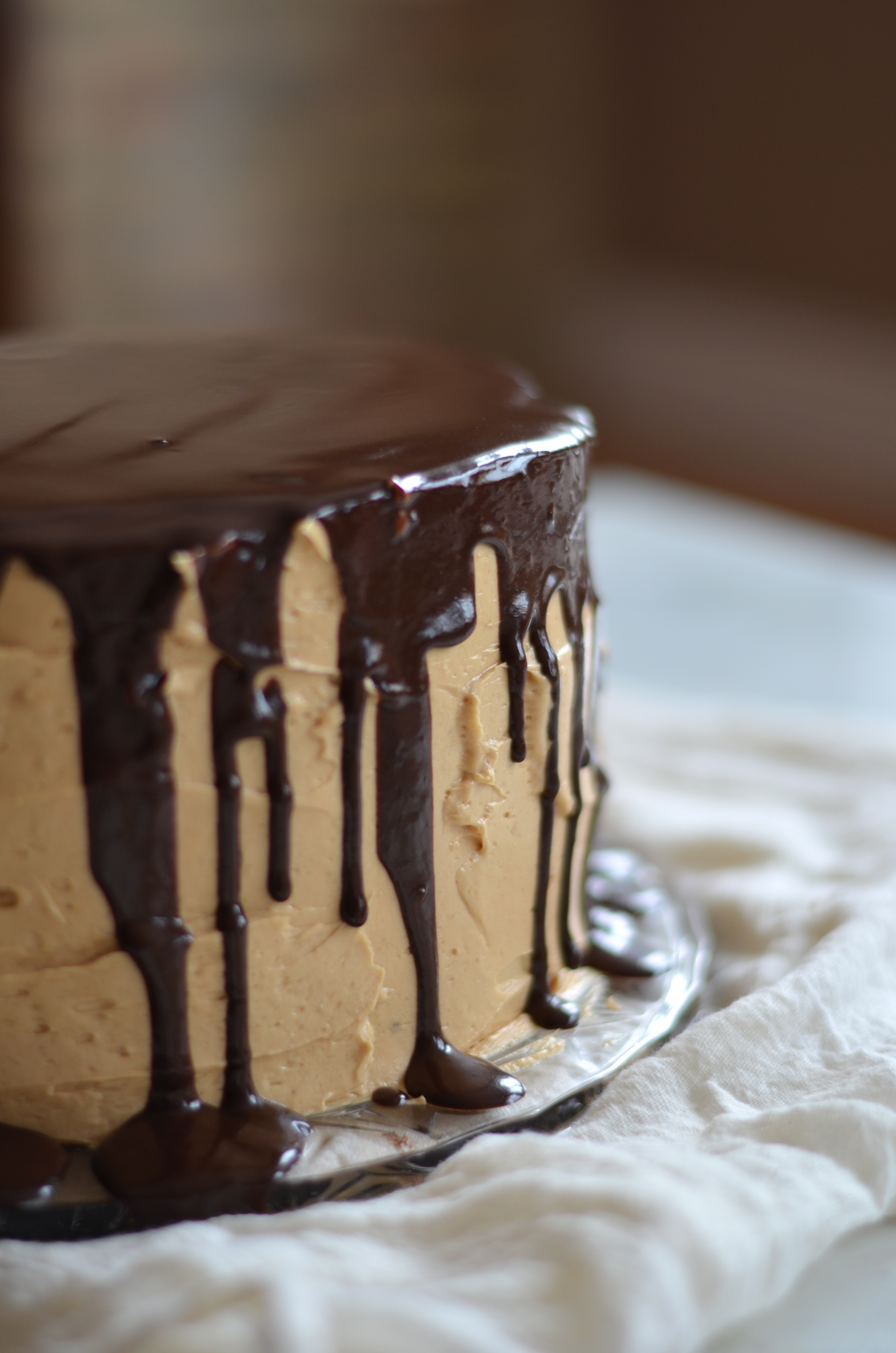 Mikey doesn’t like peanut butter, but It is my absolute favorite. So I decided I would make something that I love. I don’t normally choose chocolate cake over white cake, but this just seemed too good to pass up. And I’m so glad I made it.