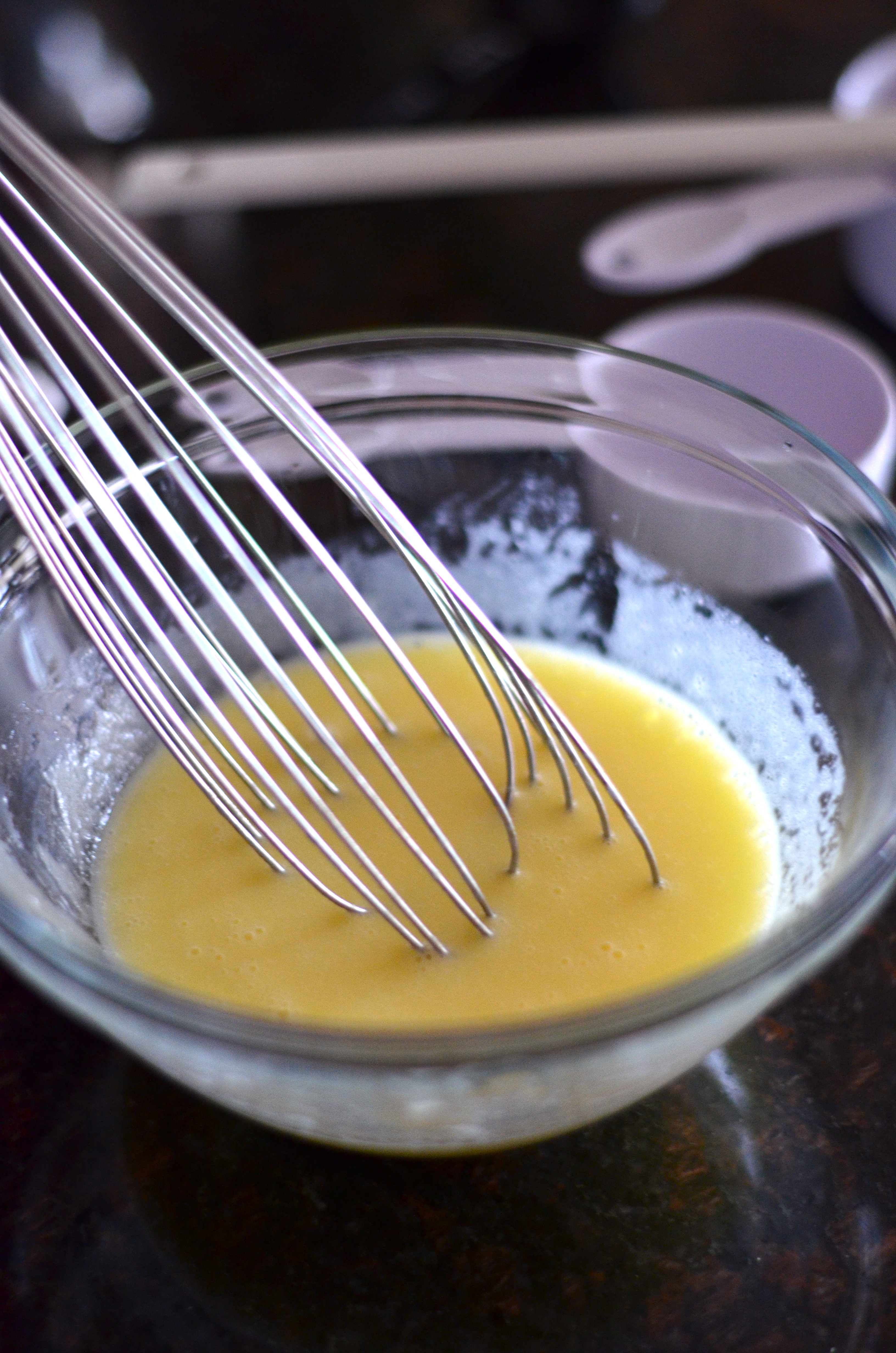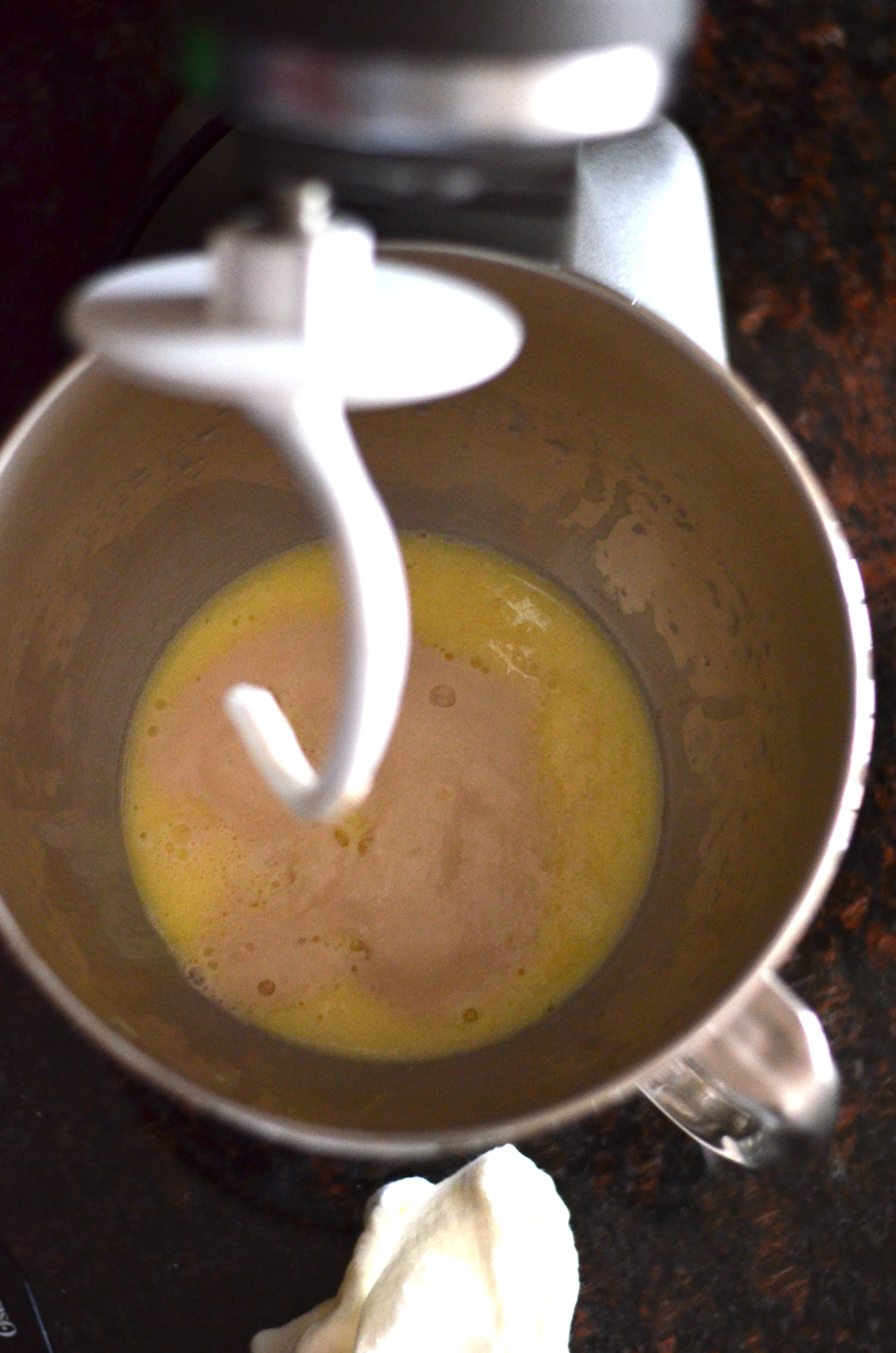 After 10 minutes the yeast should be looking frothy. Once it is, pour the buttermilk and egg mixture in with the remaining sugar and salt and stir together 10-15 seconds.