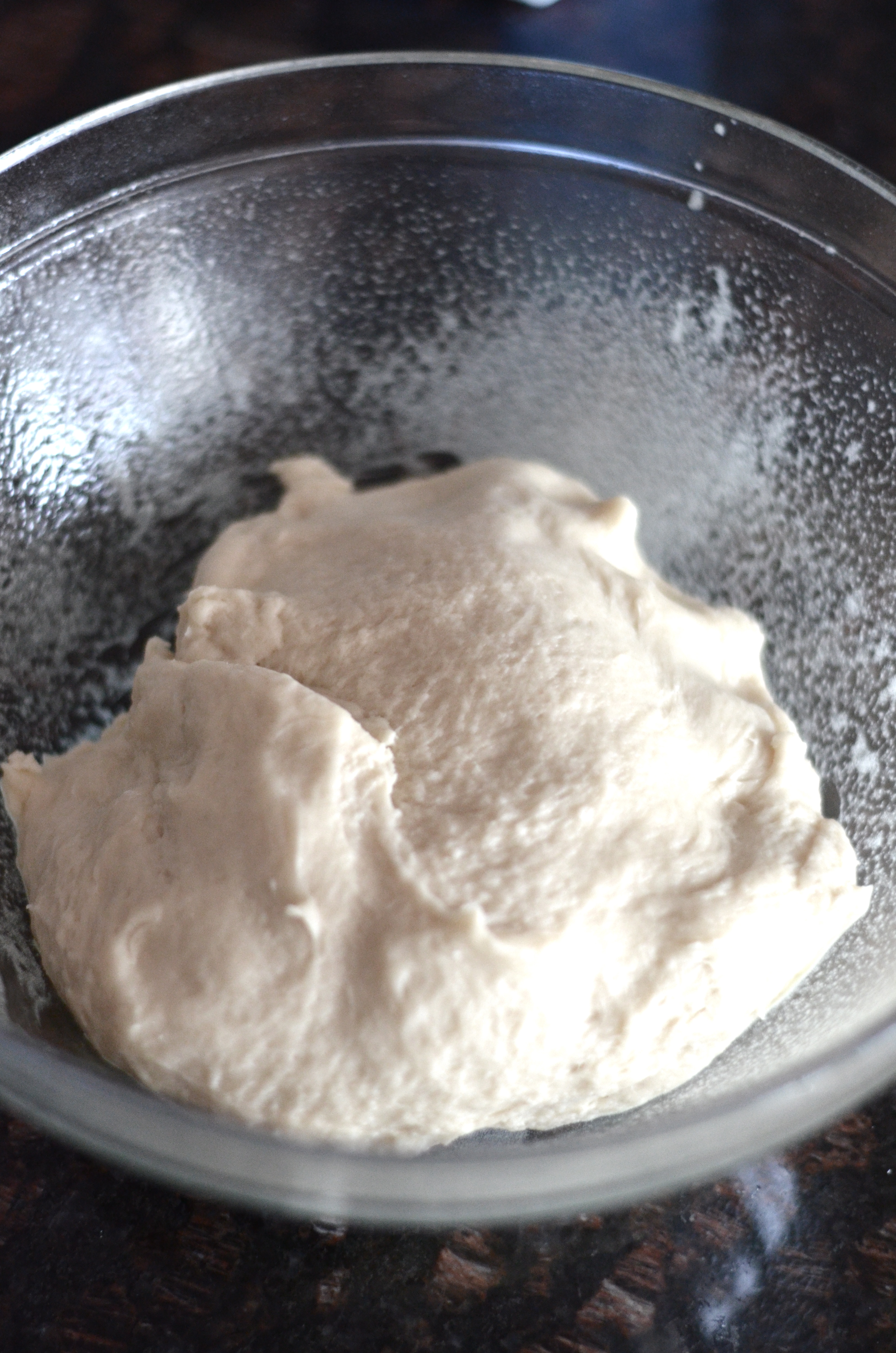 Transfer dough to an oiled bowl and cover with a towel or plastic wrap in a warm, dry place. Let dough rise for 1-2 hours, or until dough has doubled in size.