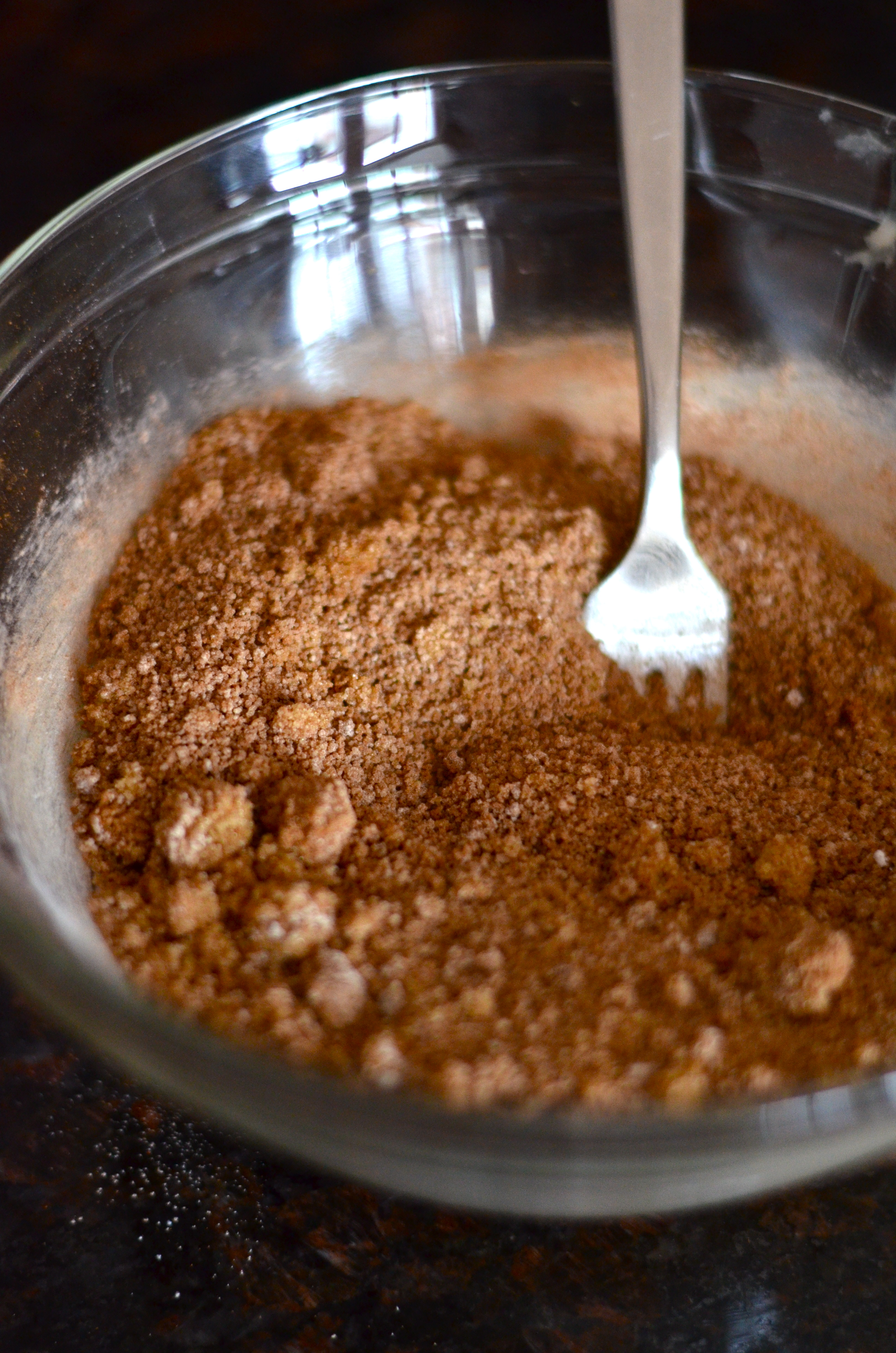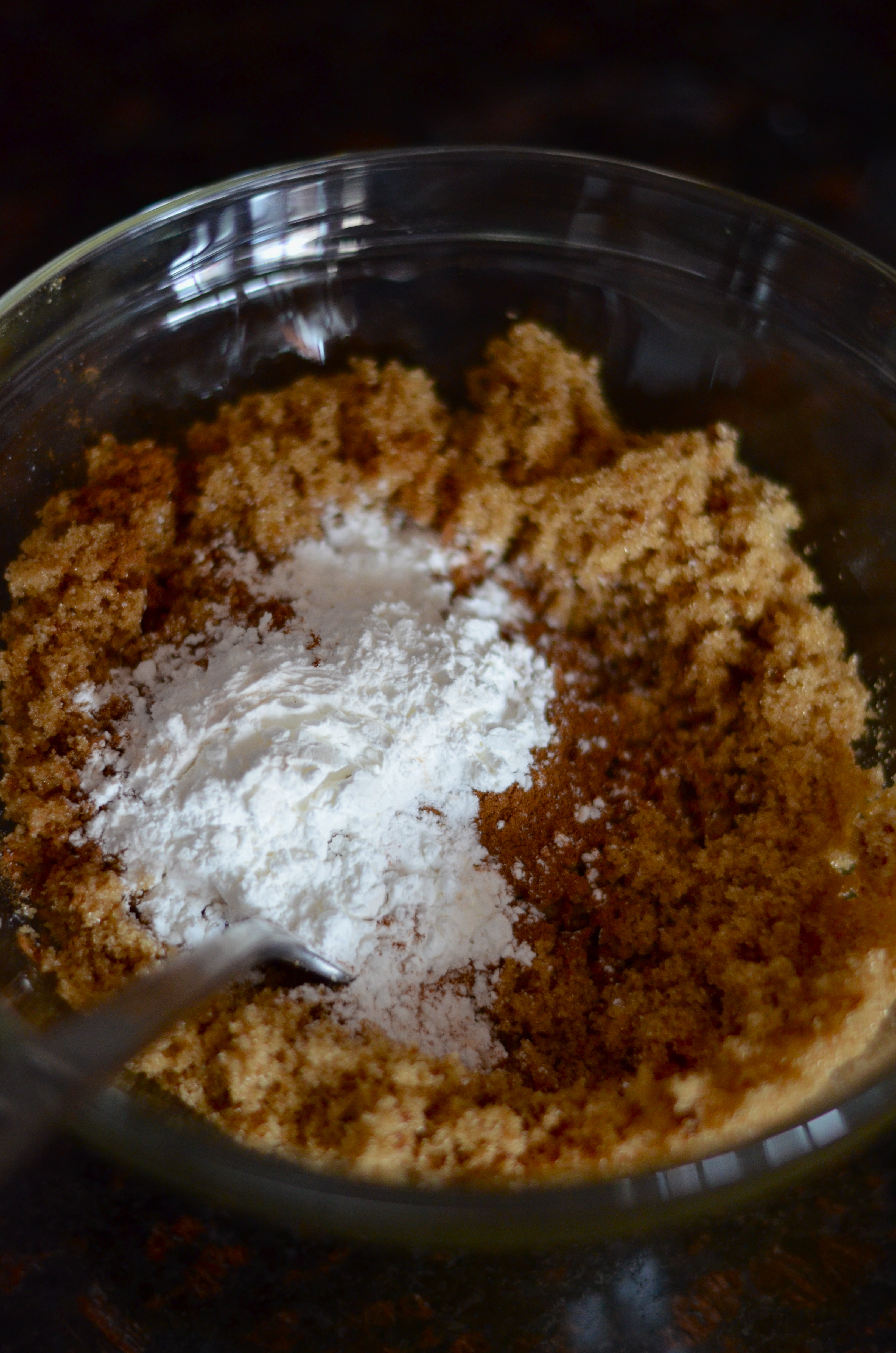 In a medium bowl mix together the brown sugar, cinnamon and cornstarch. Set aside.