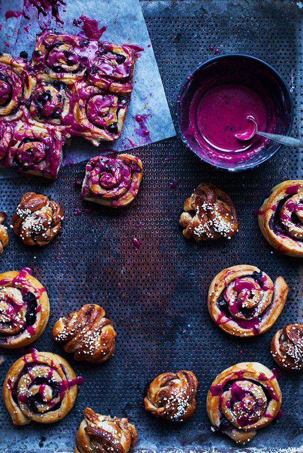 Starting with these beautiful Blueberry Buns with Blueberry Icing. So. Pretty!