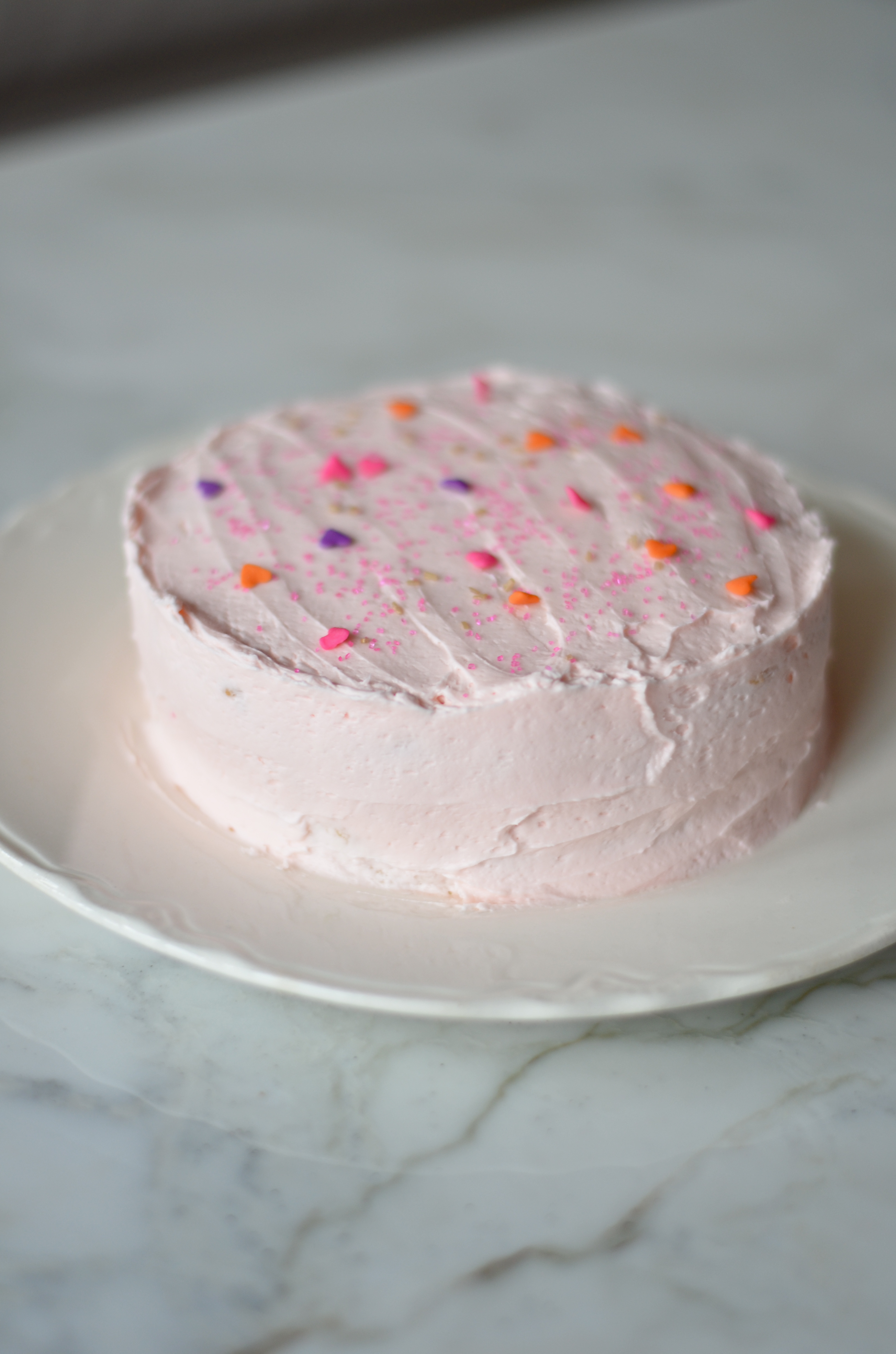 Lucky for you, these cakes would be loved by anyone at any age. This was one of my favorite cakes I’ve made thus far (we all know funfetti is my favorite). The pink frosting and heart frosting could have been a factor in my love for the cake as well, I suppose. Either way I think I’m going to bake myself one of these cakes for Valentines Day!