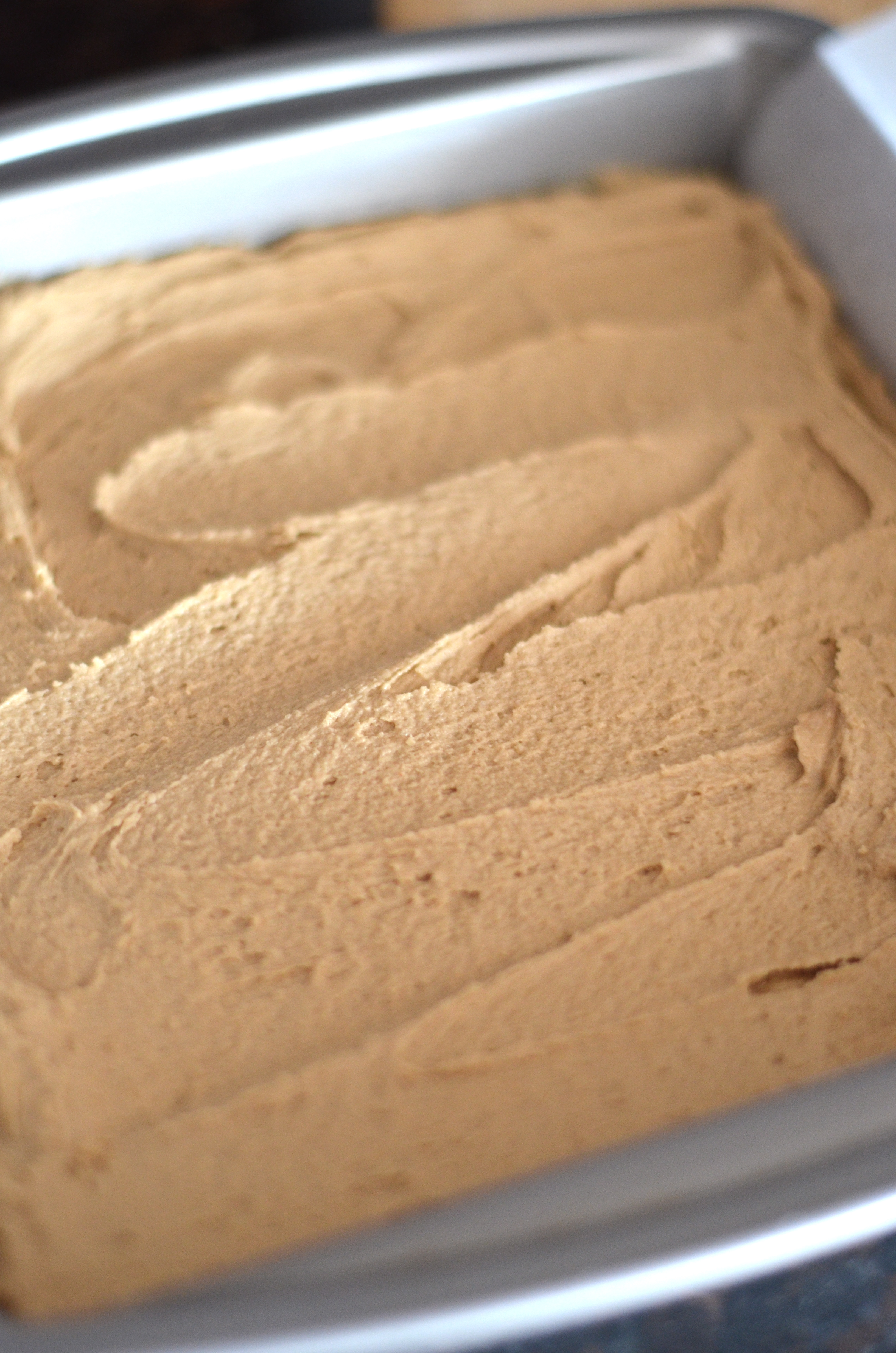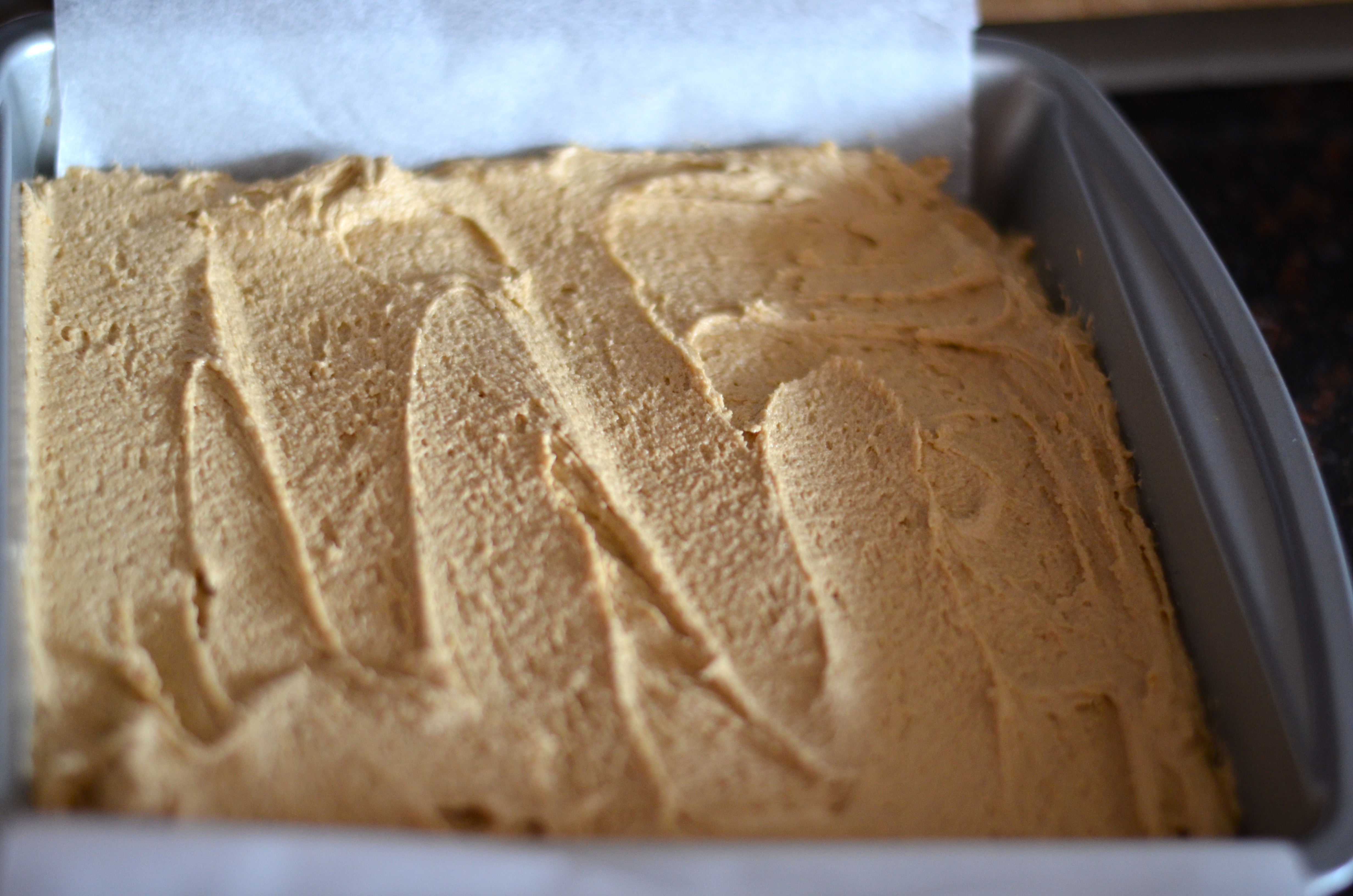 Line a 8×8 pan with parchment and pour batter evenly into pan.