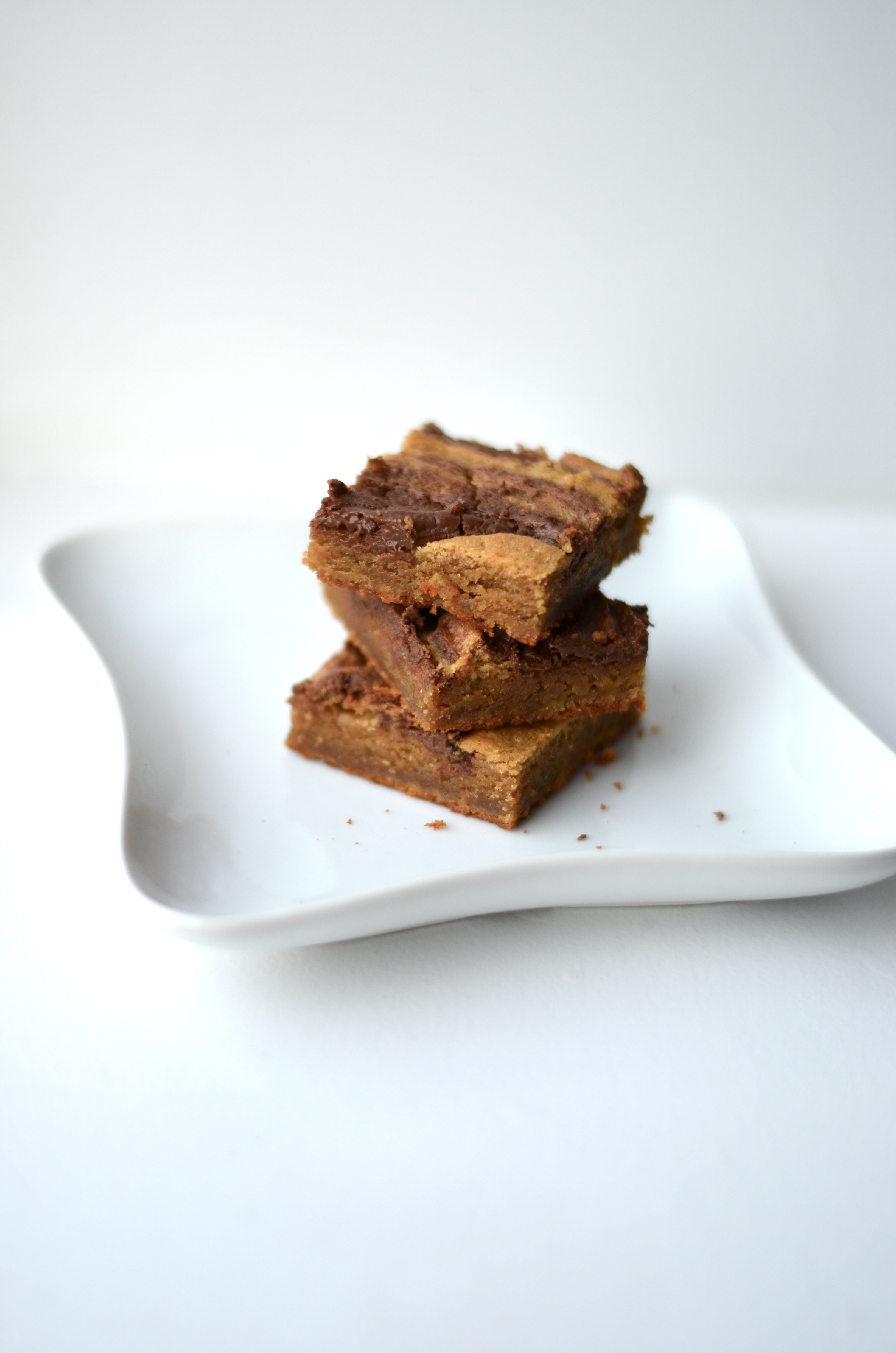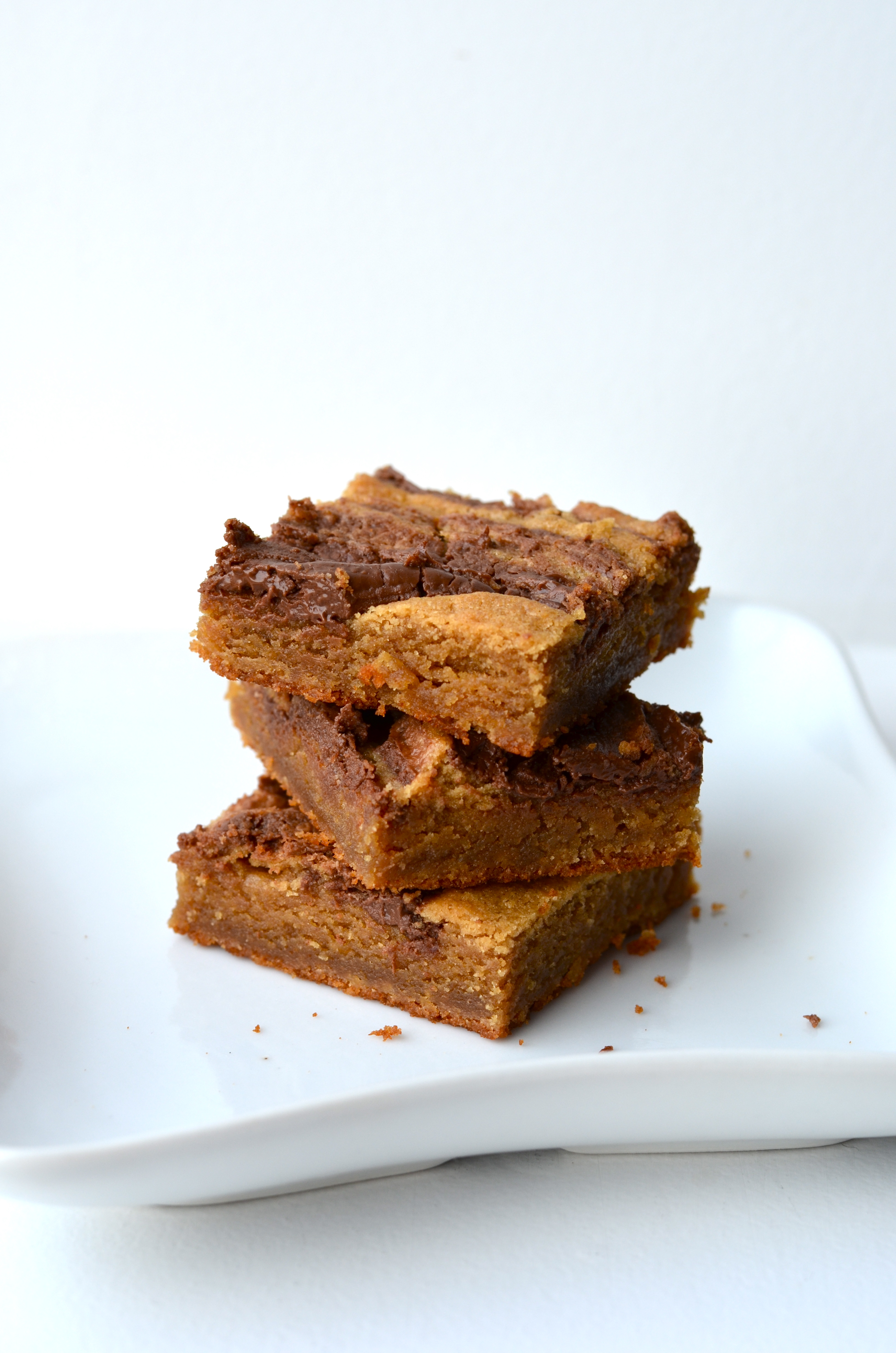 Can you tell I’m inspired? My yoga rant is over and in it’s place I will leave you this recipe. Holy. Crap. It’s a doozy. Gooey, sweet and salty amazingness. Peanut butter is #1 and Nutella is #1A. Both soooooo good! These bars are super easy to whip together and will please every crowd (minus those with a nut allergy…). I highly recommend you make these stat!