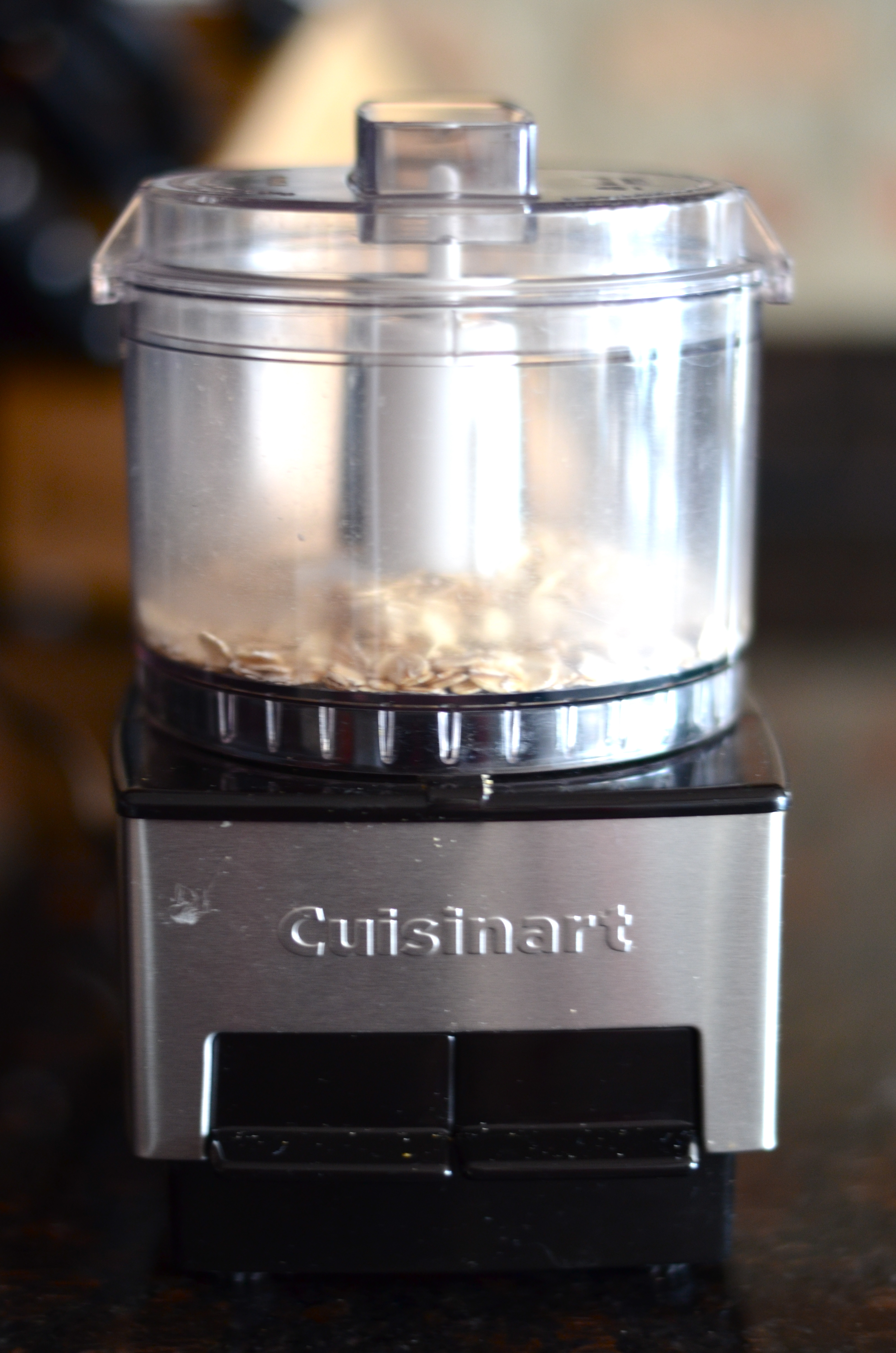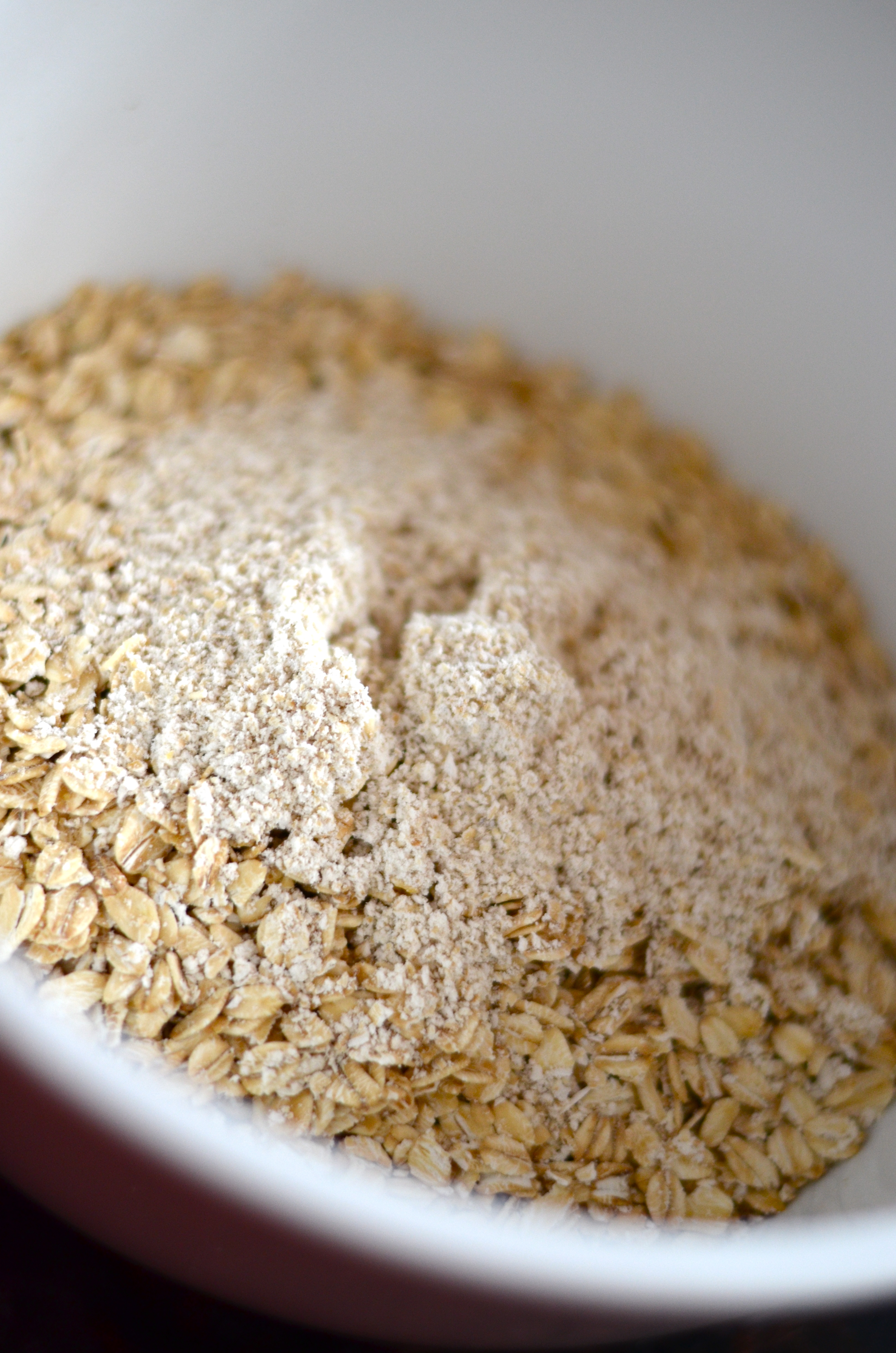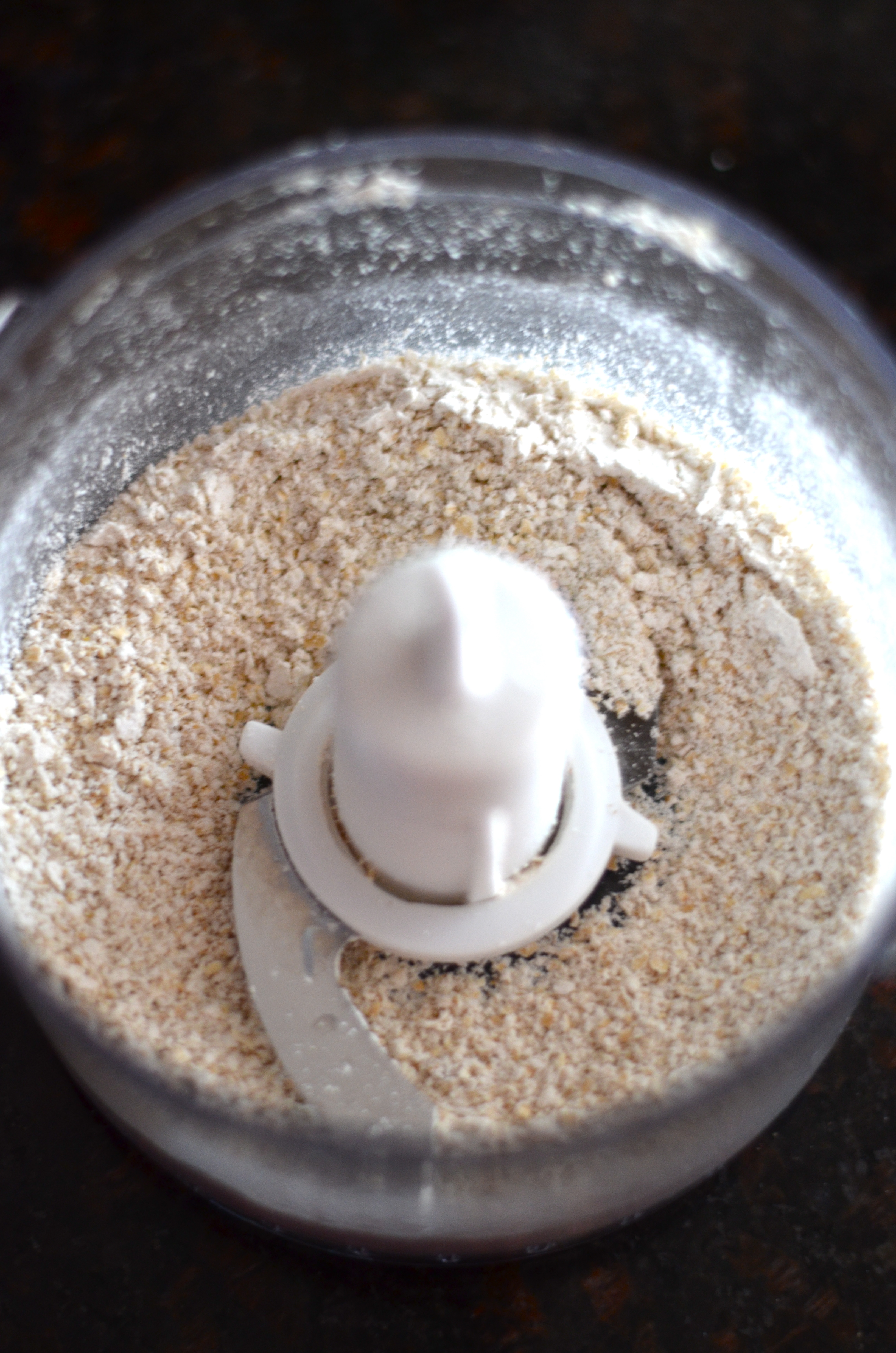 Pulse 1/8 Cup rolled oats in a food processor to make oat flour (can use wheat germ or whole wheat pastry flour too).