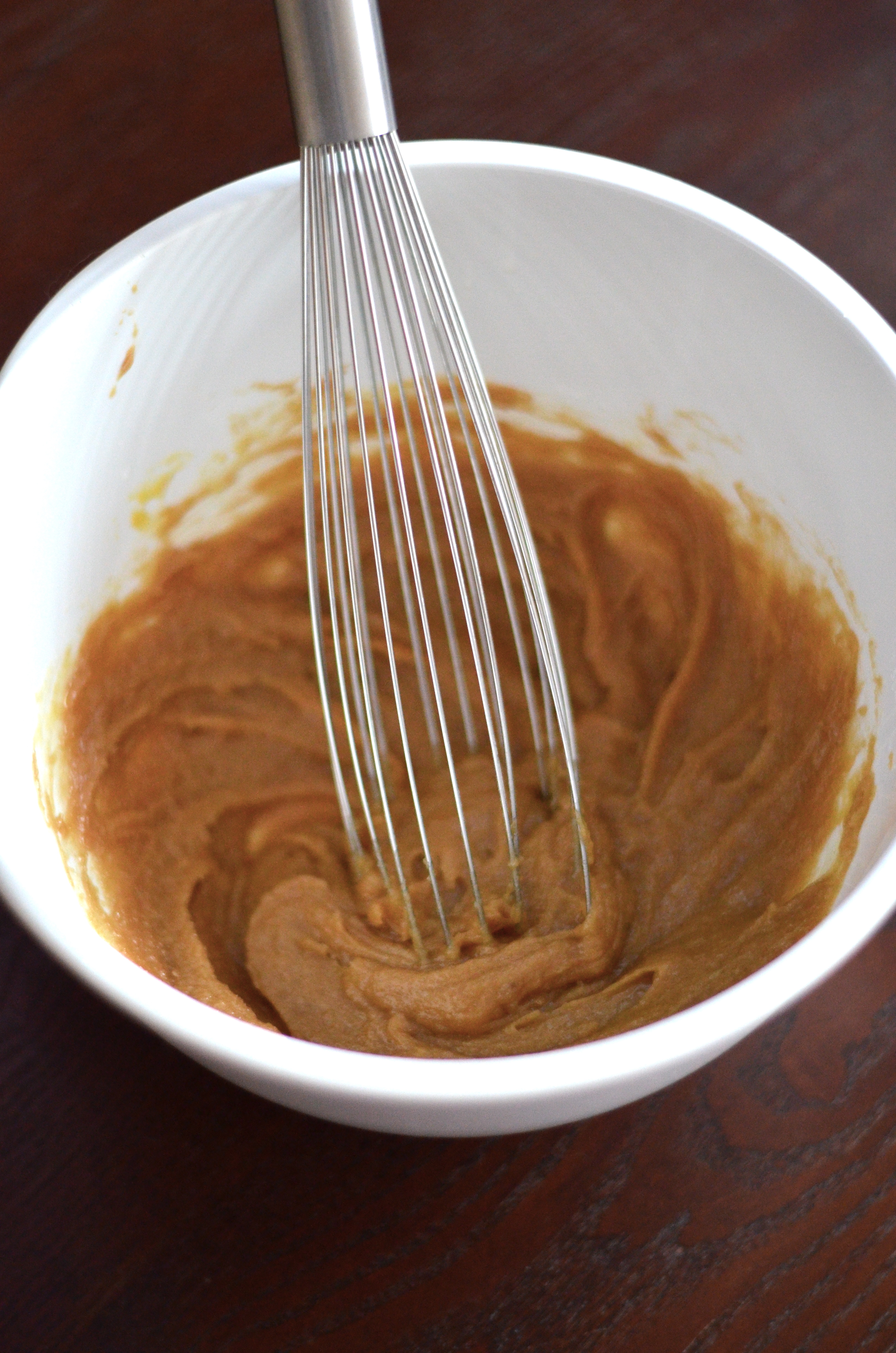 Directions: Preheat oven to 350 degrees. Line a muffin tin with paper liners and set aside. In a large bowl, combine peanut butter, bananas, butter, honey, sugar, egg and vanilla. Whisk together well.