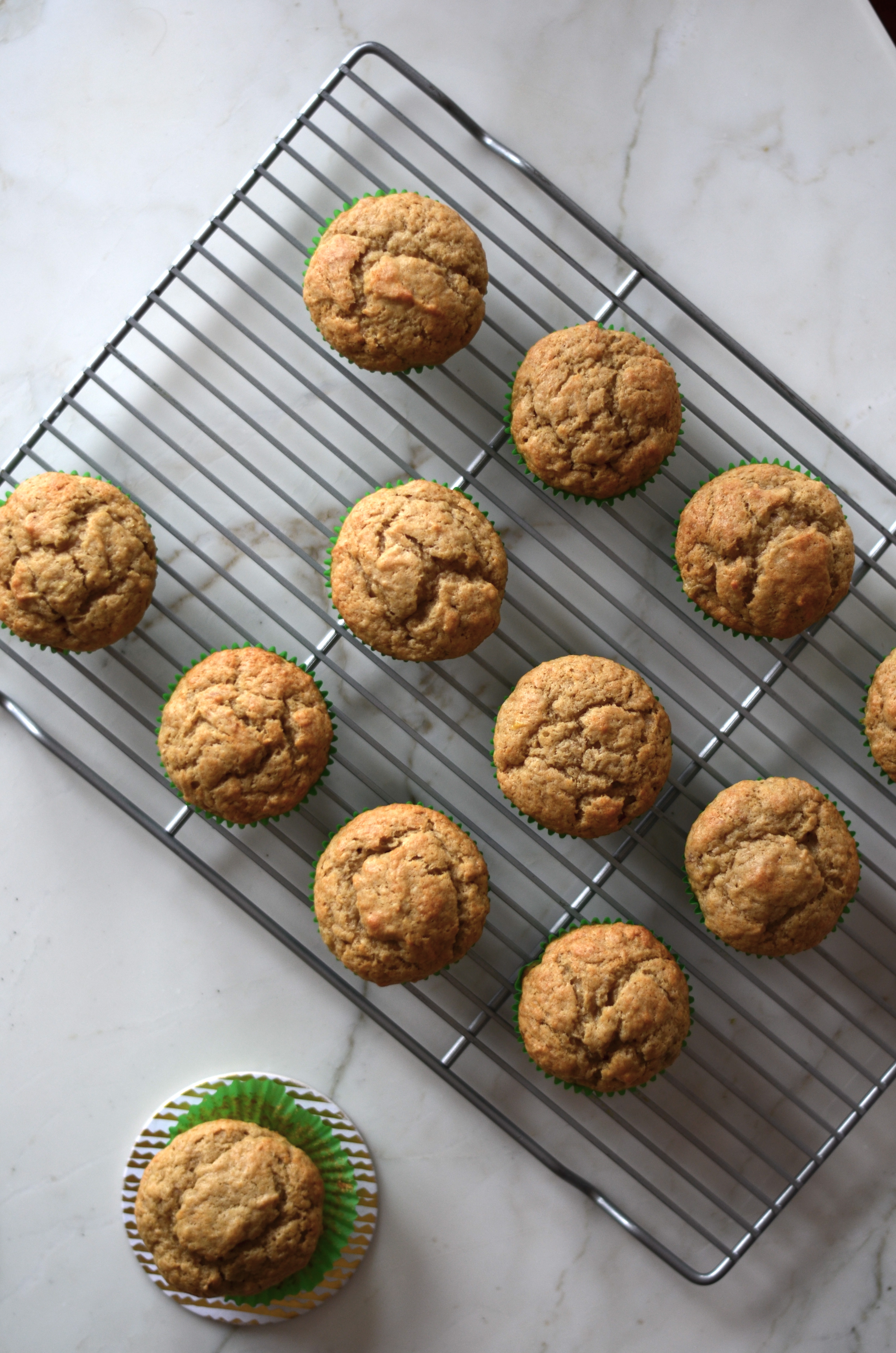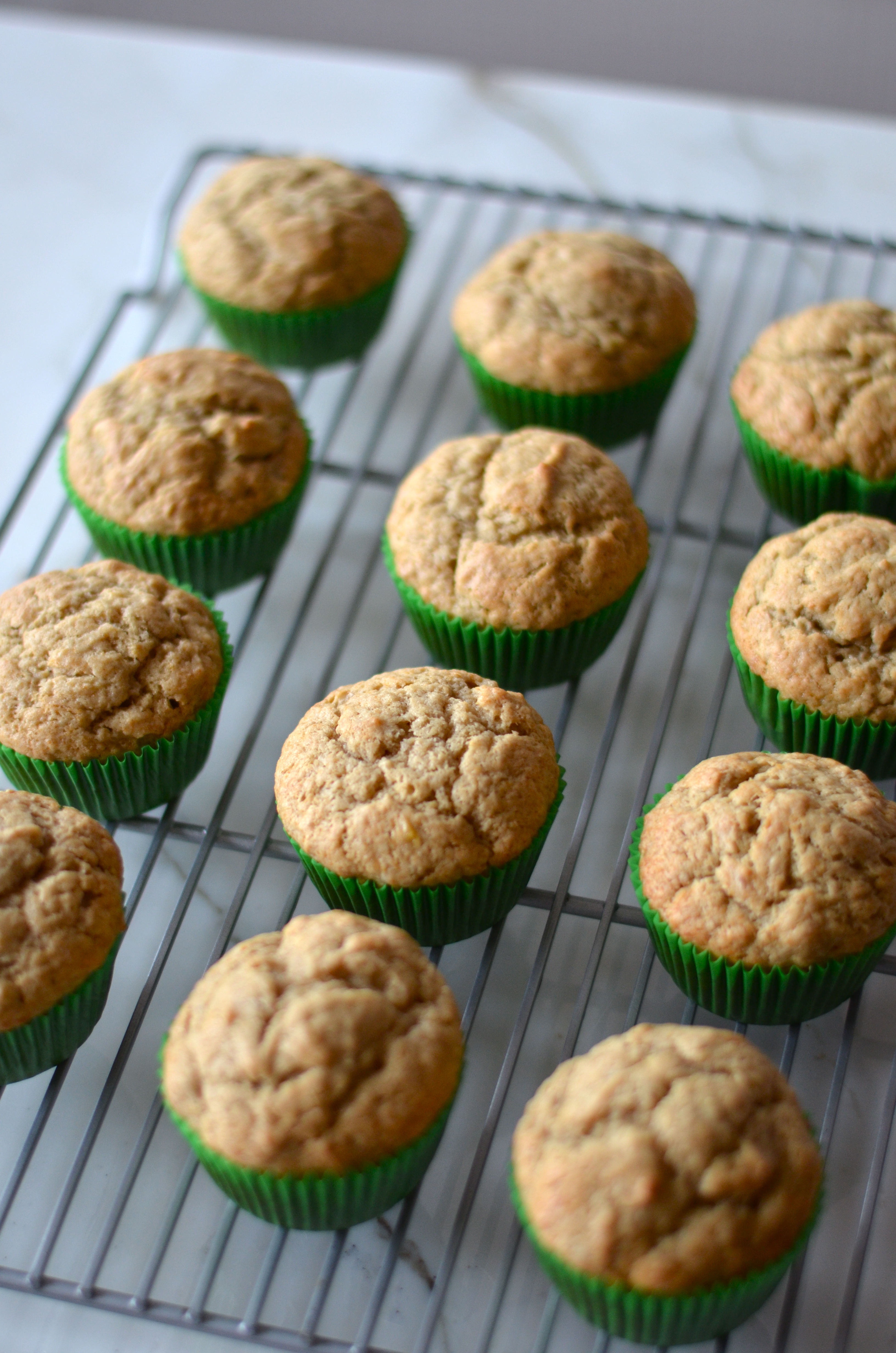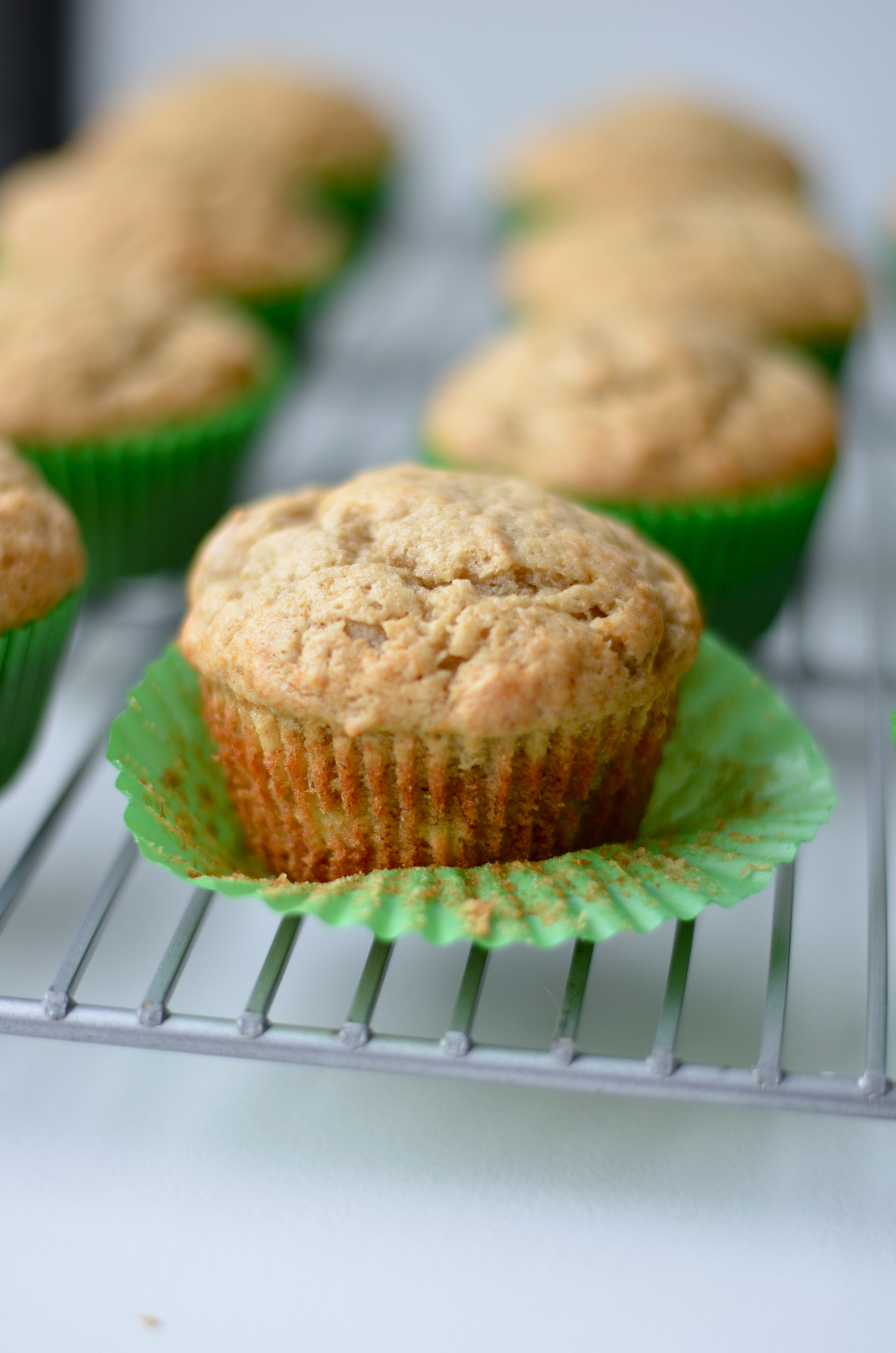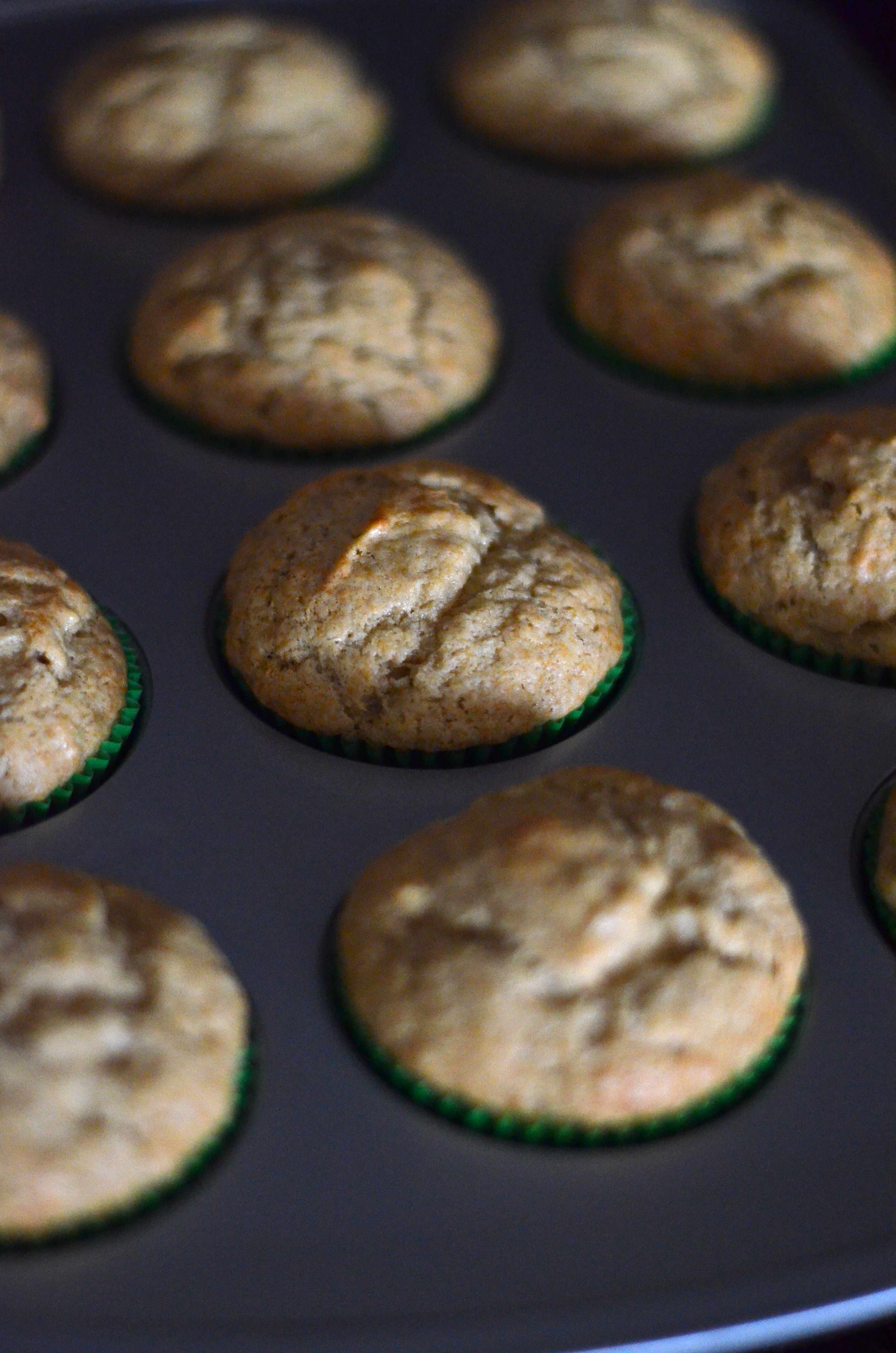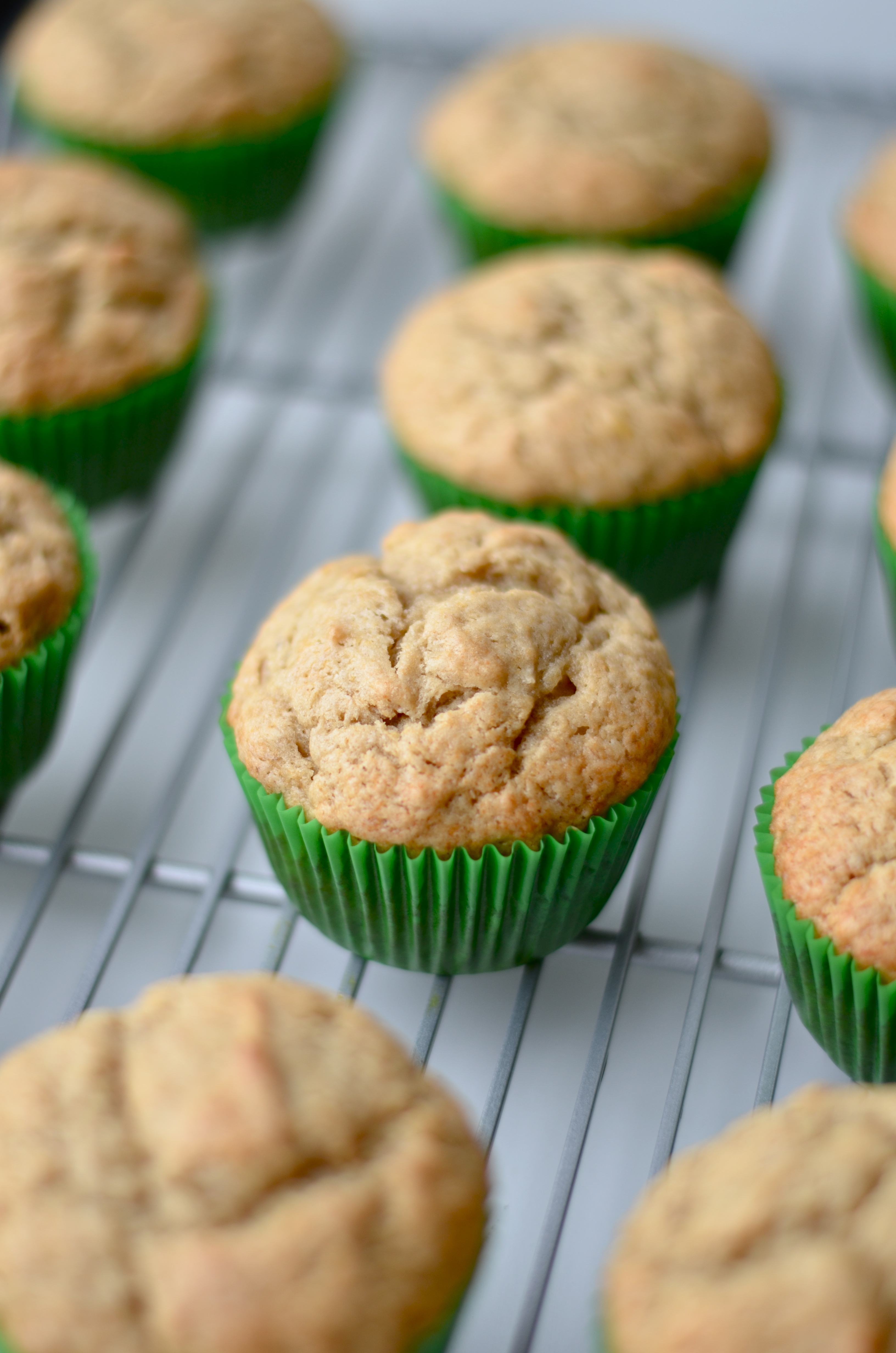 Whisk together until there are no large chunks and then spoon batter into muffin tins. Fill them each about 3/4 full. Bake for 15-25 minutes, or until a toothpick inserted into the center comes out clean.