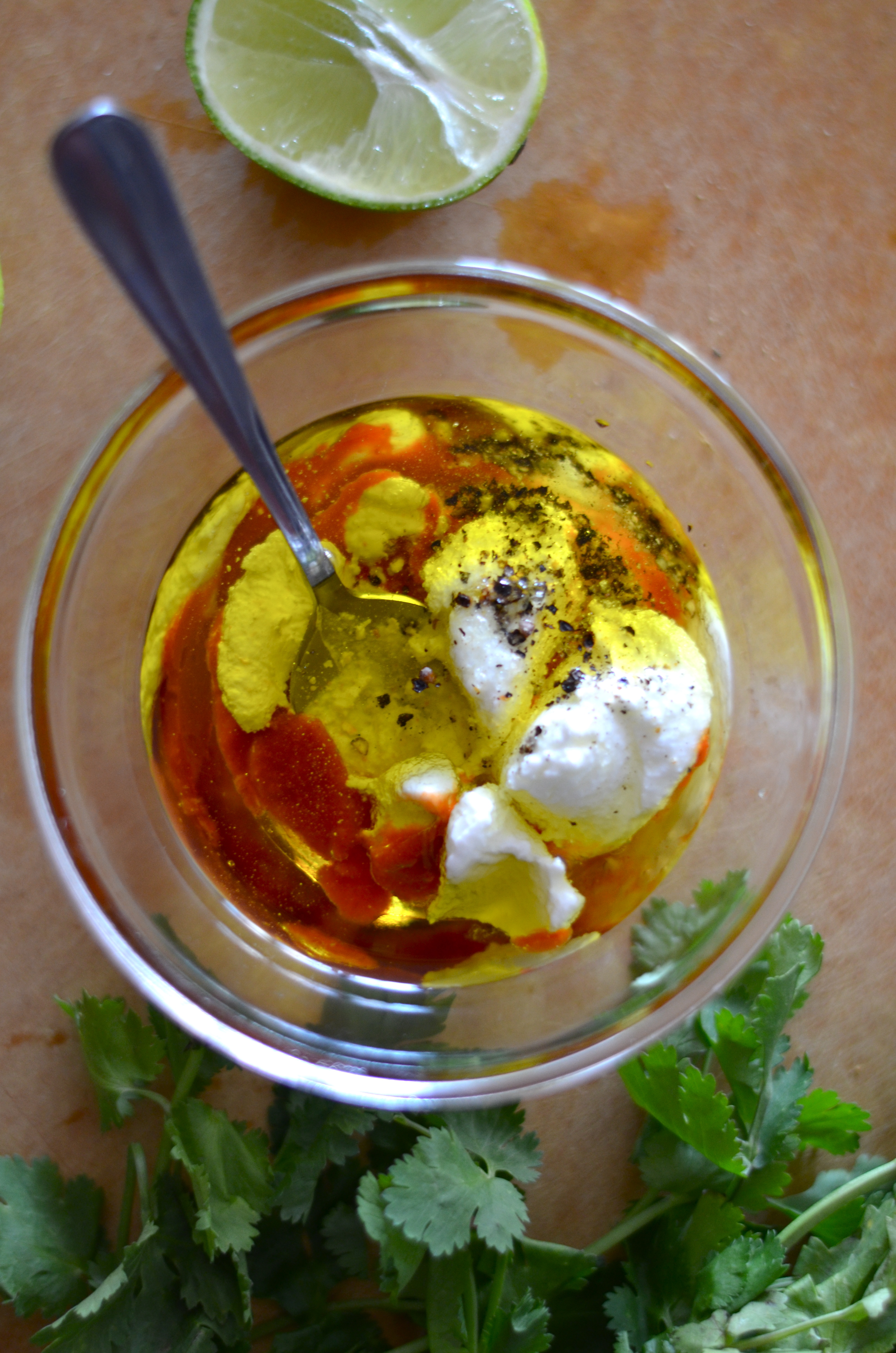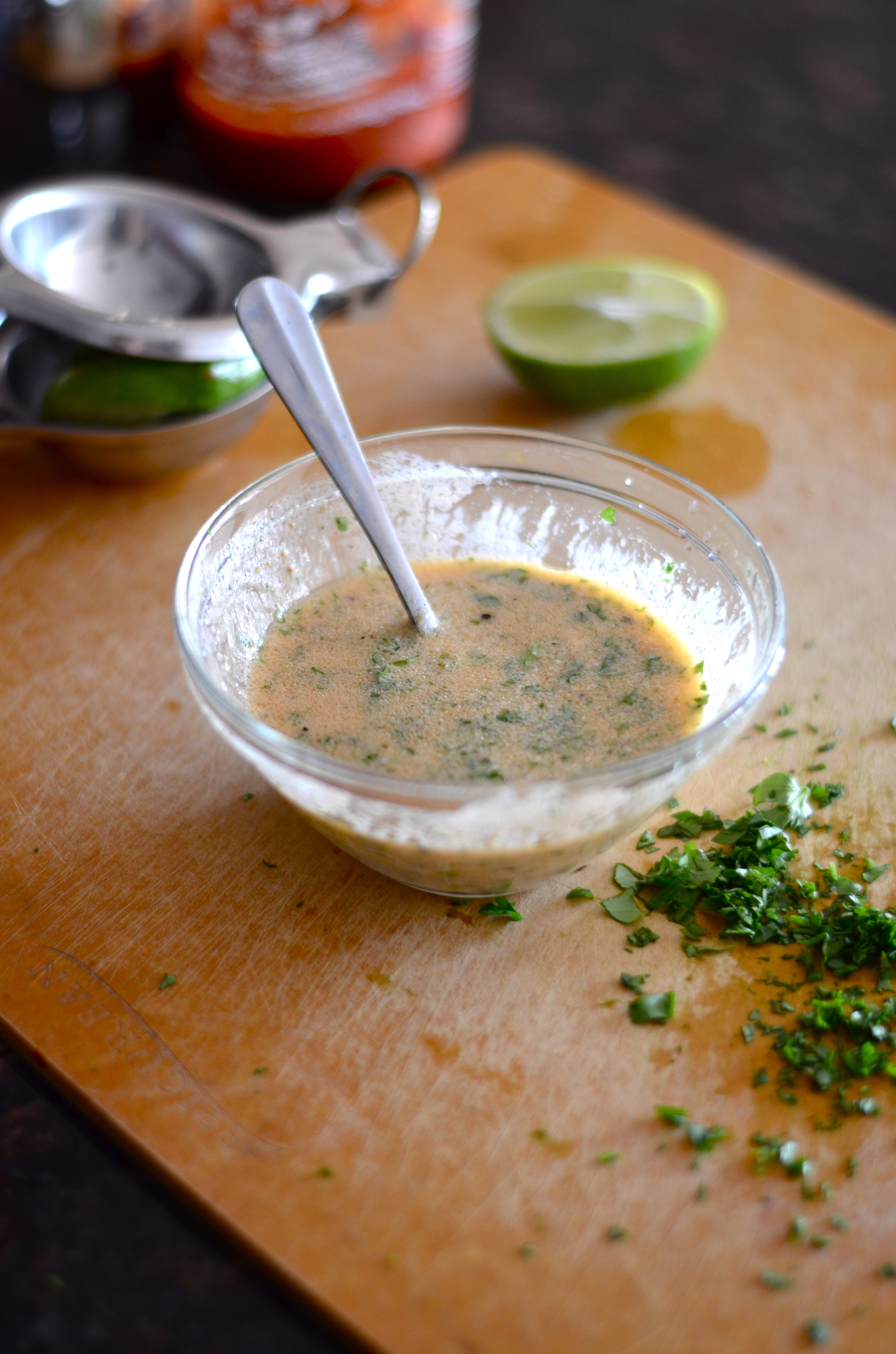 Combine all the ingredients for the dressing and whisk well until incorporated, set aside.
