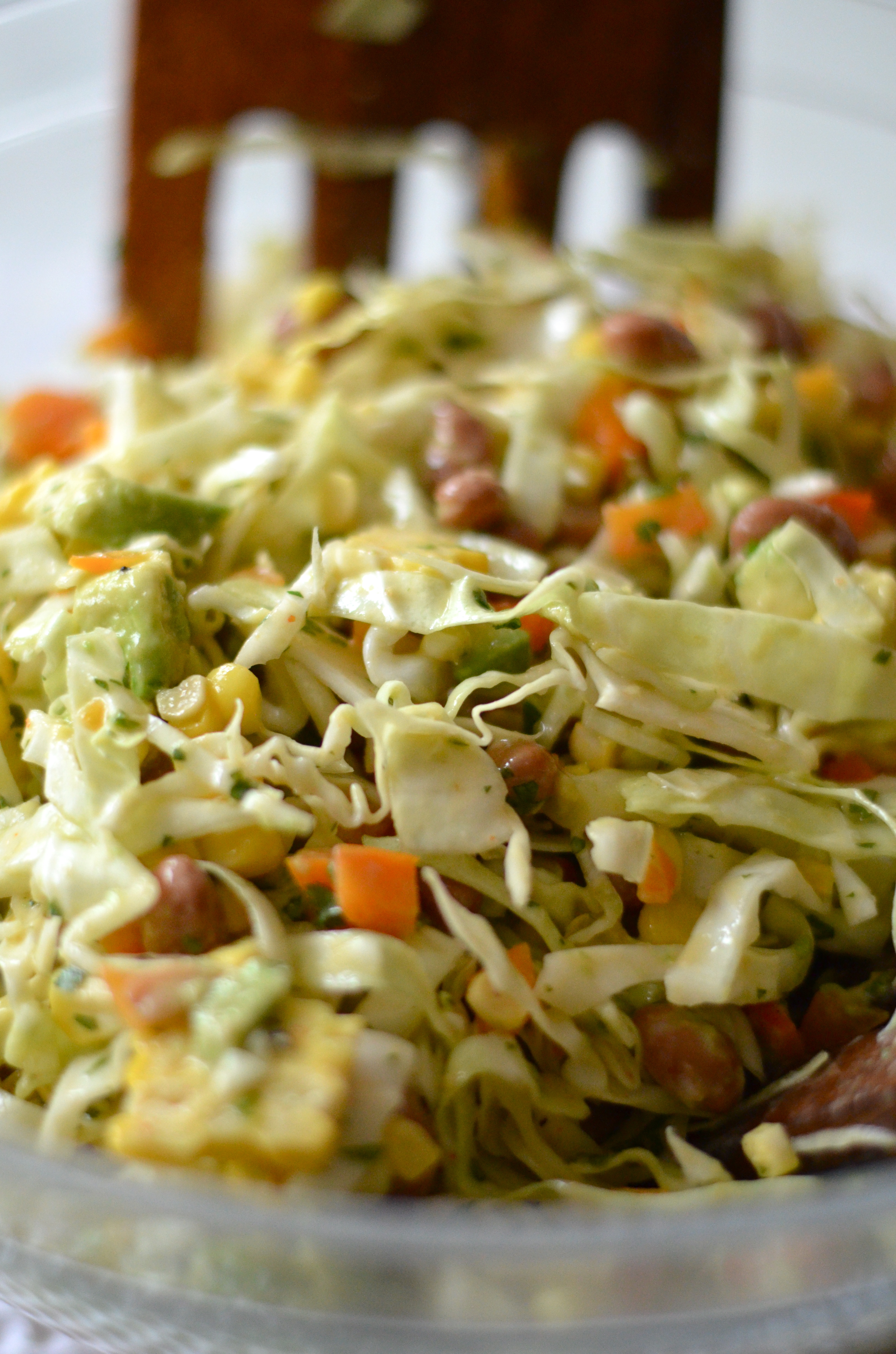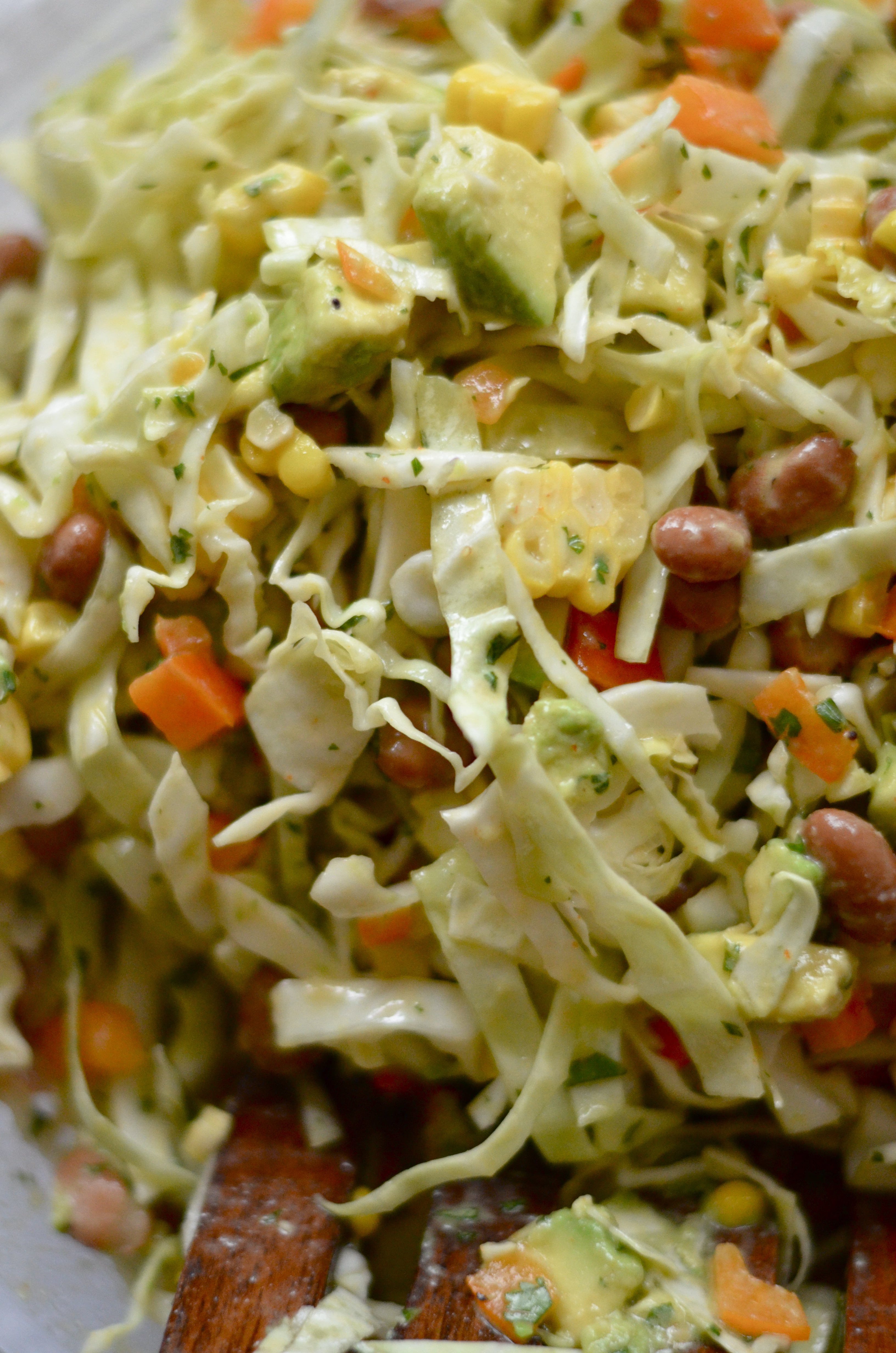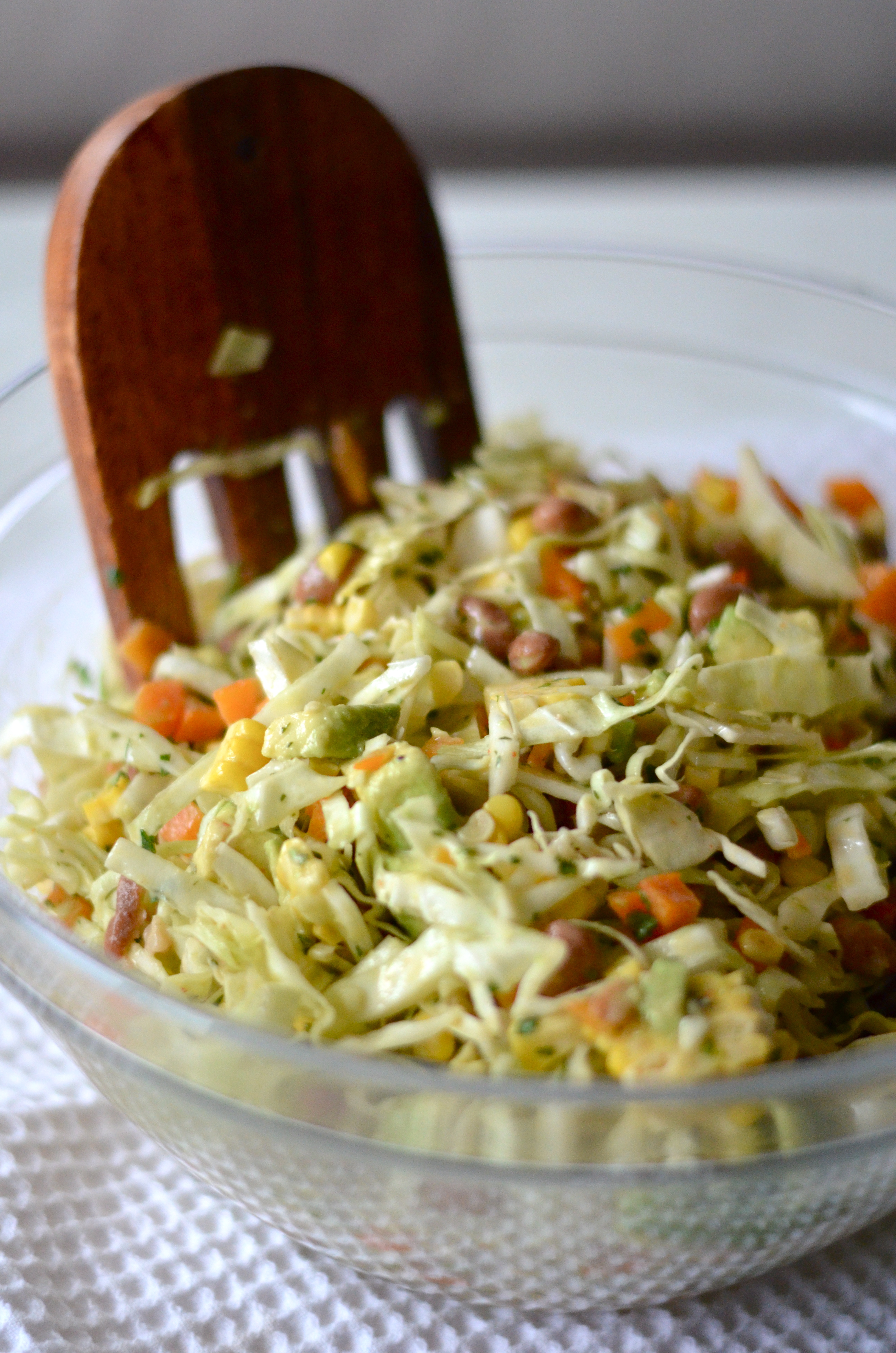 We eat sooooo much salad in the summer time that it is nice to switch it up sometimes with a refreshing slaw. This is a delicious slaw that strays from your typical cabbage salads. The addition of sweet summer corn and smooth avocado is absolutely delicious! Top it off with some grilled chicken or fish and I promise you will have a satisfying summer meal.