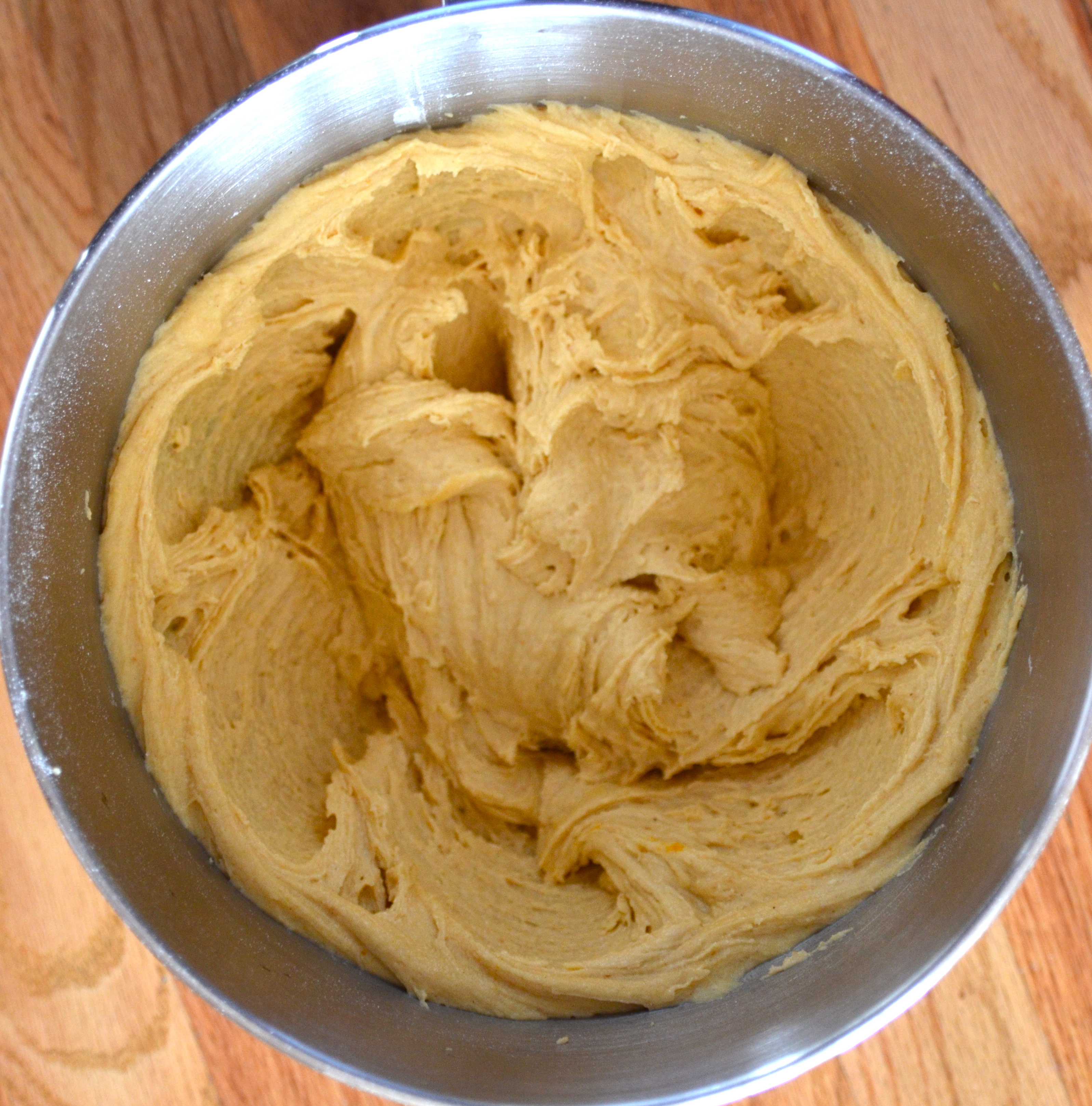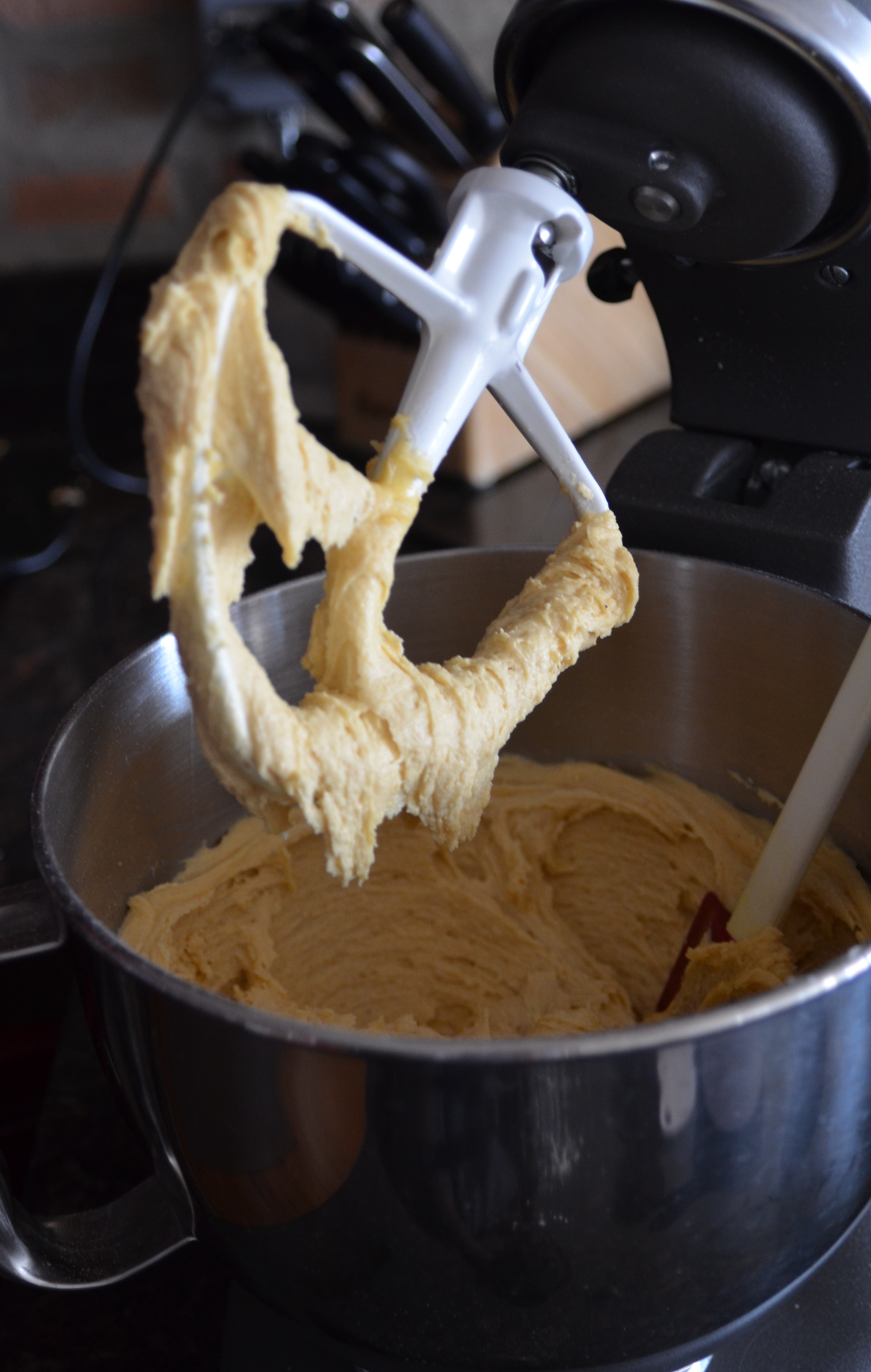 In a medium bowl combine flour, baking soda, salt, cream of tartar and pie spice. Slowly add to mixer with egg mixture and mix until combined.
