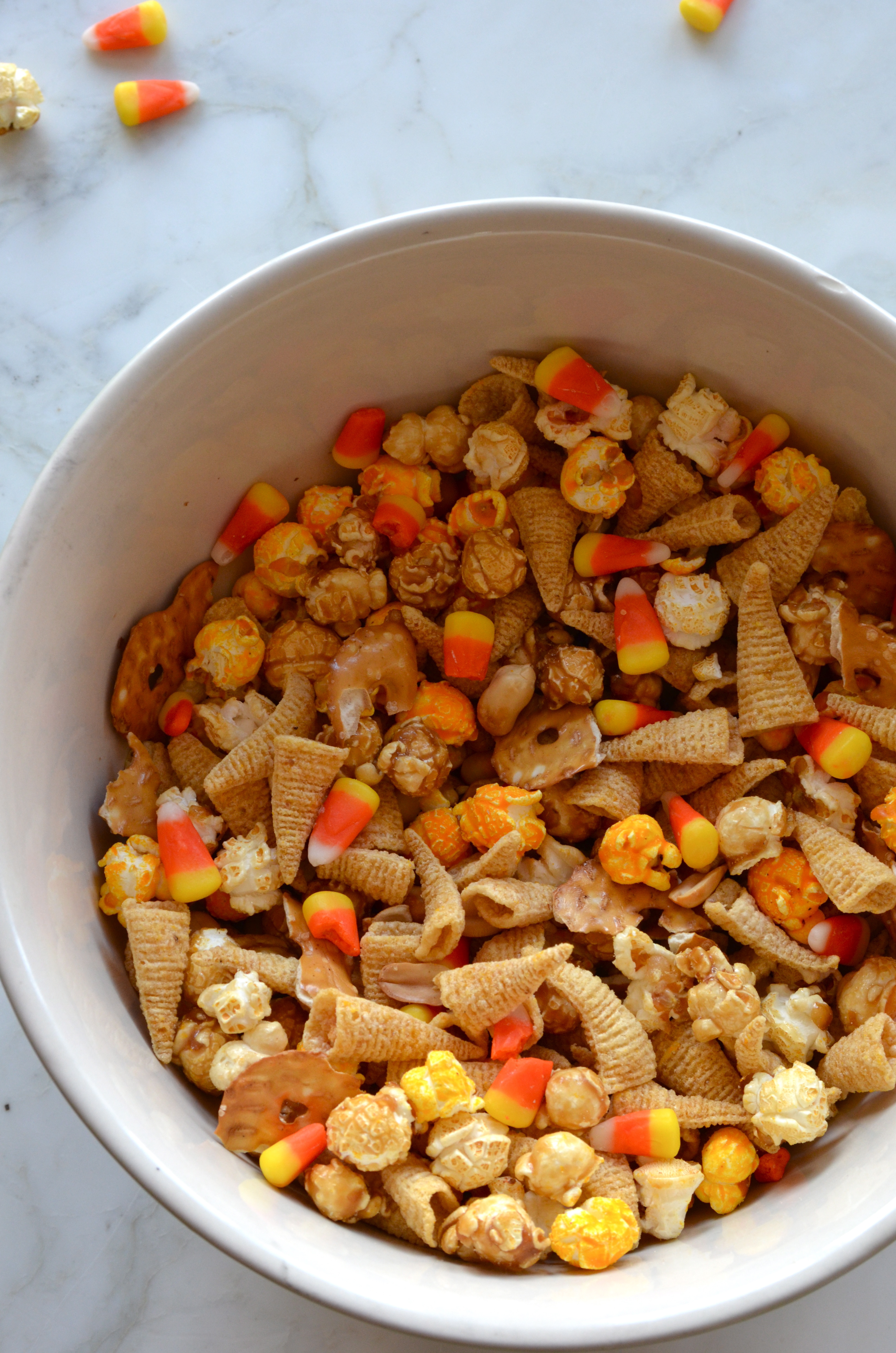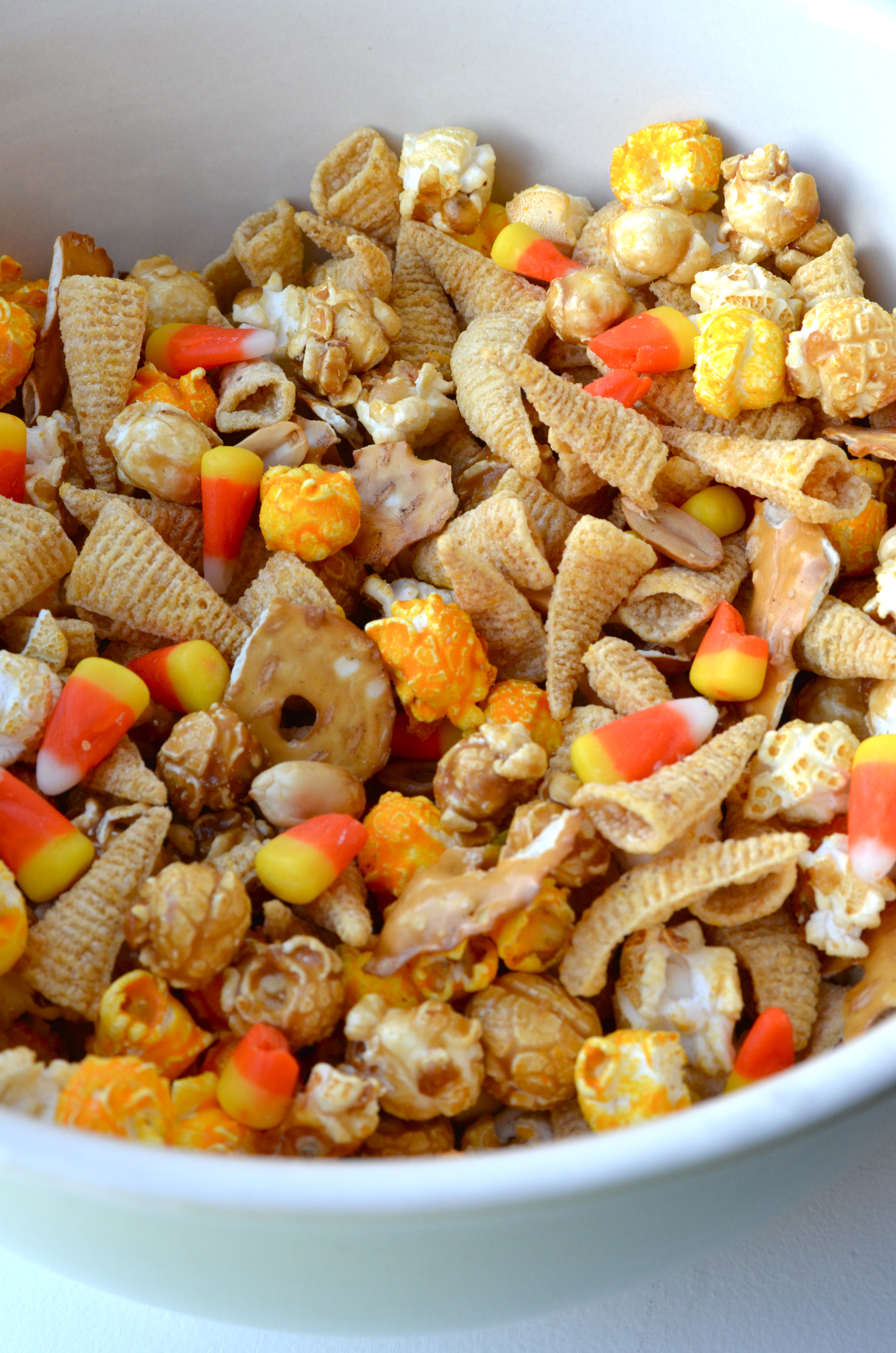 The last couple nuggets I want to share about this yummy mix is that you can ALWAYS switch ingredients to make it your own. For example: Candy corn with just salted peanuts is a dream come true. Think a fluffer-nutter sandwich. You could do regular popcorn instead of (my favorite) Chicago mix popcorn. If you’re not familiar, let me change your life. It’s cheese popcorn mixed with caramel popcorn. If you ever get a chance to try Garrett’s Chicago Mix popcorn, you MUST MUST DO IT. Your life will be forever changed forever.