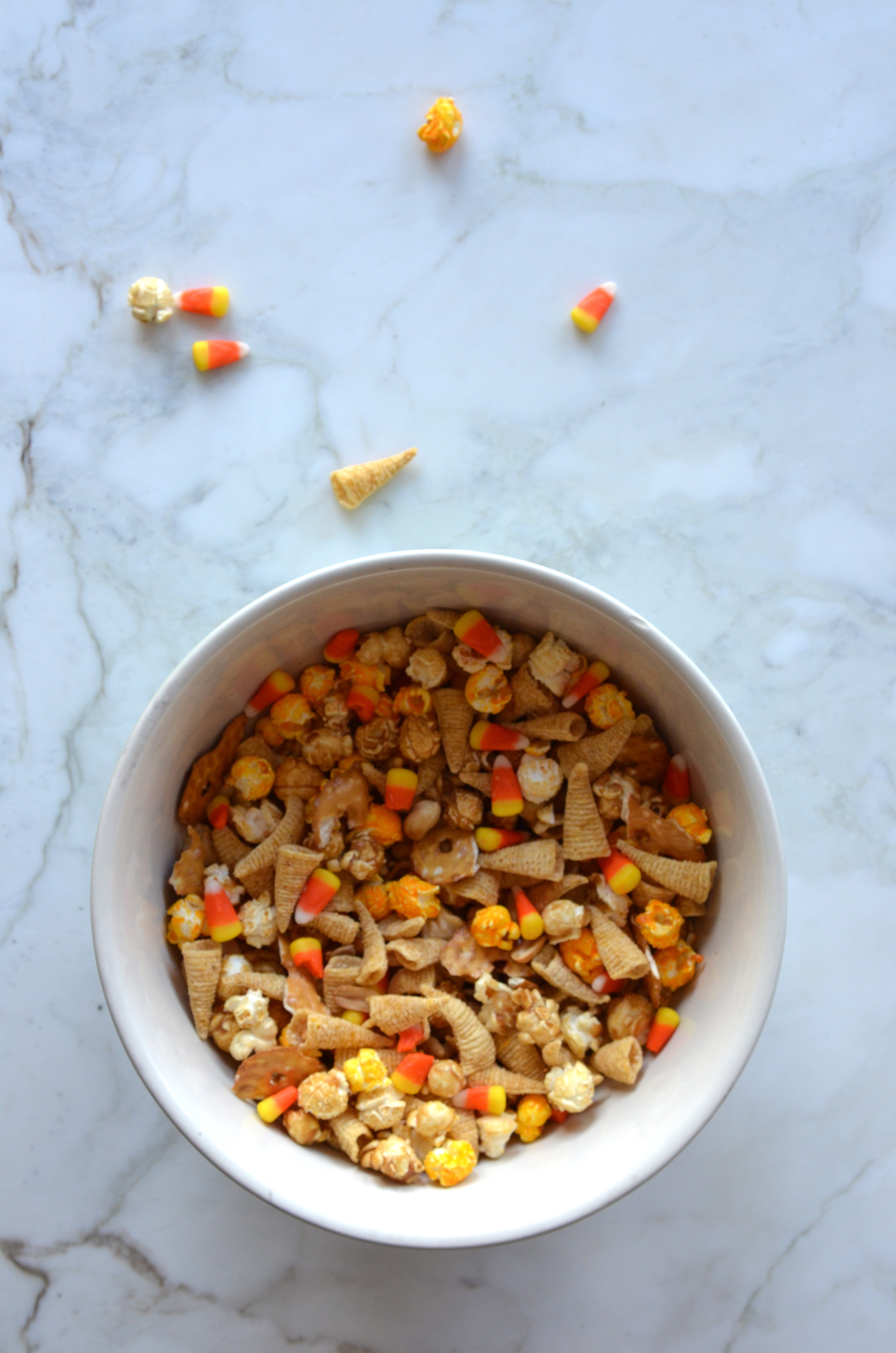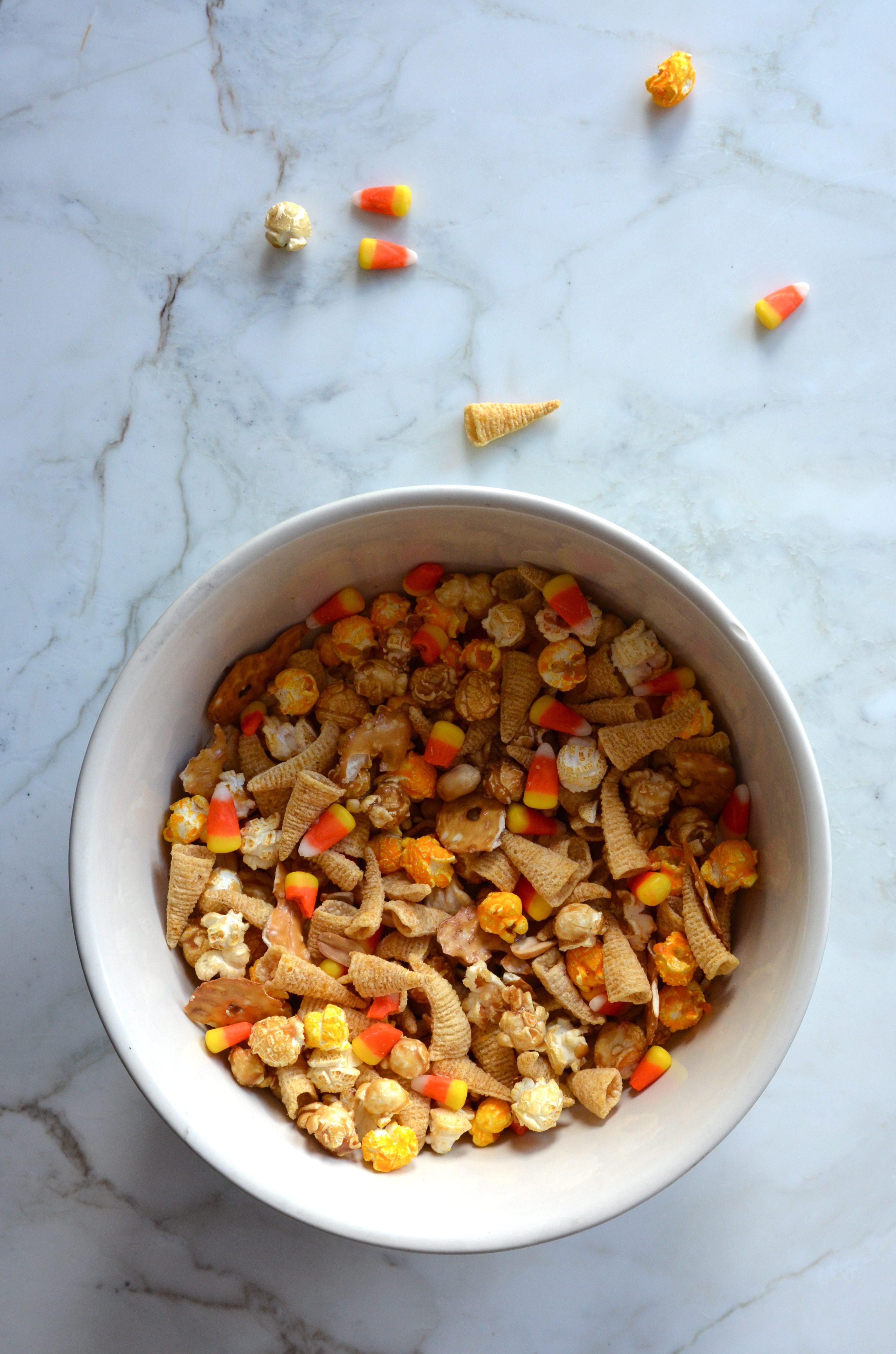 It all started when I pulled out this bowl of Witches Brew and they commented on how candy corn is only good when combined with something salty, otherwise it’s gross. I fought them on it for a while (I’m stubborn) and tried to convince them that they taste like marshmallows because really they are only made of sugar and food coloring (another fact they didn’t believe).
